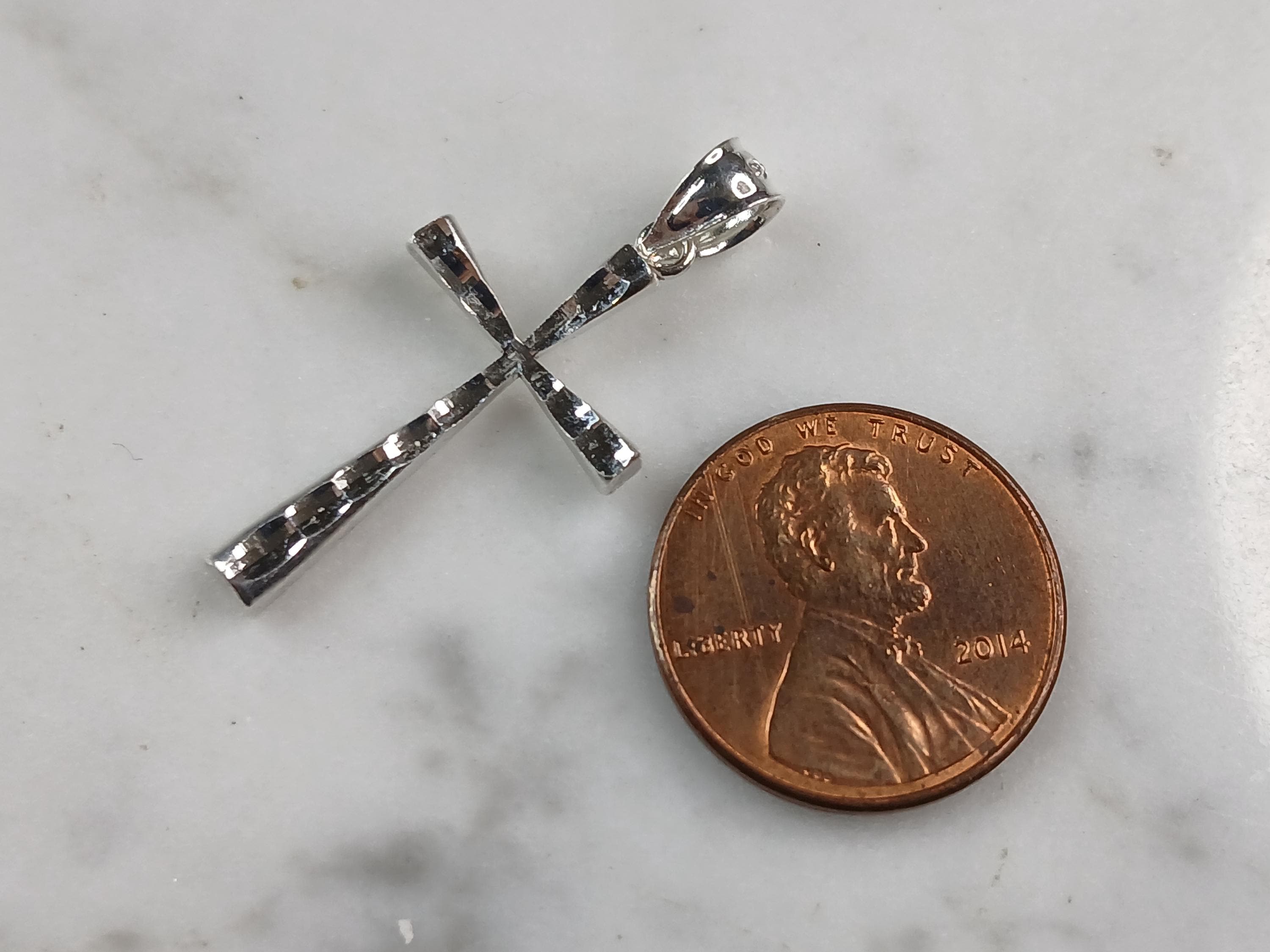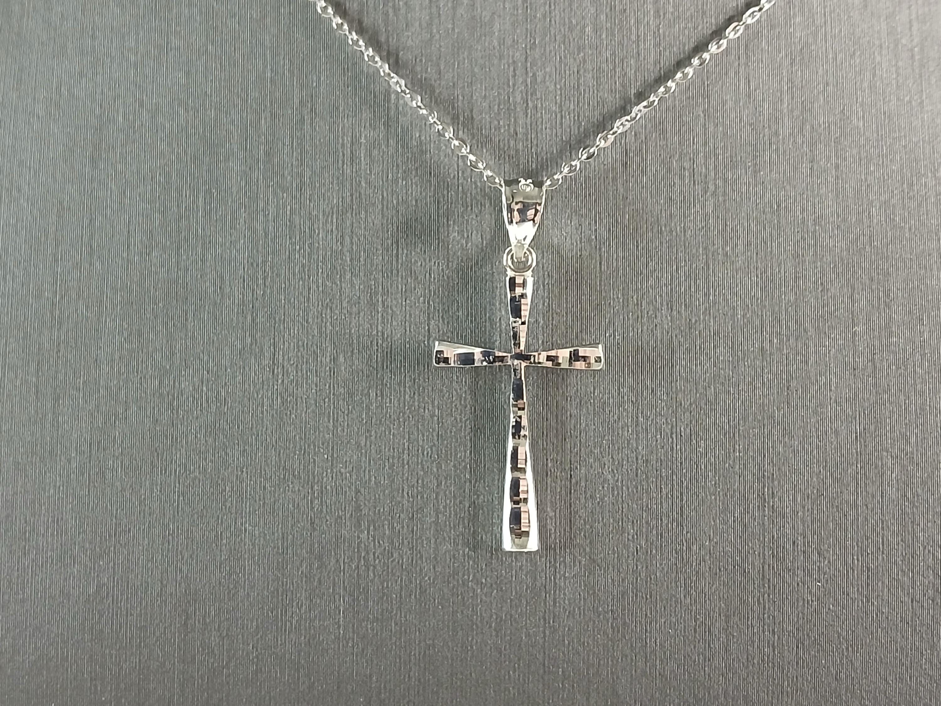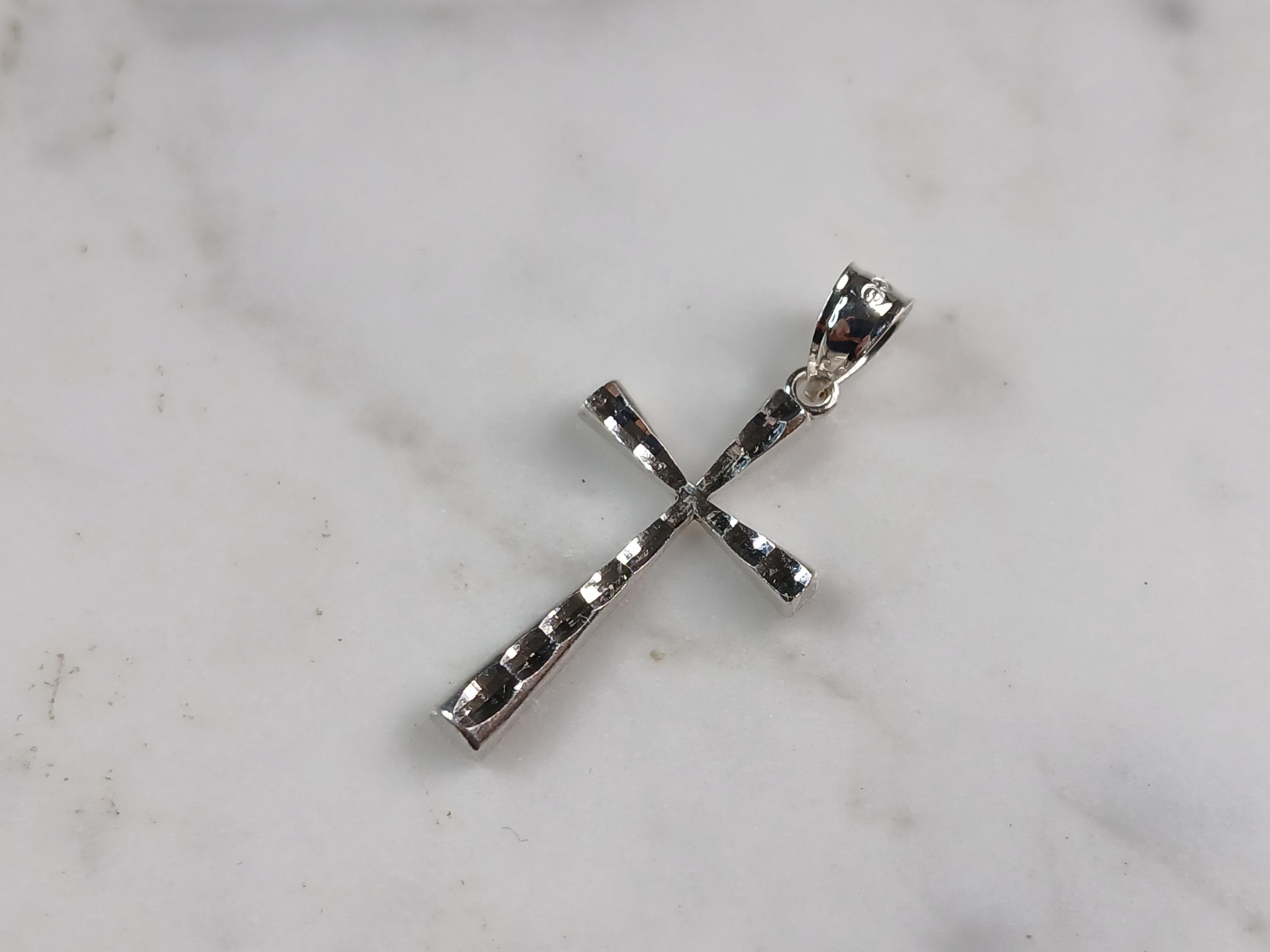A VERY NICE STERLING SILVER RELIGIOUS MODERNIST CROSS PENDANT WITH NECKLACE THAT WEIGHS 2.6g. THE PENDANT MEASURES 1 1/4" LONG BY 1/2" WIDE. THE NECKLACE MEASURES 18" LONG. ANY QUESTIONS PLEASE DONT HESITATE TO ASK. BE SURE TO CHECK OUT SOME OF MY OTHER GREAT ITEMS UP FOR SALE. THANK YOU