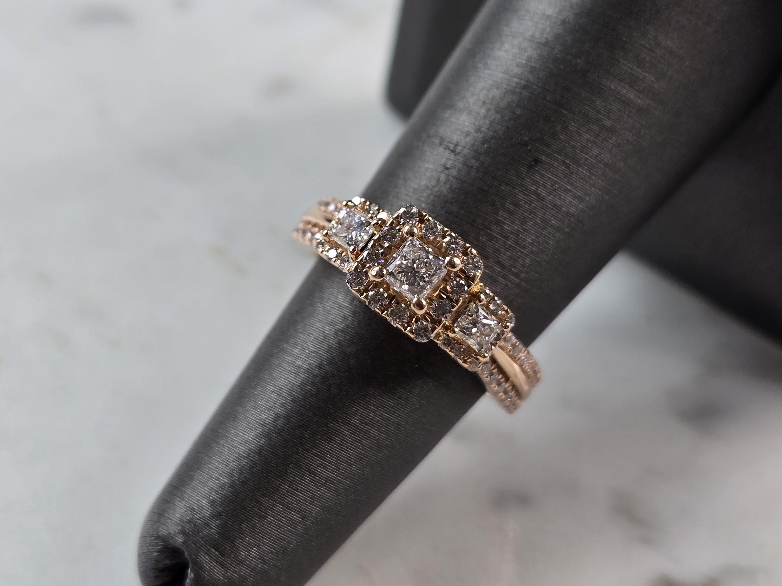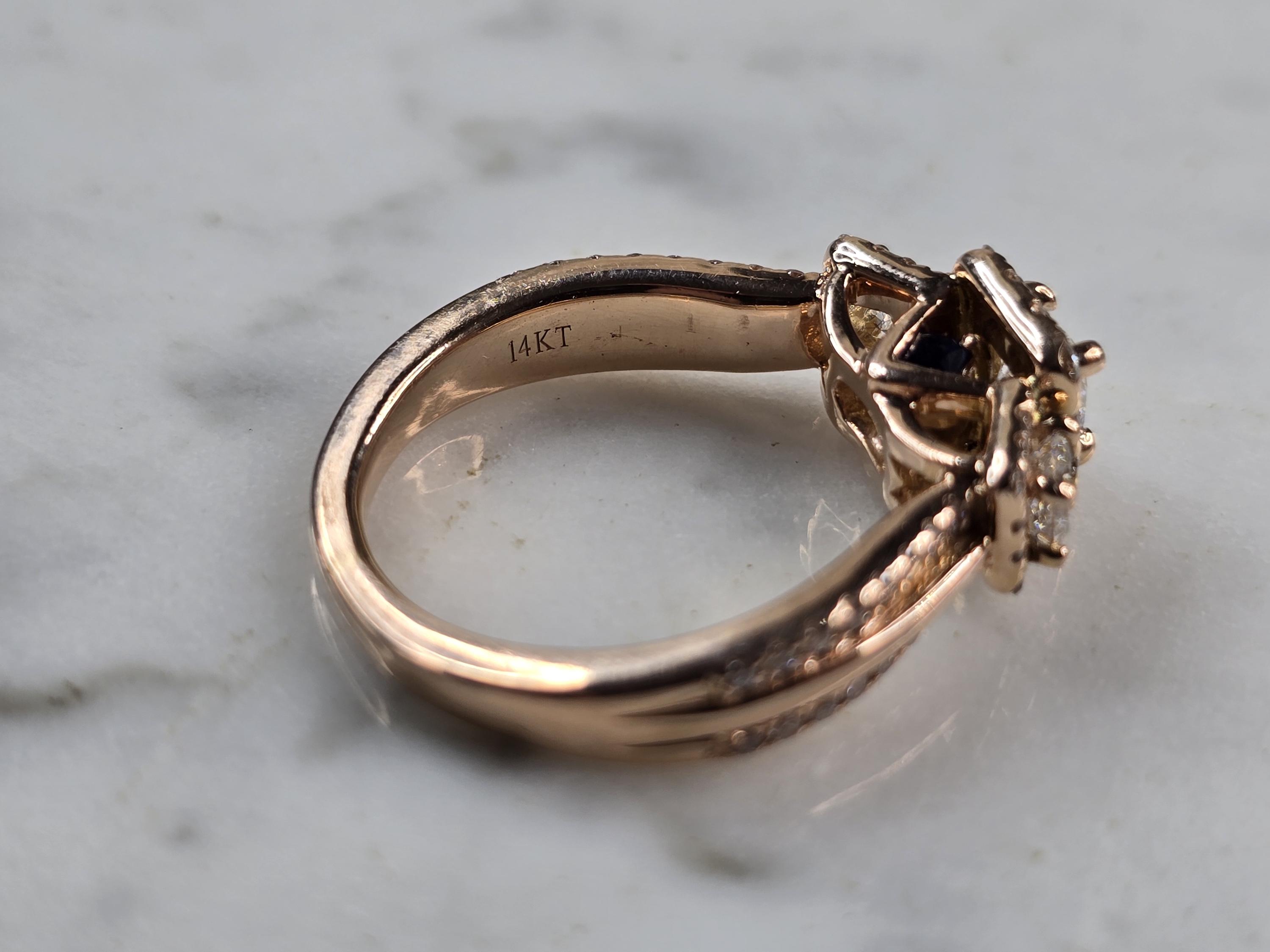A WOMENS VINTAGE ESTATE 14K ROSE GOLD DIAMOND RING DESIGNED BY VERA WANG. THE RING IS A SIZE 6.0 AND WEIGHS 5.6g. THERE ARE ABOUT 1.12cts OF DIAMONDS IN THIS RING. THE CENTER DIAMOND IS ABOUT 0.30cts. THE WIDTH OF THE RING IS ABOUT 1/4". RING MAKES A BEAUTIFUL GIFT FOR THAT SOMEONE SPECIAL. ANY QUESTIONS, PLEASE ASK. BE SURE TO CHECK OUT SOME OF MY OTHER GREAT ITEMS UP FOR SALE. THANK YOU.