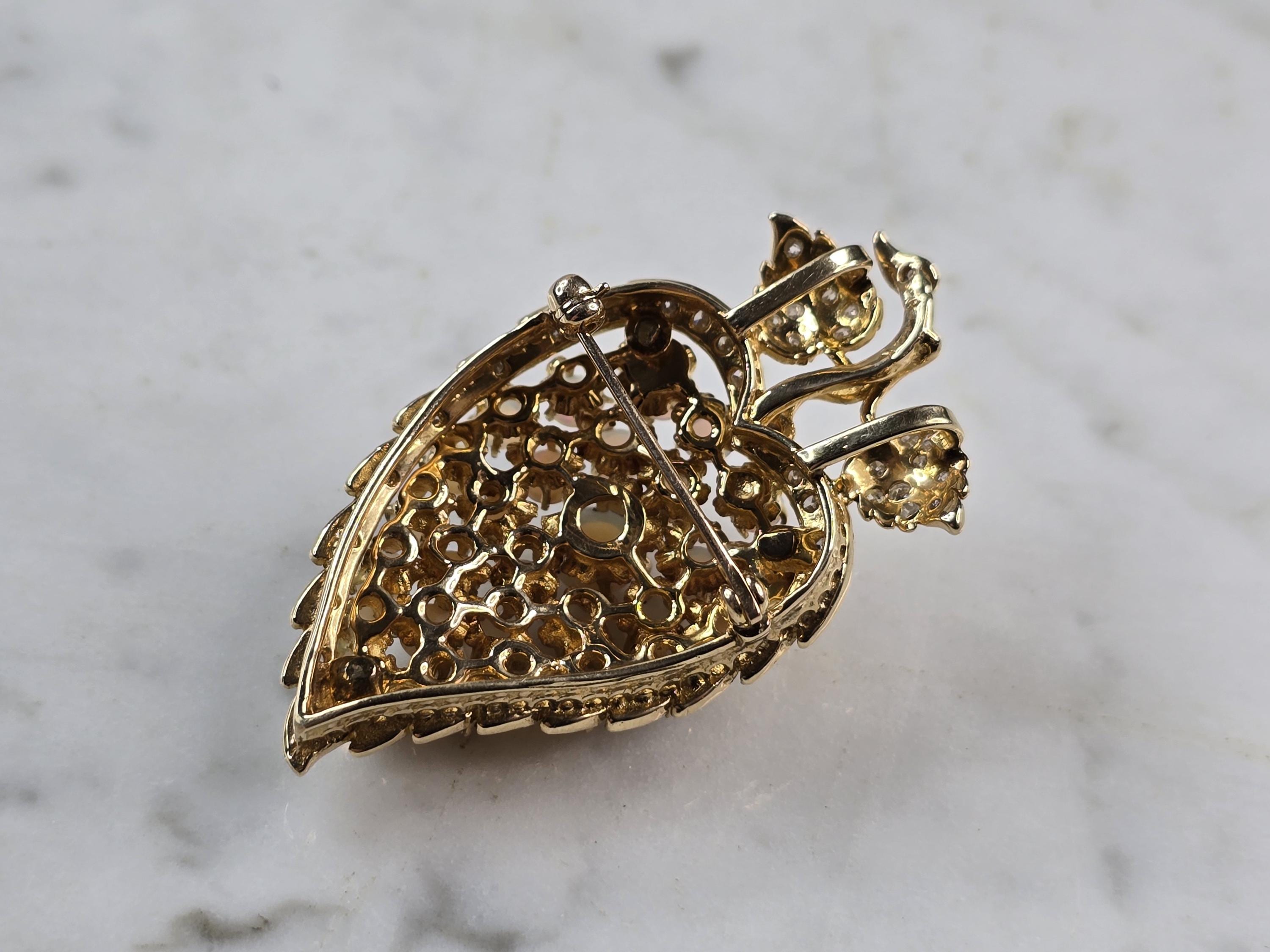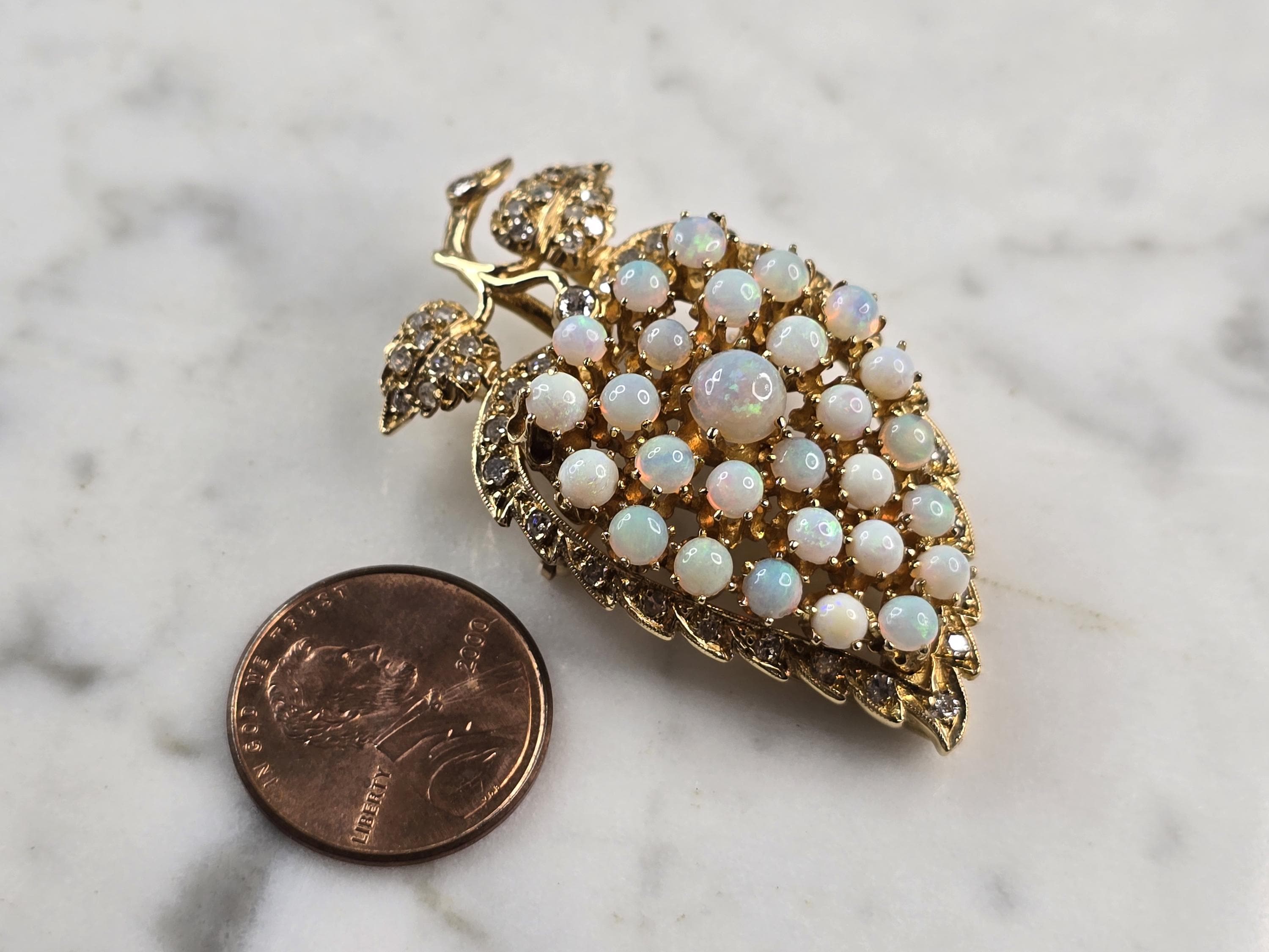 A WOMENS VINTAGE ESTATE 14K YELLOW GOLD DIAMOND & OPAL BROOCH PENDANT. THE BROOCH/PENDANT WEIGHS 14.9g, AND MEASURES ABOUT 2 7/8" BY 1". THERE ARE 44 SMALL DIAMONDS IN THIS PIECE. BROOCH IS STAMPED 14K. NOT SURE IF THE OPALS ARE NATURAL OR MAN MADE. MAKES A GREAT GIFT FOR THAT SPECIAL SOMEONE. ANY QUESTIONS PLEASE DONT HESITATE TO ASK. BE SURE TO CHECK OUT SOME OF OUR OTHER GREAT ITEMS UP FOR SALE. THANK YOU.