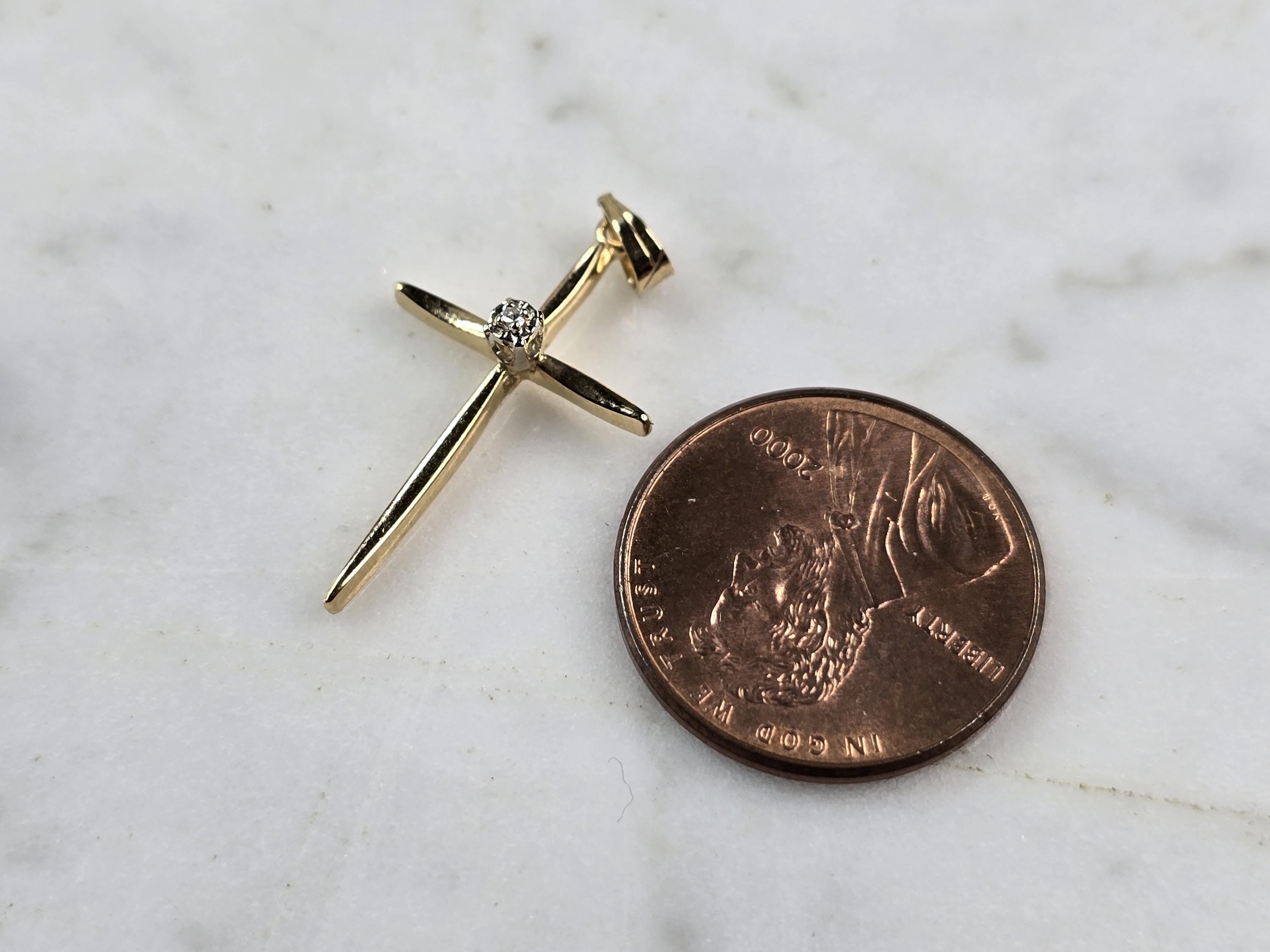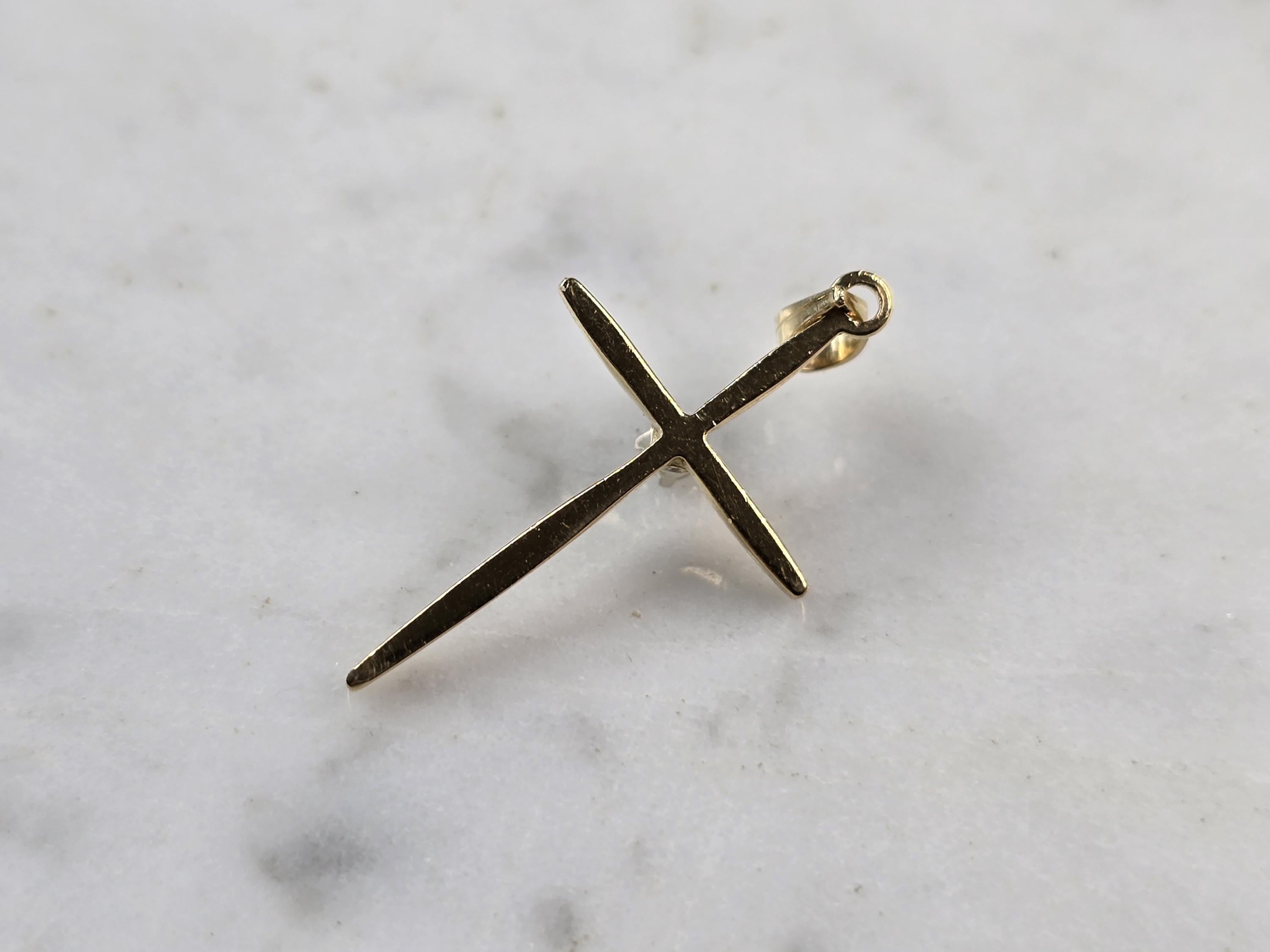 A WOMENS VINTAGE ESTATE 14K YELLOW GOLD RELIGIOUS DIAMOND CROSS PENDANT. THE PENDANT WEIGHS 0.9g AND MEASURES 1" LONG BY 5/8" WIDE. PENDANT IS MARKED. MAKES A GREAT GIFT FOR THAT SOMEONE SPECIAL. ANY QUESTIONS, PLEASE ASK. BE SURE TO CHECK OUT OUR OTHER ITEMS FOR SALE.