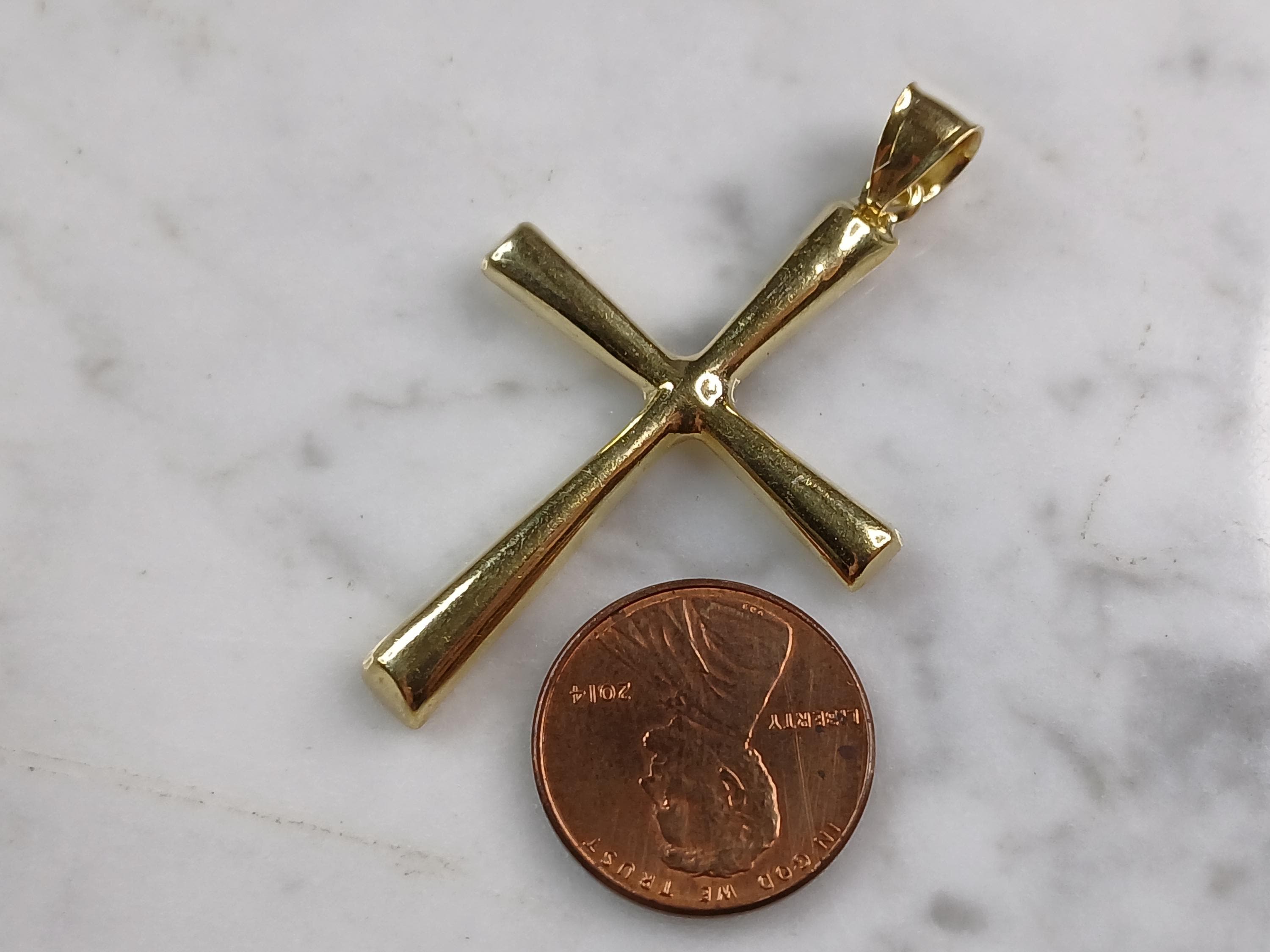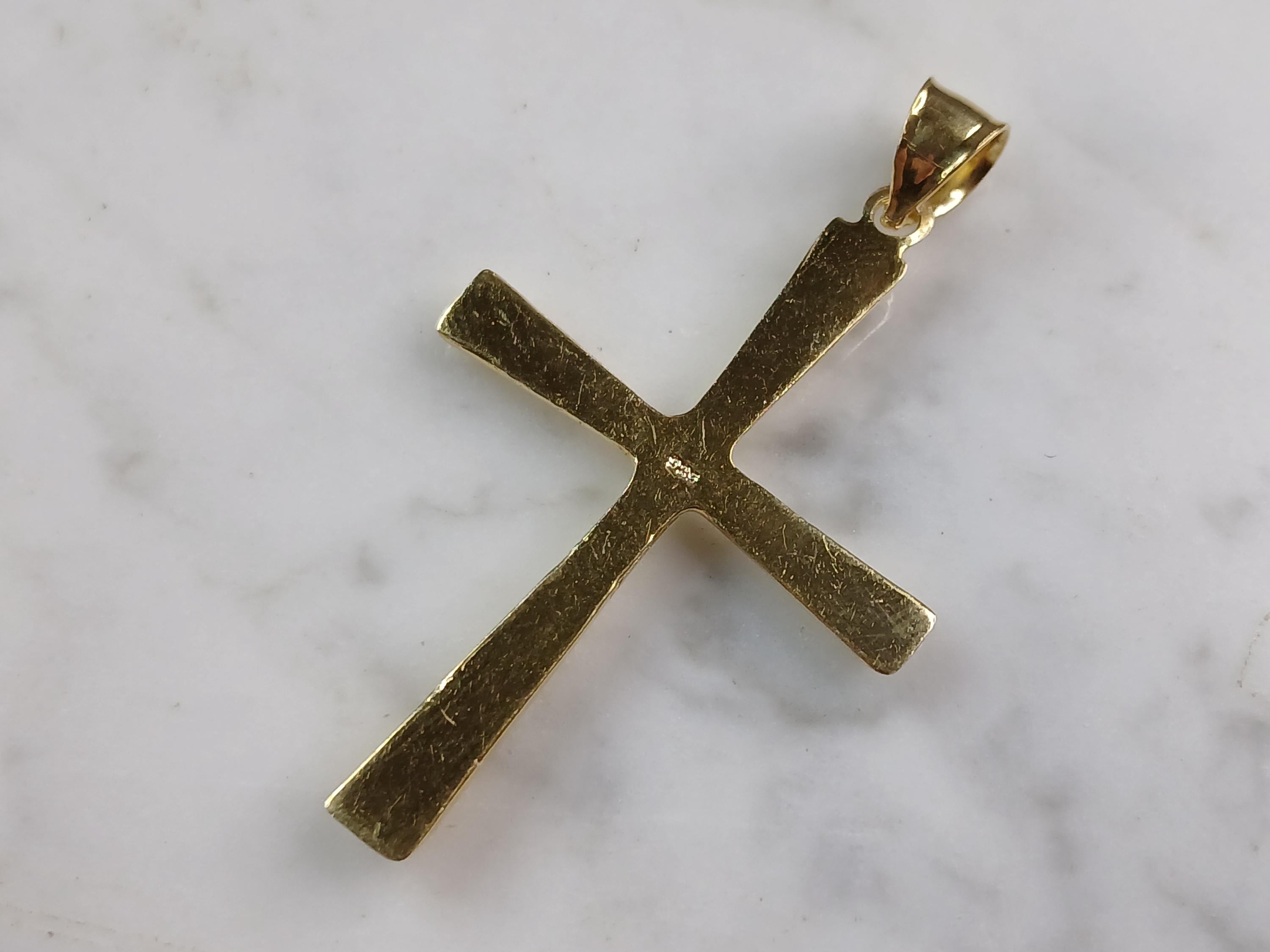 A VERY NICE STERLING SILVER GOLD TONE RELIGIOUS CROSS PENDANT NECKLACE THAT WEIGHS 6.9g. THE PENDANT MEASURES 2" LONG BY 1 1/4" WIDE. THE NECKLACE MEASURES 18" LONG AND IS ADJUSTABLE TO 16" LONG. ANY QUESTIONS PLEASE DONT HESITATE TO ASK. BE SURE TO CHECK OUT SOME OF MY OTHER GREAT ITEMS UP FOR SALE. THANK YOU