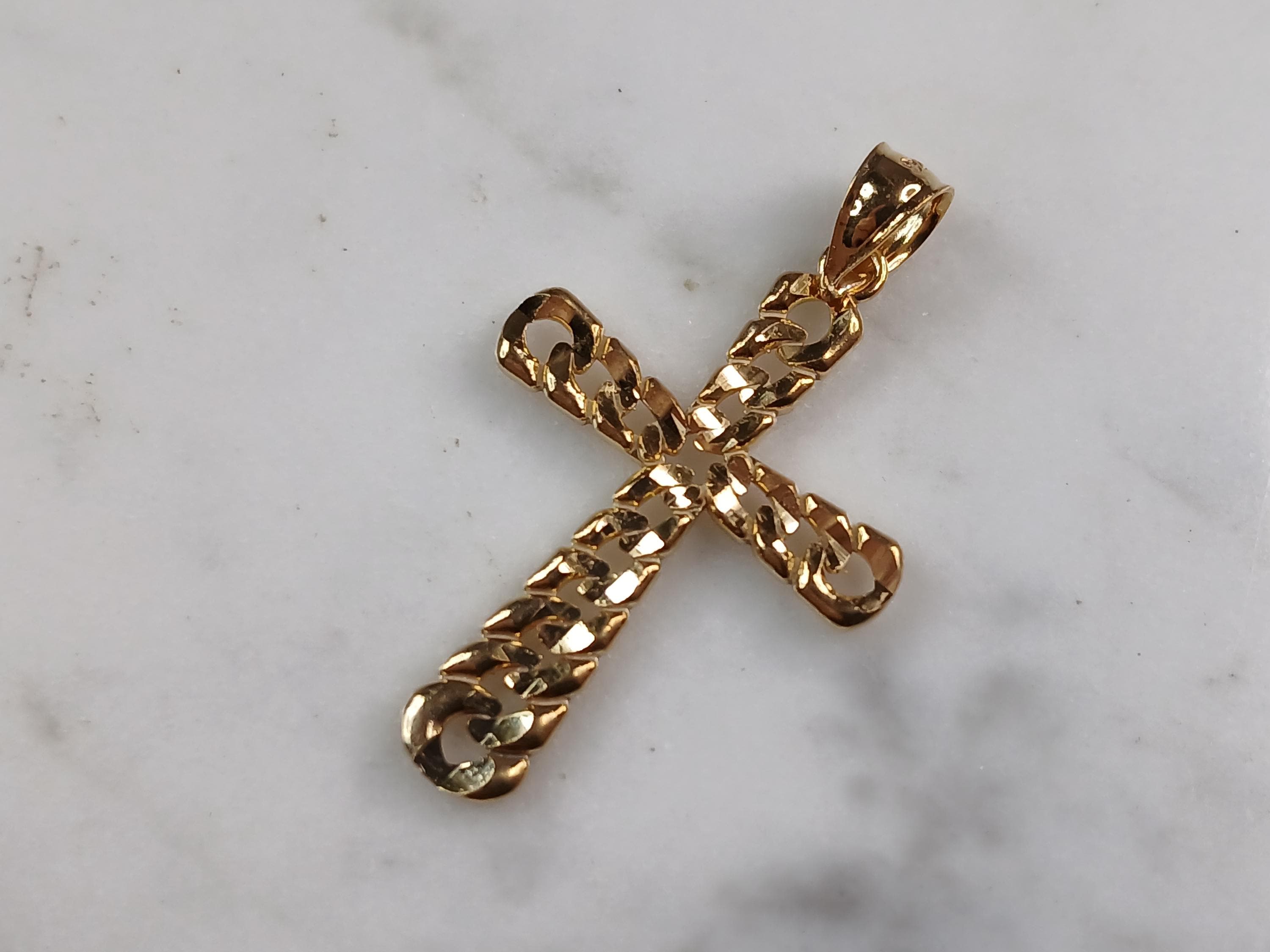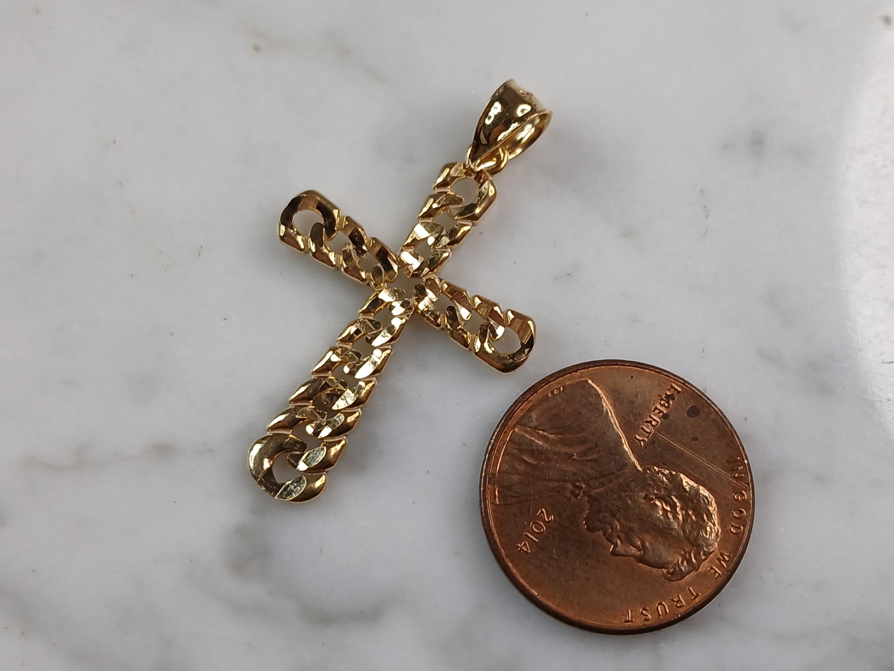 A VERY NICE STERLING SILVER GOLD TONE RELIGIOUS CROSS PENDANT WITH NECKLACE THAT WEIGHS 2.8g. THE PENDANT MEASURES 1 1/4" LONG BY 7/8" WIDE. THE NECKLACE MEASURES 18" LONG. ANY QUESTIONS PLEASE DONT HESITATE TO ASK. BE SURE TO CHECK OUT SOME OF MY OTHER GREAT ITEMS UP FOR SALE. THANK YOU