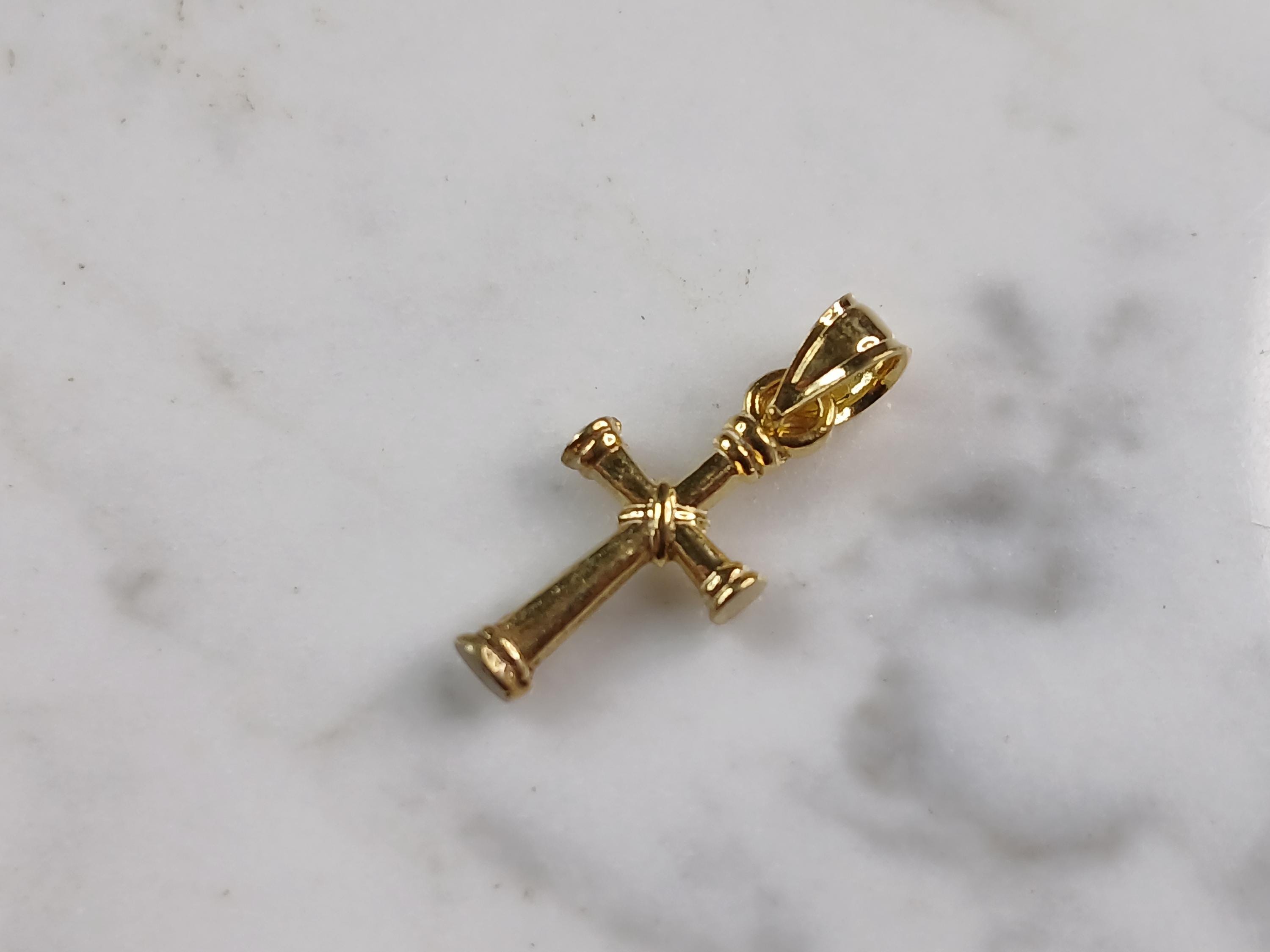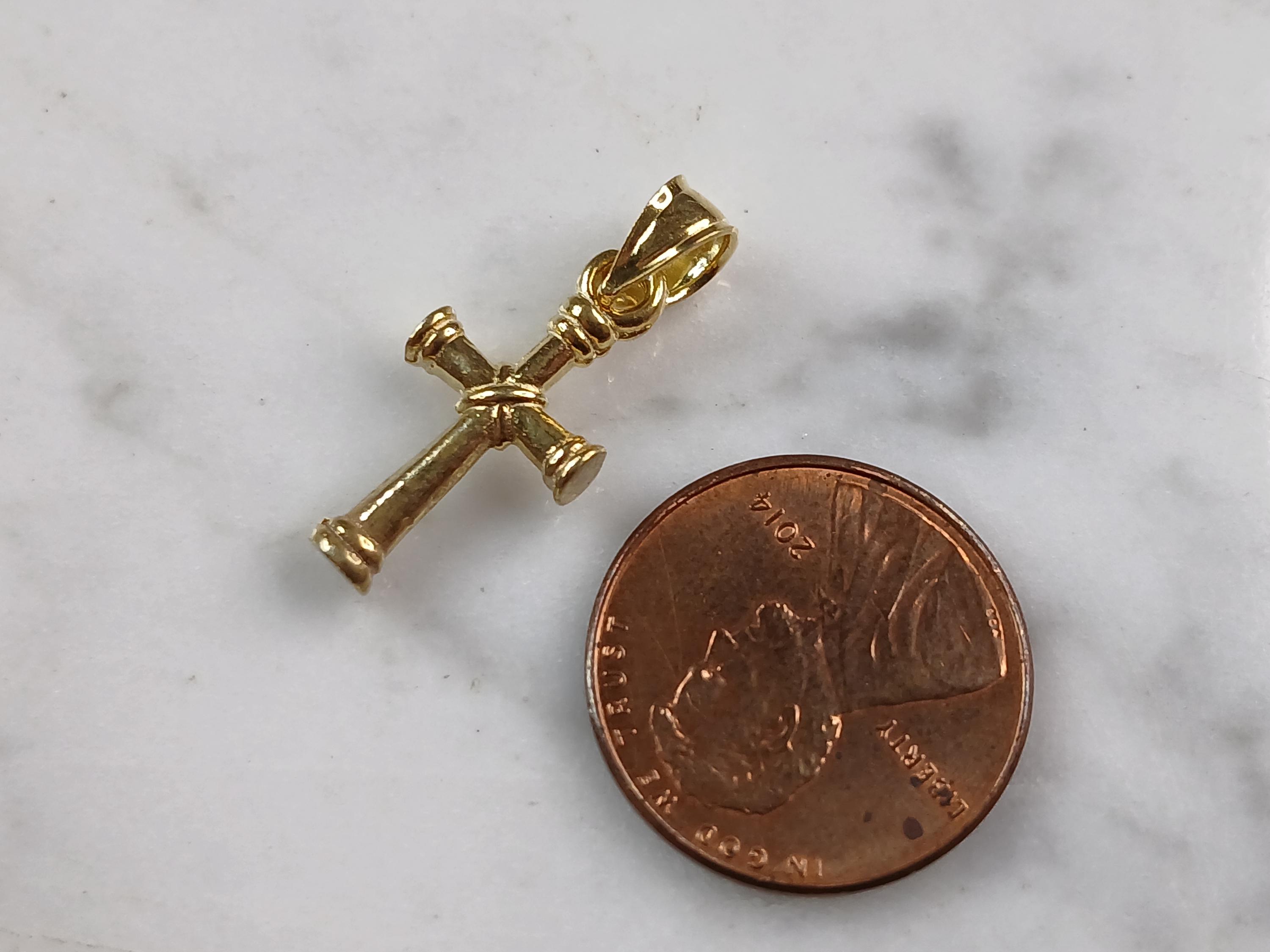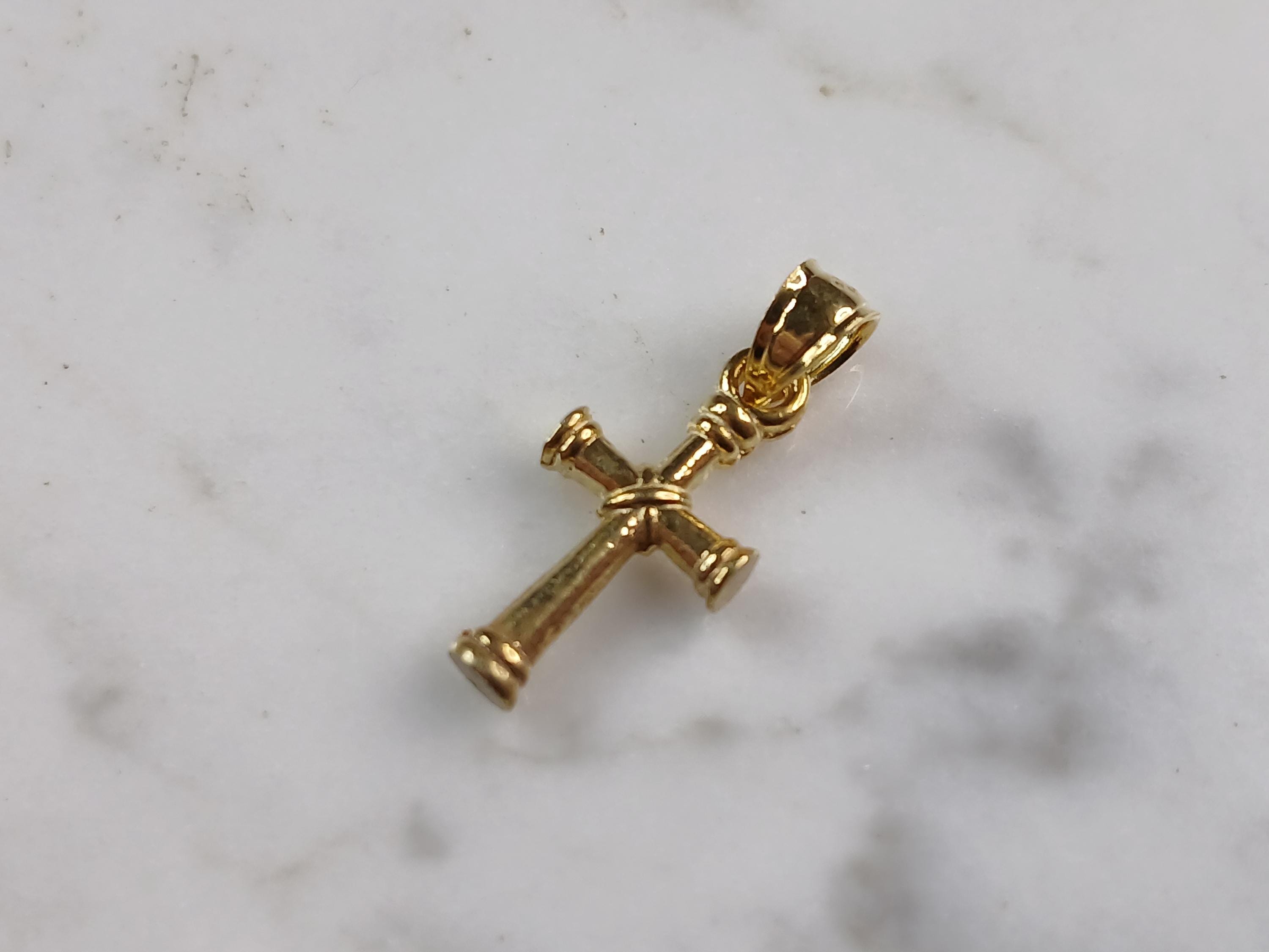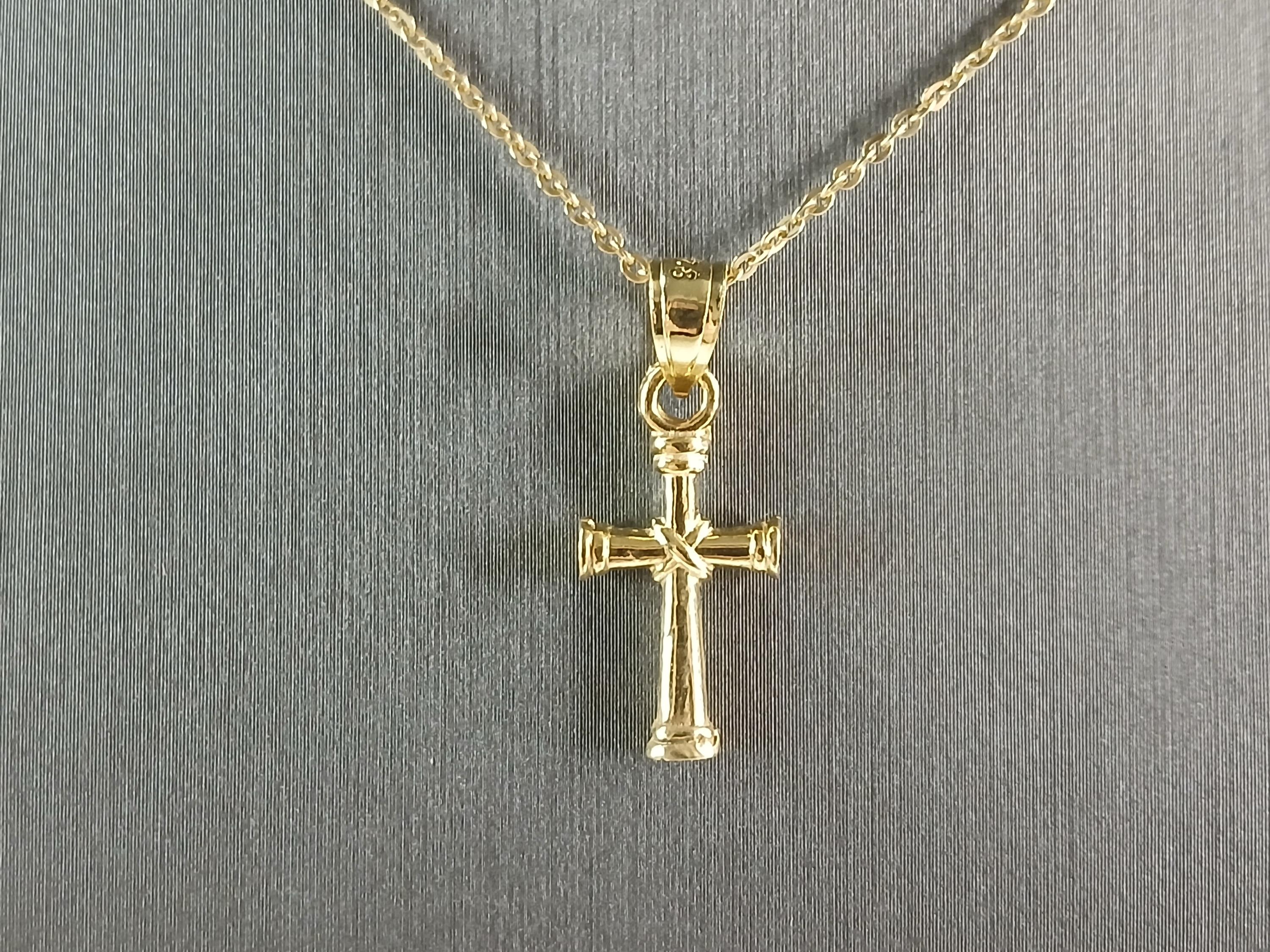 A VERY NICE STERLING SILVER GOLD TONE RELIGIOUS CROSS NECKLACE THAT WEIGHS 2.6g. THE NECKLACE MEASURES 18" LONG AND THE PENDANT MEASURES 7/8" LONG BY 3/8" WIDE. ANY QUESTIONS PLEASE DONT HESITATE TO ASK. BE SURE TO CHECK OUT SOME OF MY OTHER GREAT ITEMS UP FOR SALE. THANK YOU