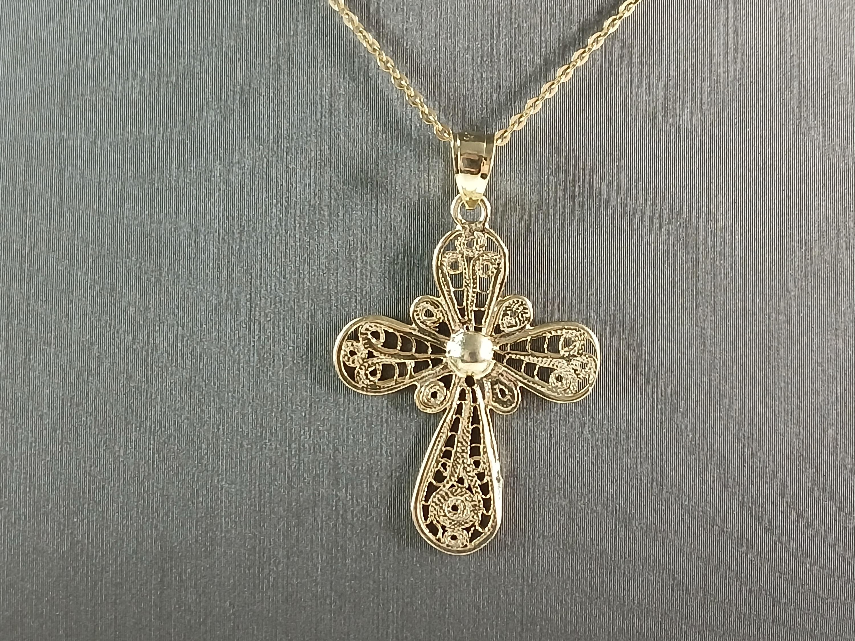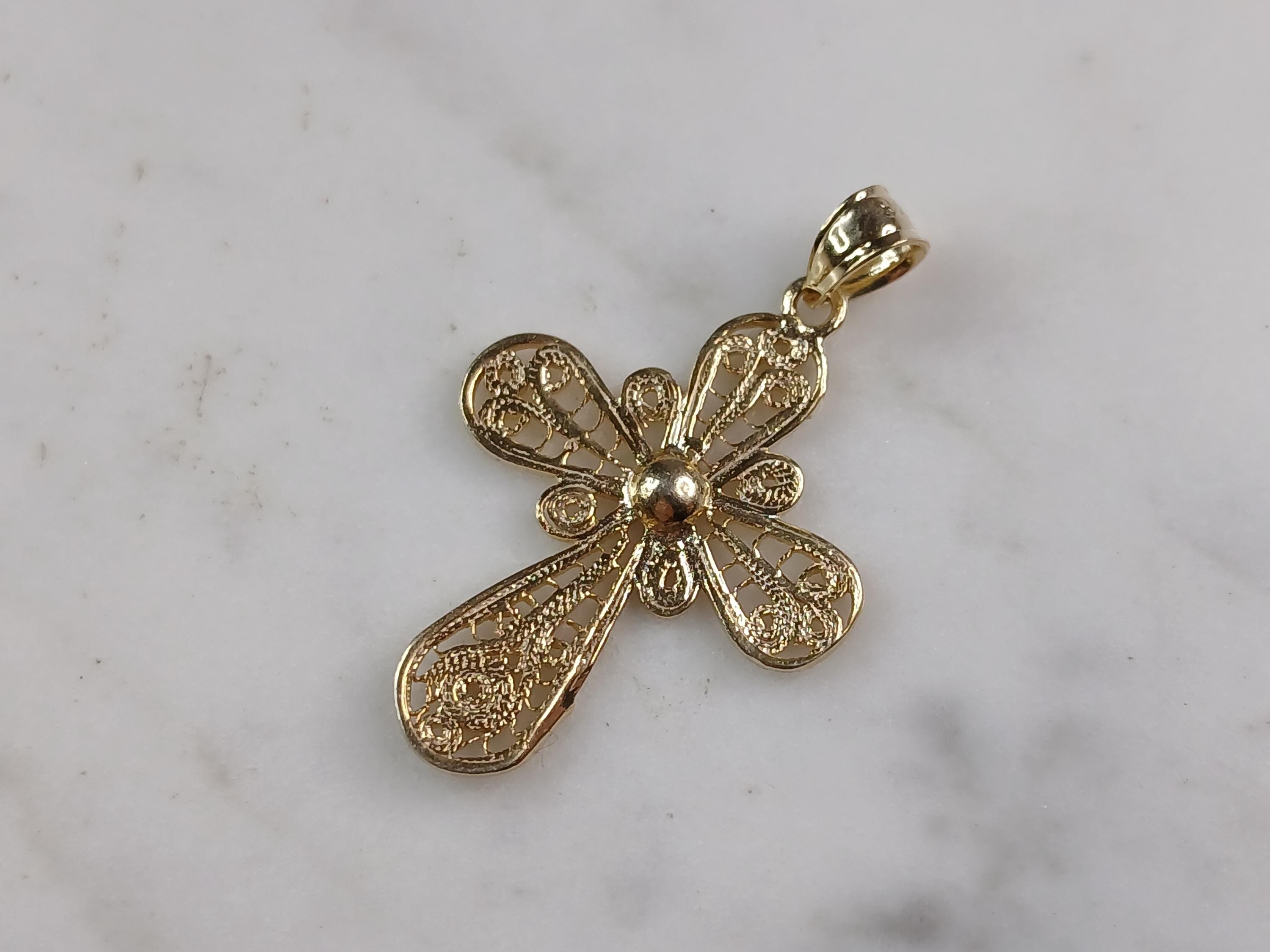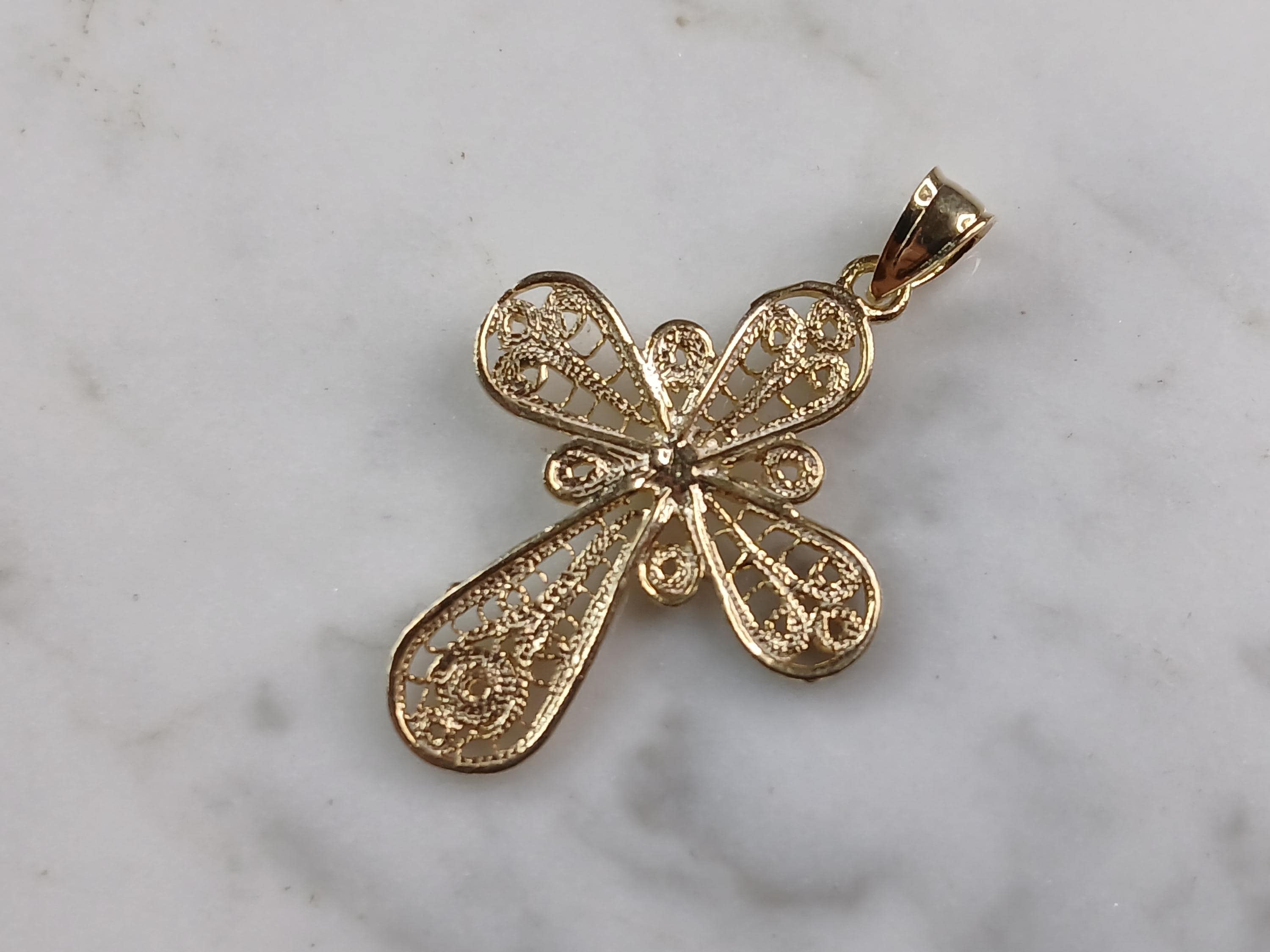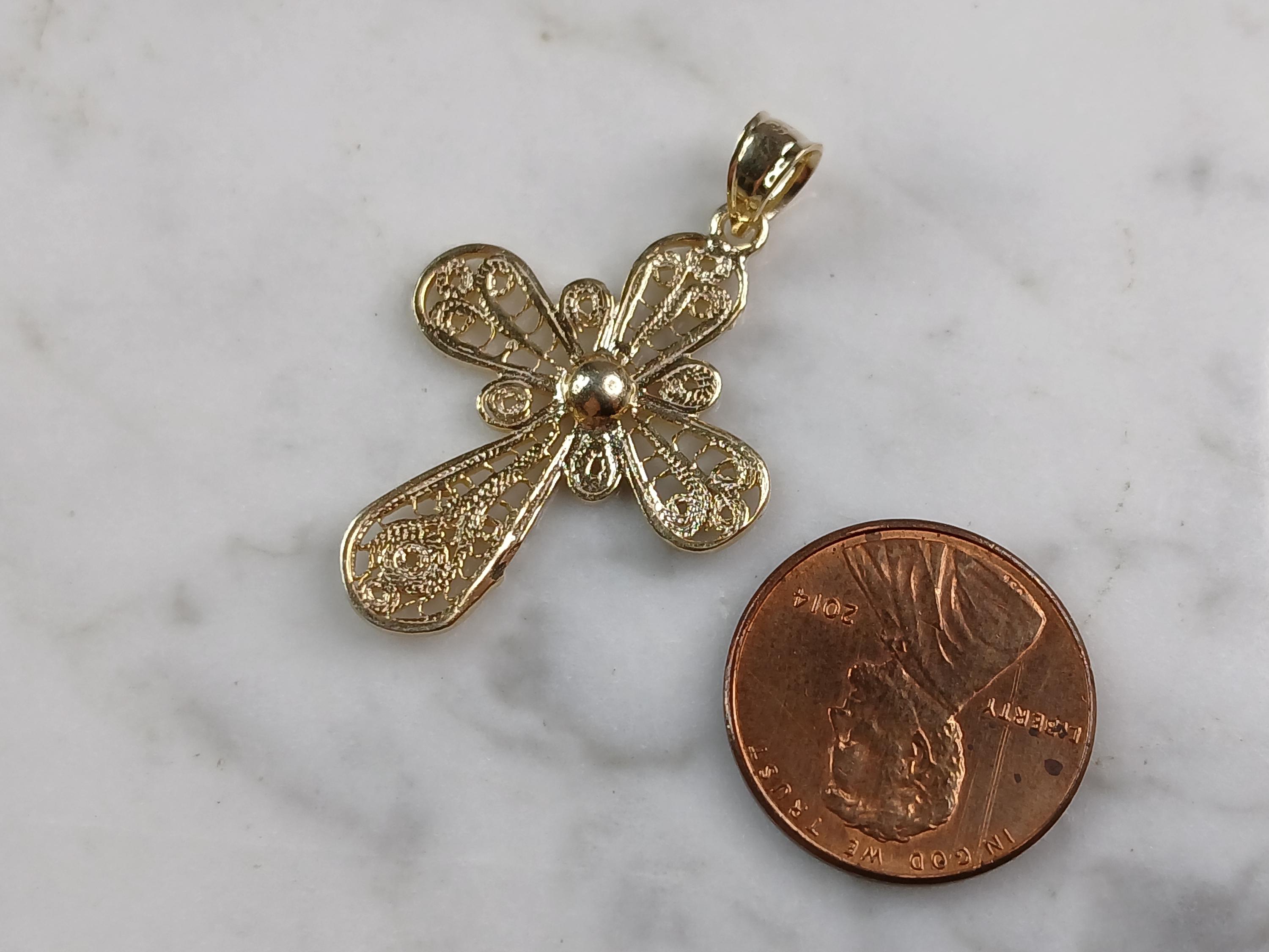 A VERY NICE STERLING SILVER RELIGIOUS FILIGREE CROSS PENDANT WITH NECKLACE THAT WEIGHS 3.5g. THE PENDANT MEASURES 1 3/8" LONG BY 1" WIDE. THE NECKLACE MEASURES 18" LONG. ANY QUESTIONS PLEASE DONT HESITATE TO ASK. BE SURE TO CHECK OUT SOME OF MY OTHER GREAT ITEMS UP FOR SALE. THANK YOU