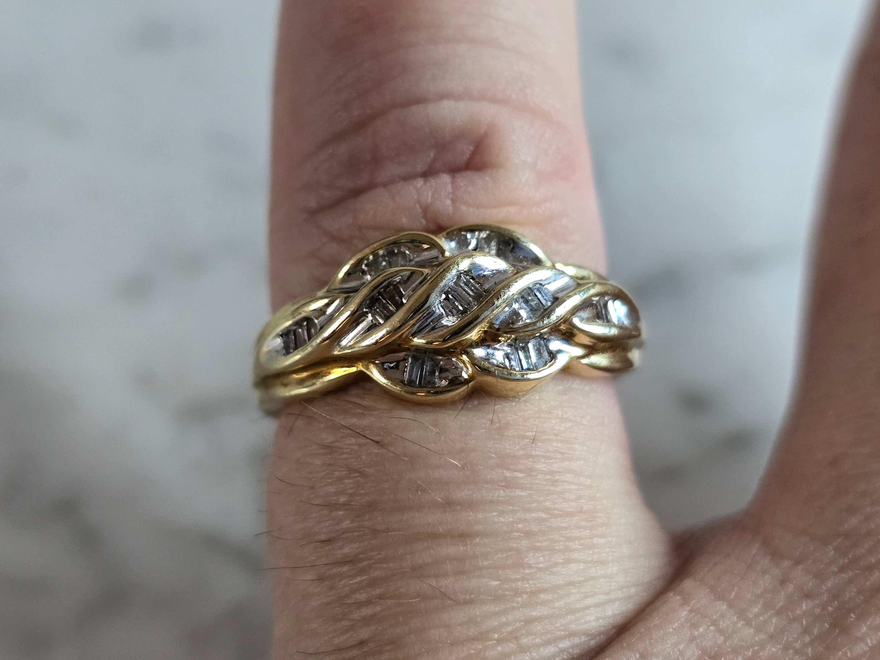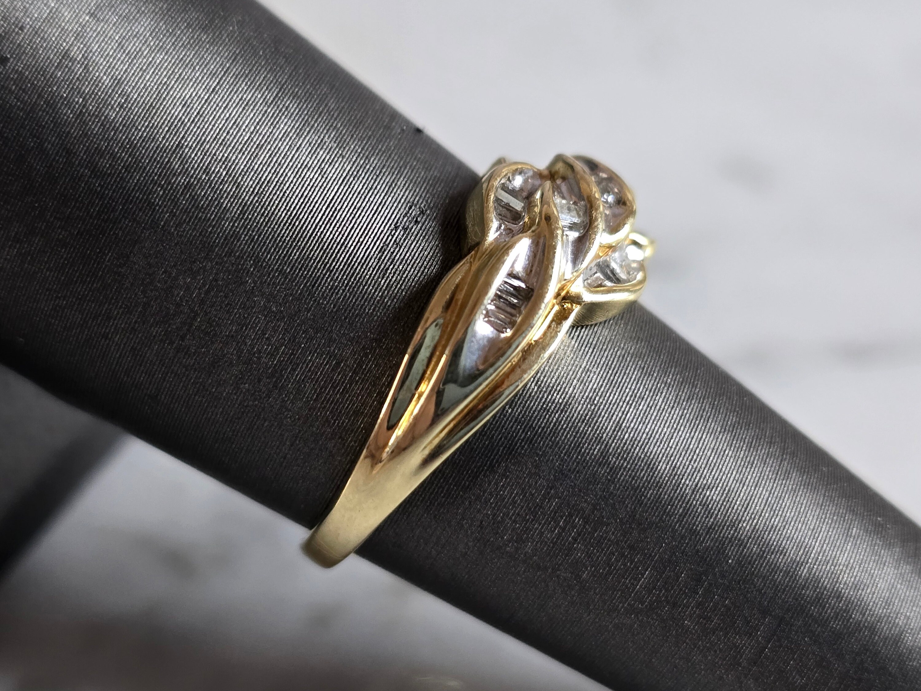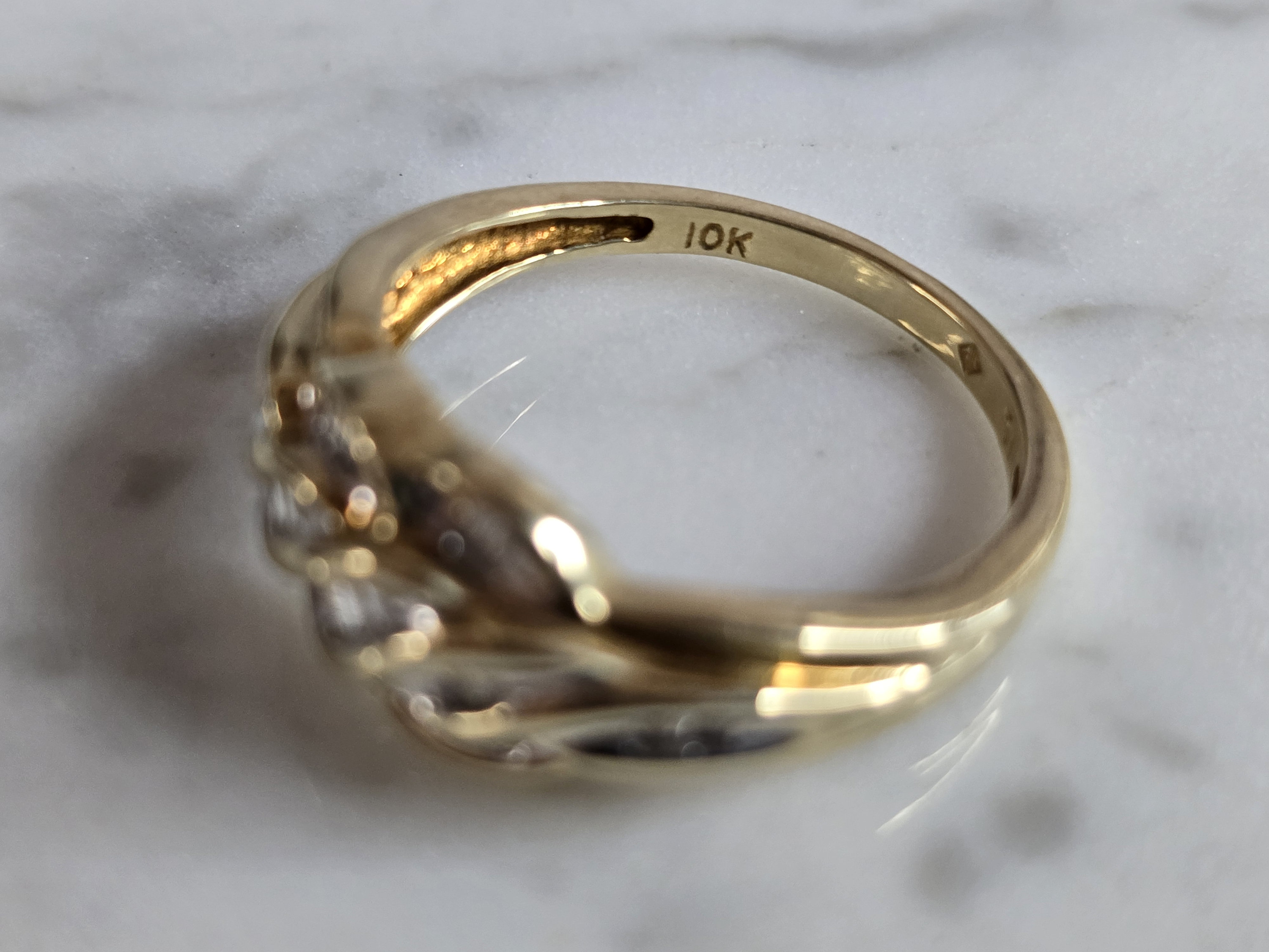 A WOMENS VINTAGE ESTATE 10K GOLD DIAMOND CLUSTER RING. THE RING WEIGHS 3.2g. THE SIZE OF THE RING IS A 7.0. THERE ARE ABOUT .18cts OF DIAMONDS. THE WIDTH OF THE RING IS 5/16". ANY QUESTIONS PLEASE DO NOT HESITATE TO ASK. BE SURE TO CHECK OUT SOME OF MY OTHER GREAT ITEMS UP FOR SALE. THANK YOU.