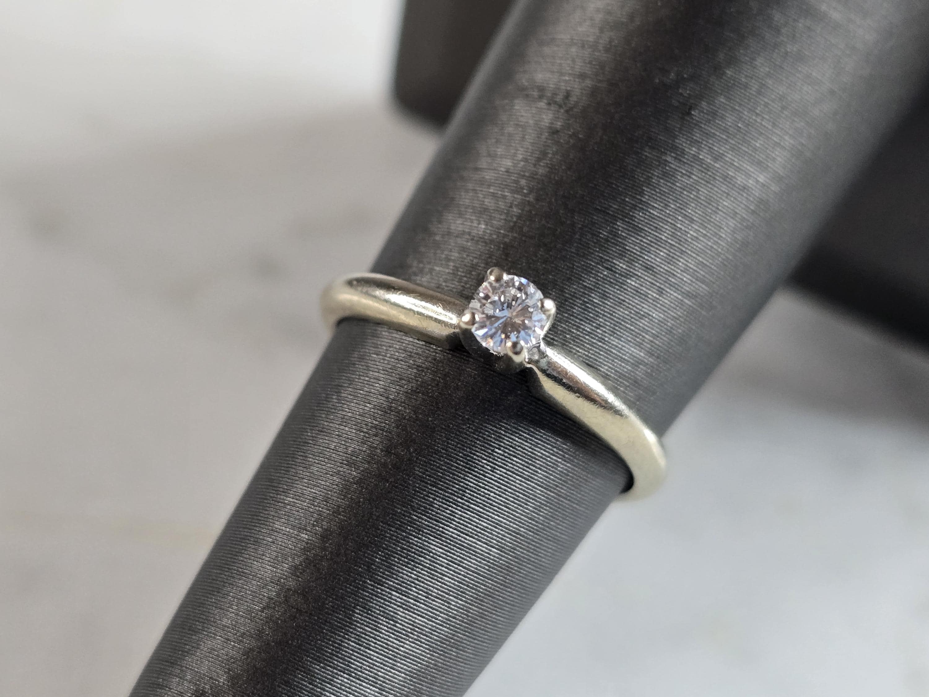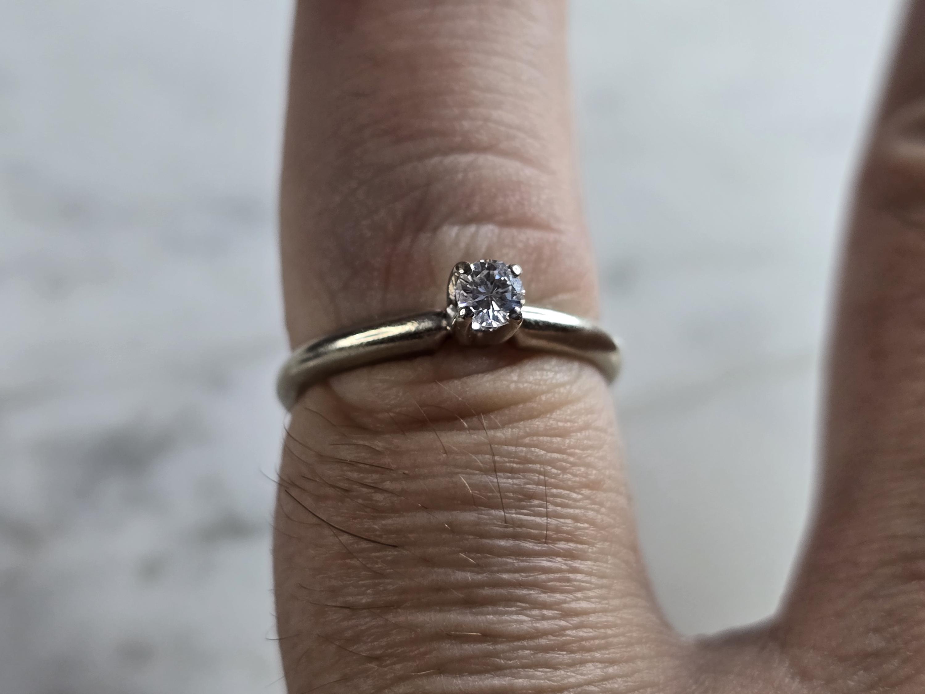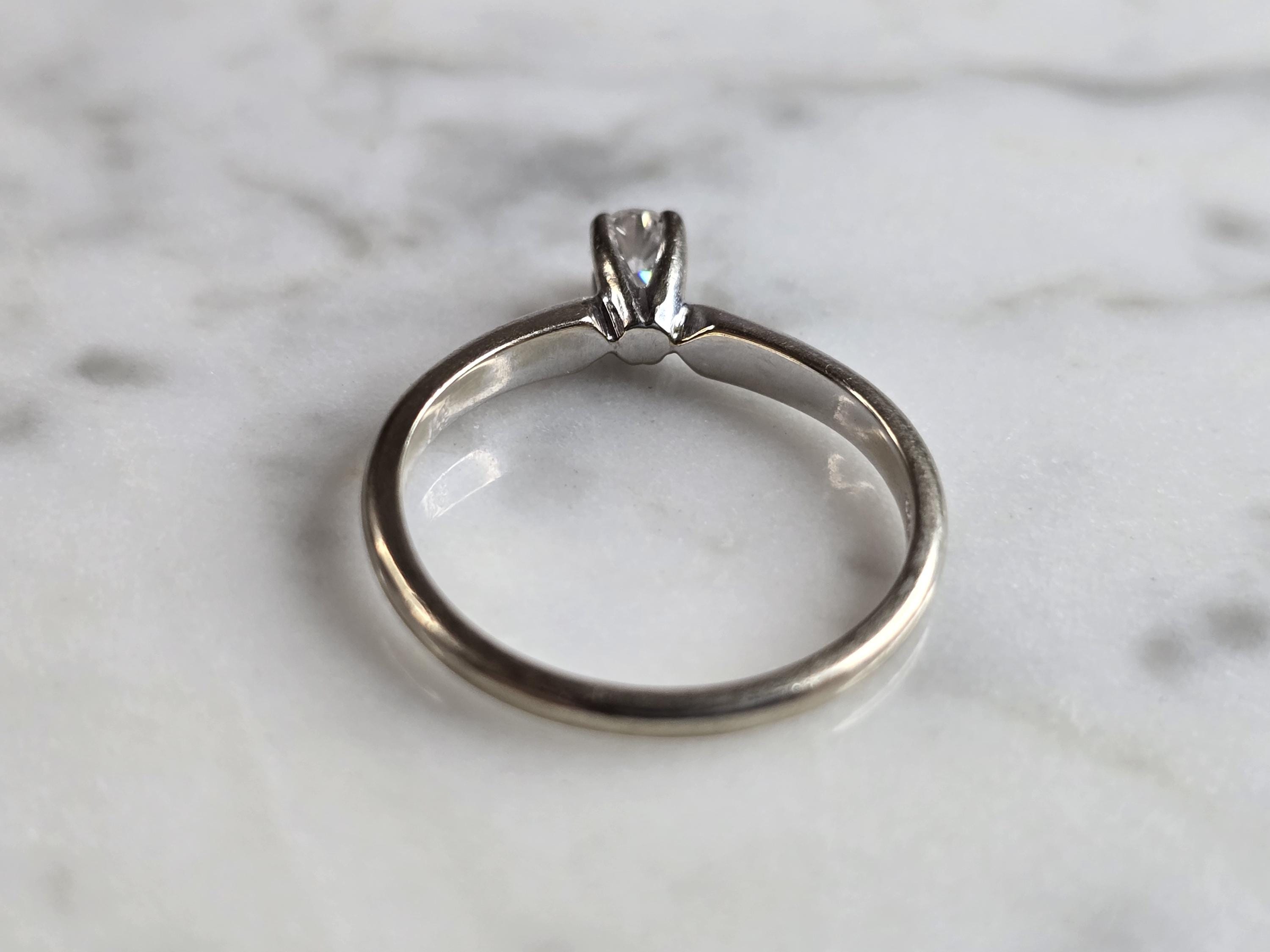A WOMEN'S VINTAGE ESTATE 14K WHITE GOLD DIAMOND ENGAGEMENT RING, MADE BY STYLECREST. THE RING WEIGHS 1.8g, AND IS A SIZE 5.25. THE WIDTH OF THE RING IS 1/8". THE DIAMOND IS ABOUT 0.10cts. ANY QUESTIONS PLEASE DO NOT HESITATE TO ASK. BE SURE TO CHECK OUT SOME OF MY OTHER GREAT ITEMS UP FOR SALE. THANK YOU.