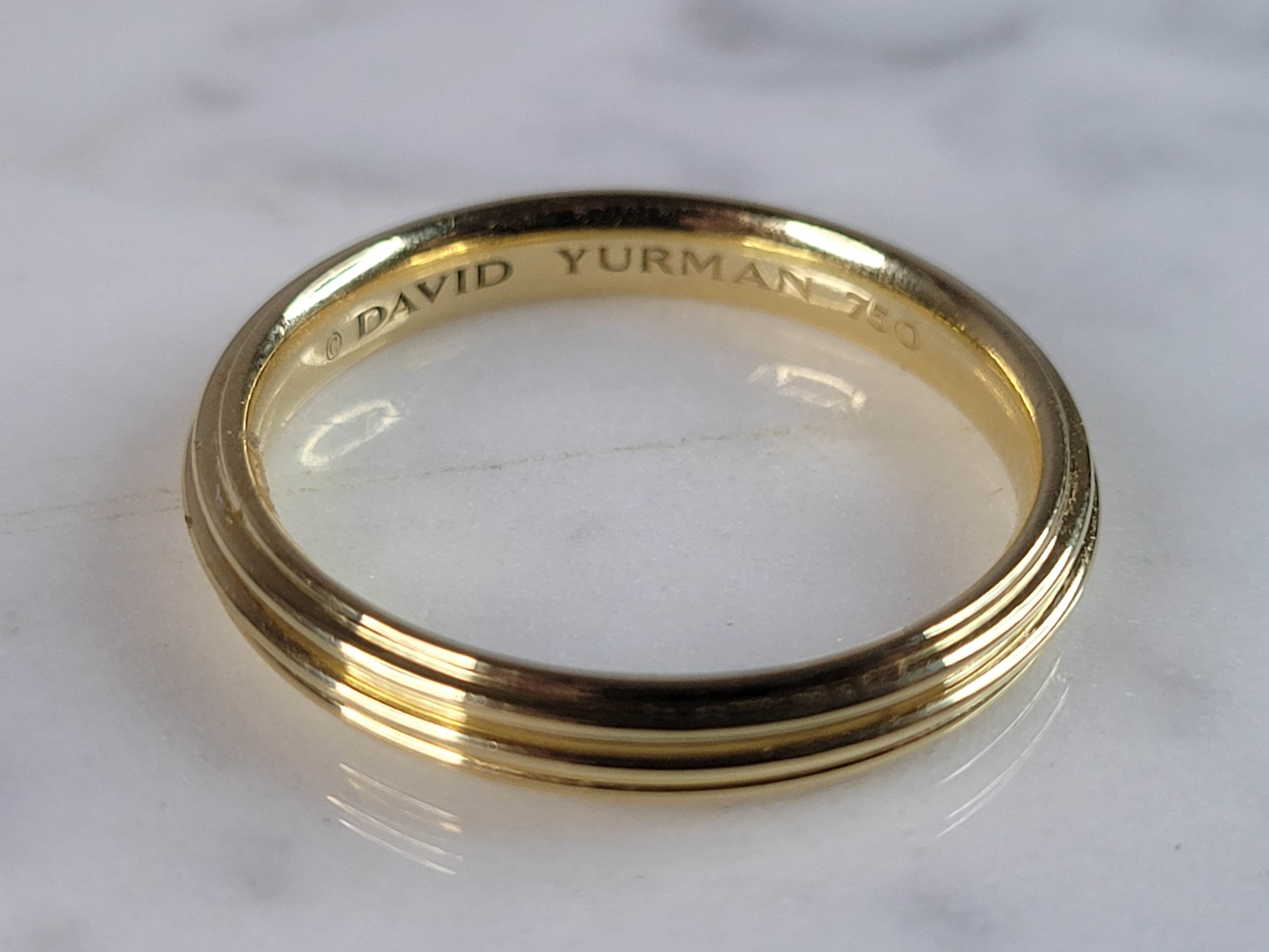 MENS VINTAGE ESTATE 18K YELLOW GOLD DECO WEDDING BAND RING, MADE BY DAVID YURMAN. THE RING WEIGHS 6.2g AND IS A SIZE 10.5. THE WIDTH OF THE RING IS 1/8". RING IS MARKED AS SEE IN THE ONE PIC. ANY QUESTIONS PLEASE DO NOT HESITATE TO ASK. BE SURE TO CHECK OUT SOME OF MY OTHER GREAT ITEMS UP FOR SALE. THANK YOU.