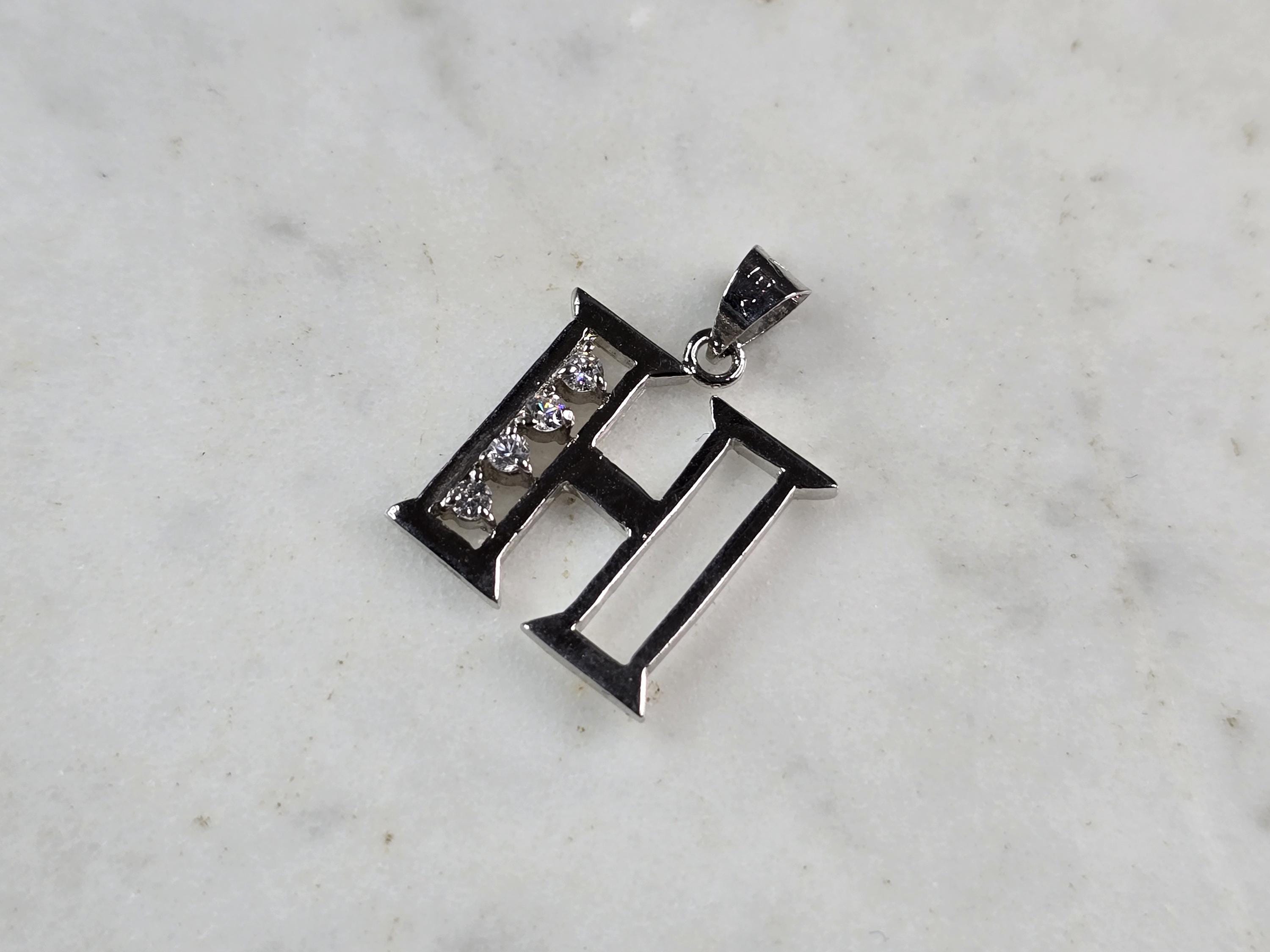 A WOMENS STERLING SILVER INITIAL LETTER "H" PENDANT. PENDANT WEIGHS 1.3g AND MEASURES 3/4" LONG BY 5/8" WIDE. MAKES A GREAT GIFT FOR THAT SOMEONE SPECIAL. ANY QUESTIONS, PLEASE ASK. BE SURE TO CHECK OUT OUR OTHER ITEMS FOR SALE.