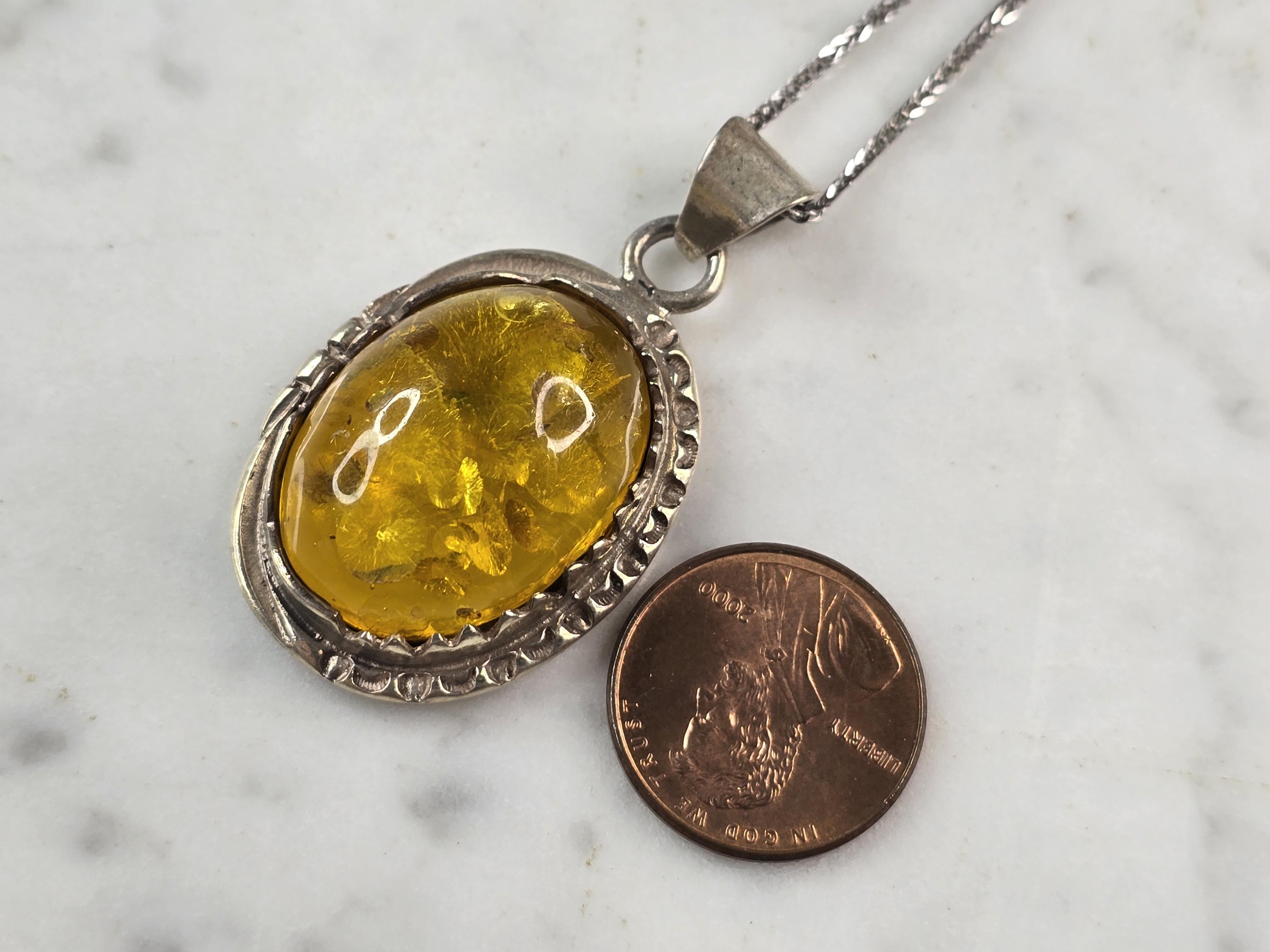 A WOMENS VINTAGE ESTATE STERLING SILVER MODERNIST PENDANT NECKLACE. THE PENDANT MEASURES 1 3/4" BY 1". THE NECKLACE MEASURES 19 1/2" LONG. TOGETHER THEY WEIGH 13.1g. NOT SURE IF THE STONE IS NATURAL OR MAN MADE. THIS WOULD MAKE A LOVELY GIFT FOR THAT SOMEONE SPECIAL. ANY QUESTIONS PLEASE ASK. BE SURE TO CHECK OUT SOME OF MY OTHER GREAT ITEMS UP FOR SALE. THANK YOU