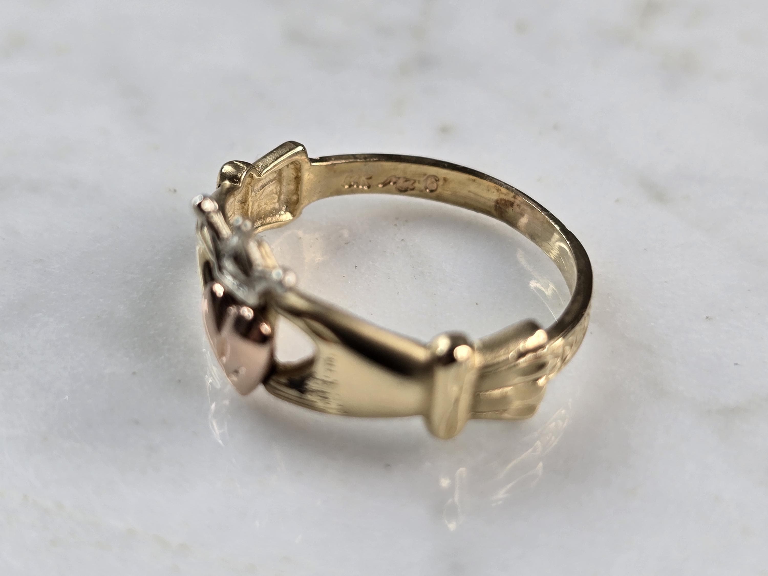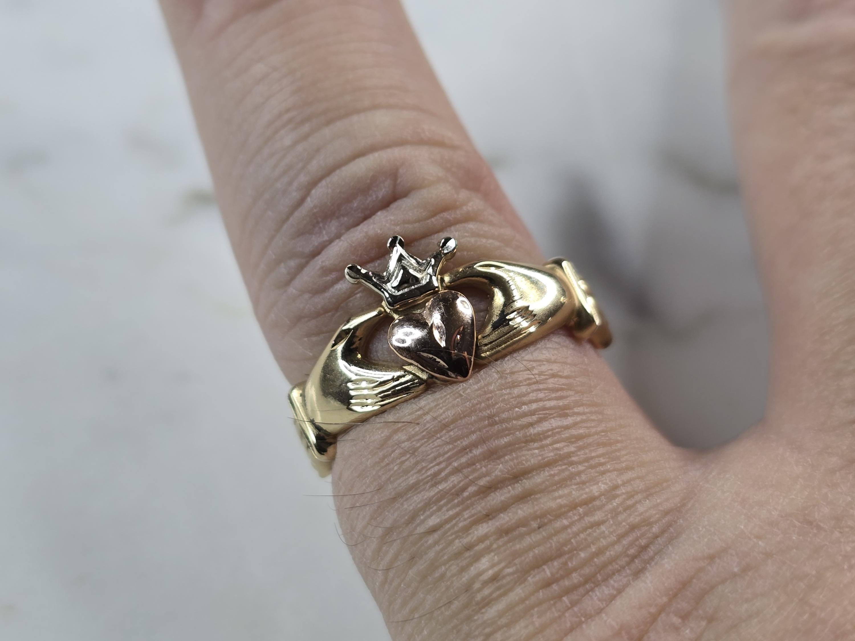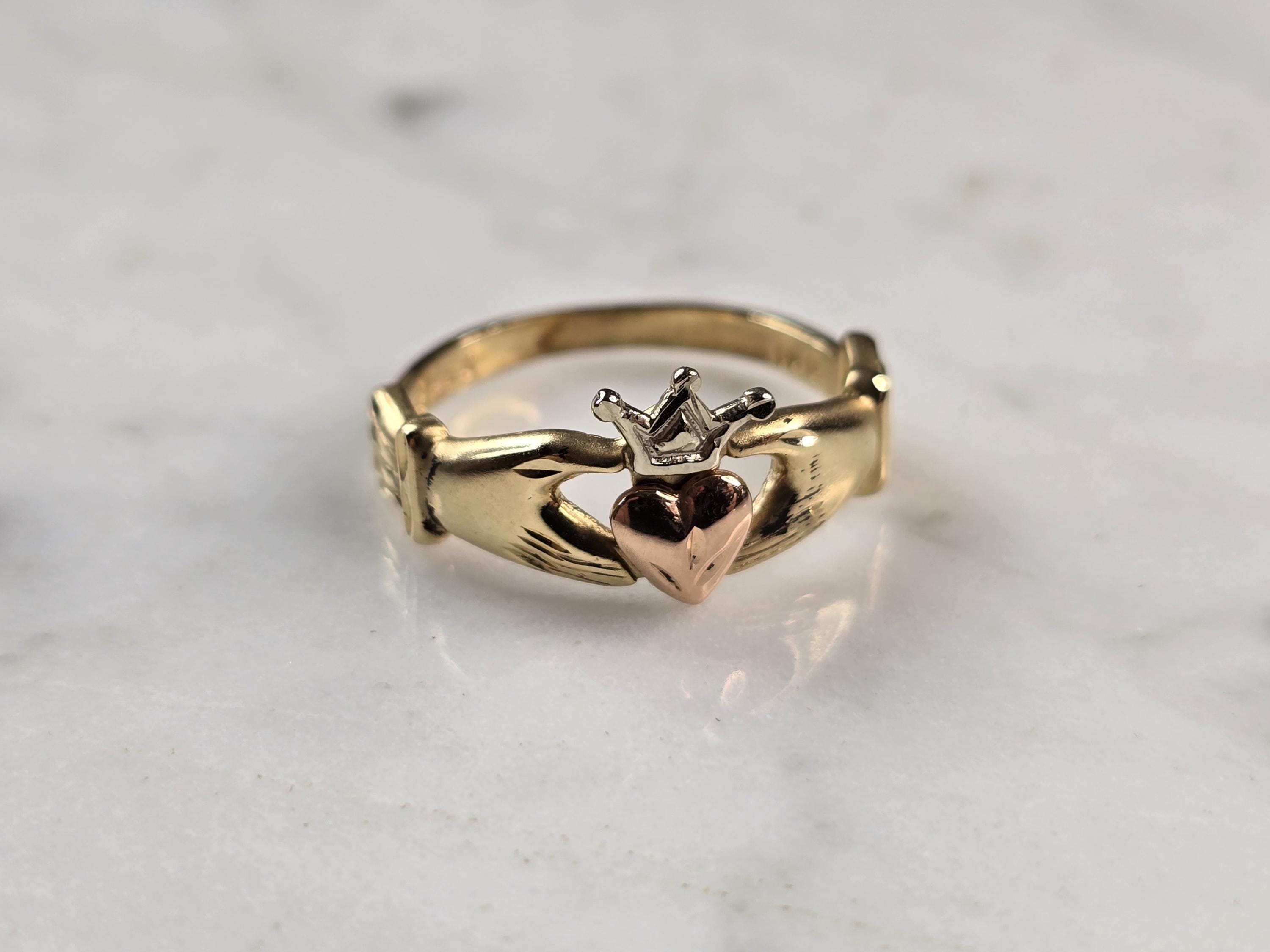 A WOMENS VINTAGE ESTATE IRISH CLADDAGH RING, MADE BY MICHAEL ANTHONY. THE RING WEIGHS 2.7g AND IS A SIZE 6.5. RING MEASURES 3/8" WIDE. WOULD MAKE A LOVELY GIFT FOR THAT SOMEONE SPECIAL. BE SURE TO CHECK OUT SOME OF MY OTHER GREAT ITEMS UP FOR SALE. THANK YOU