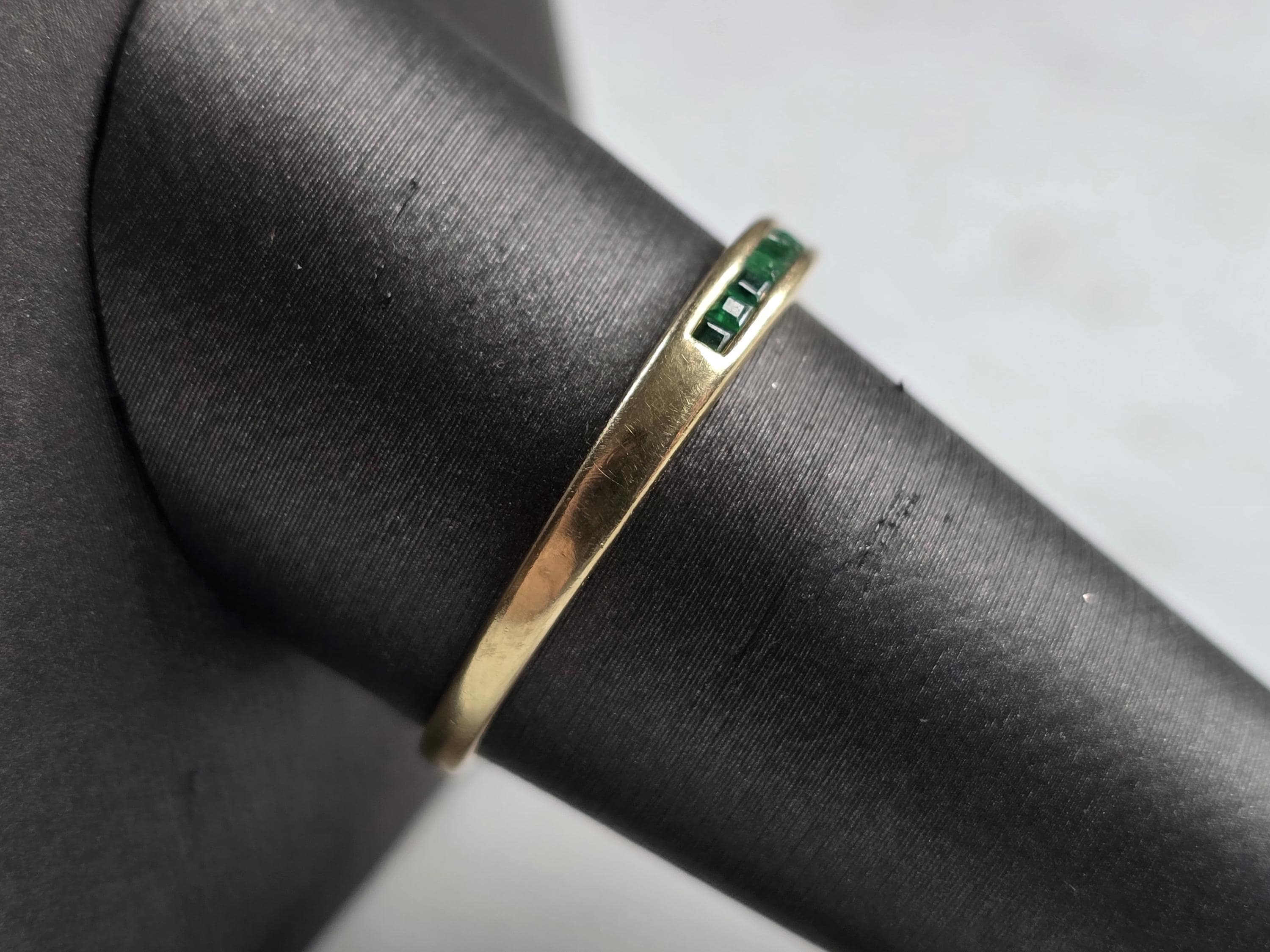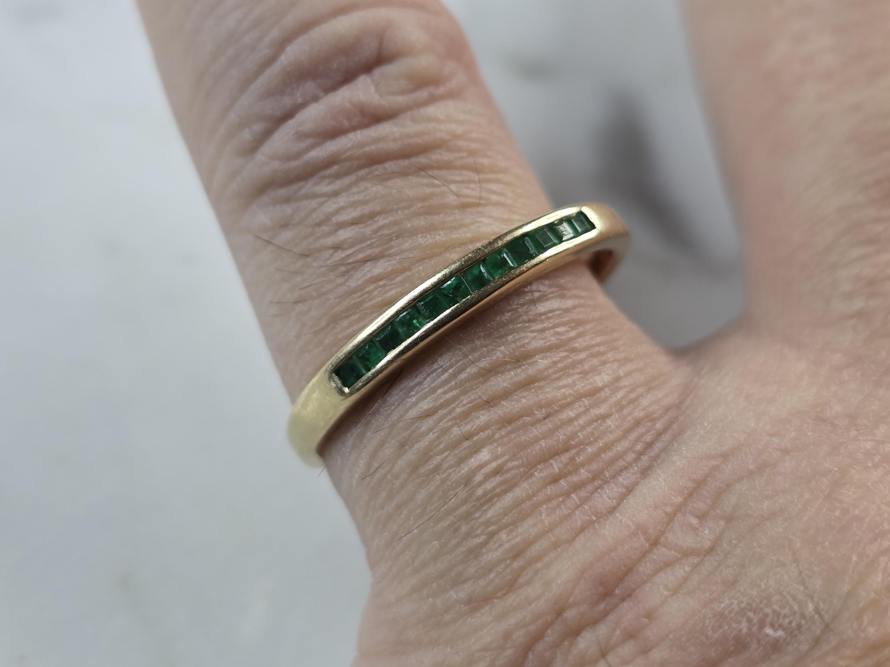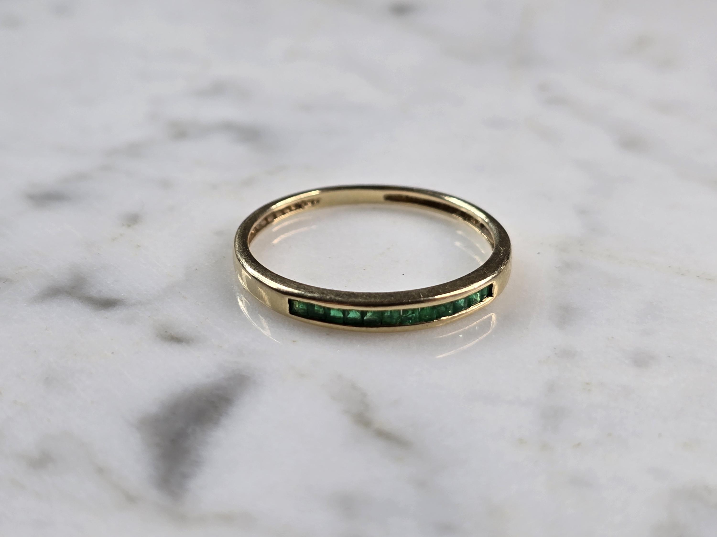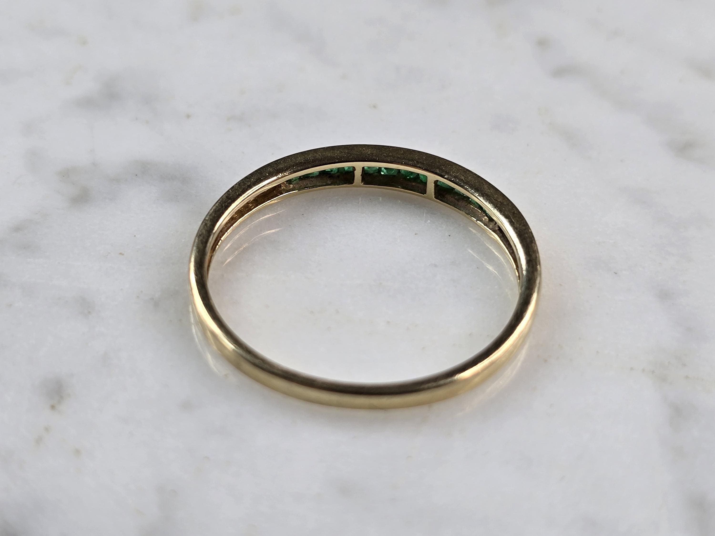 A WOMENS VINTAGE ESTATE 14K GOLD EMERALD RING. THE RING IS A SIZE 10.0, AND WEIGHS 1.7g. THERE ARE 12 TINY STONES, AND THE RINGMEASURES 1/8" WIDE. THE RING MAKES A BEAUTIFUL GIFT FOR THAT SOMEONE SPECIAL. ANY QUESTIONS, PLEASE ASK. BE SURE TO CHECK OUT SOME OF MY OTHER GREAT ITEMS UP FOR SALE. THANK YOU.