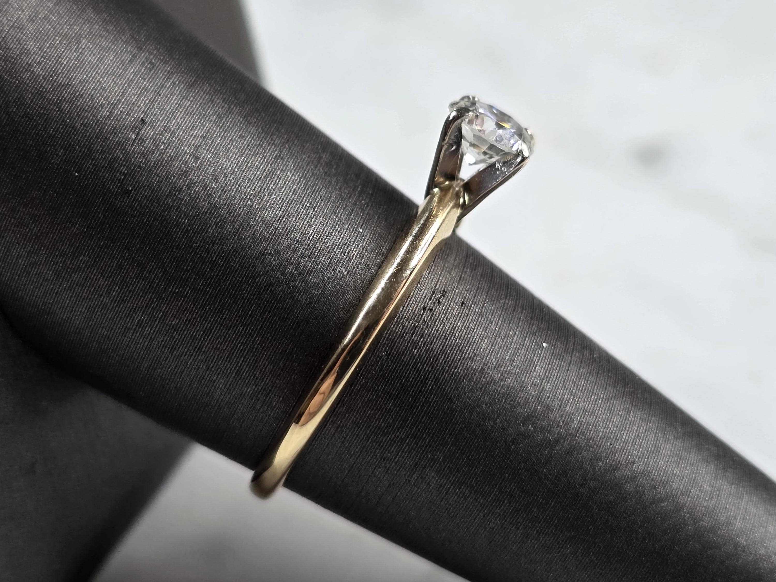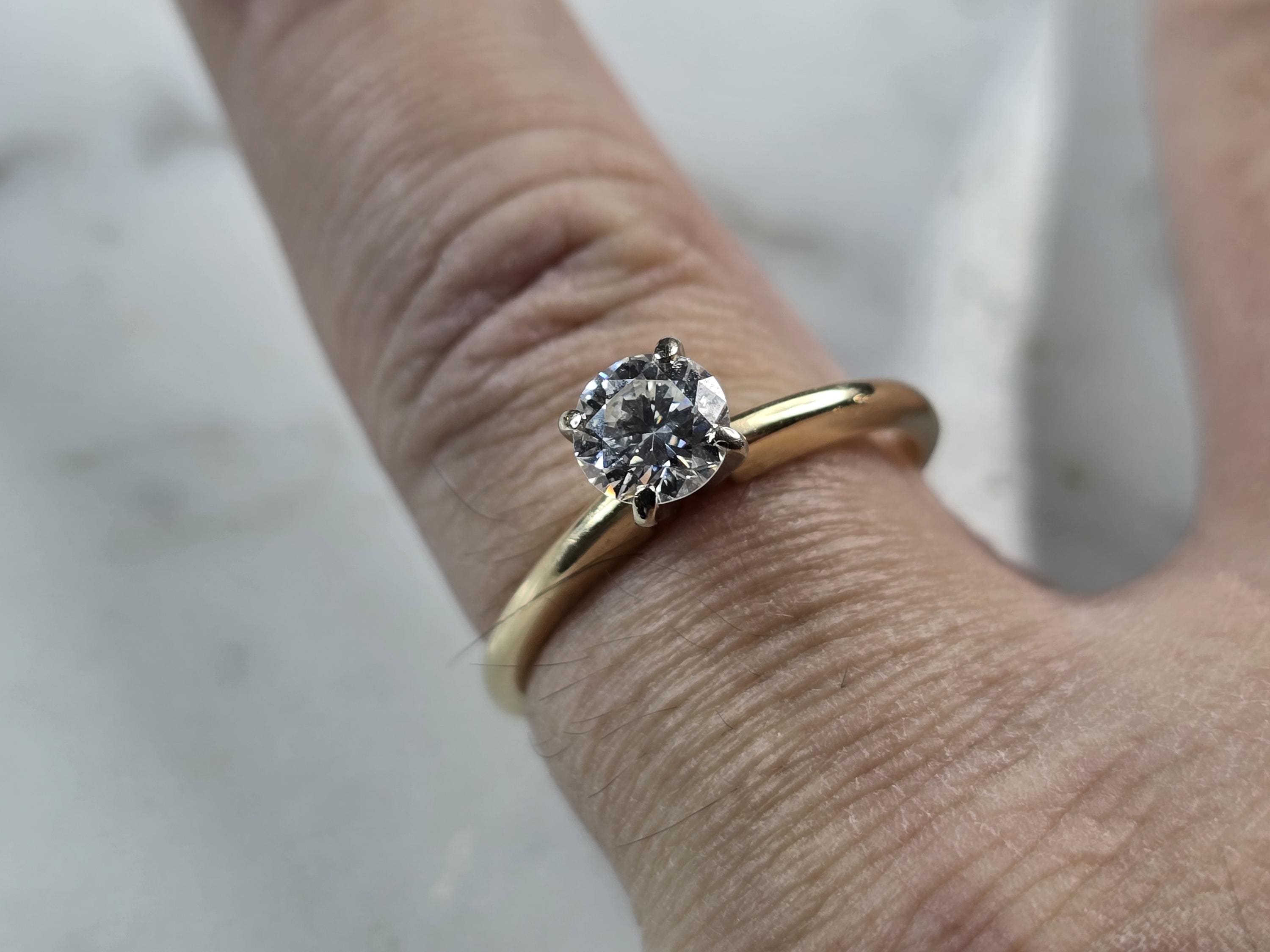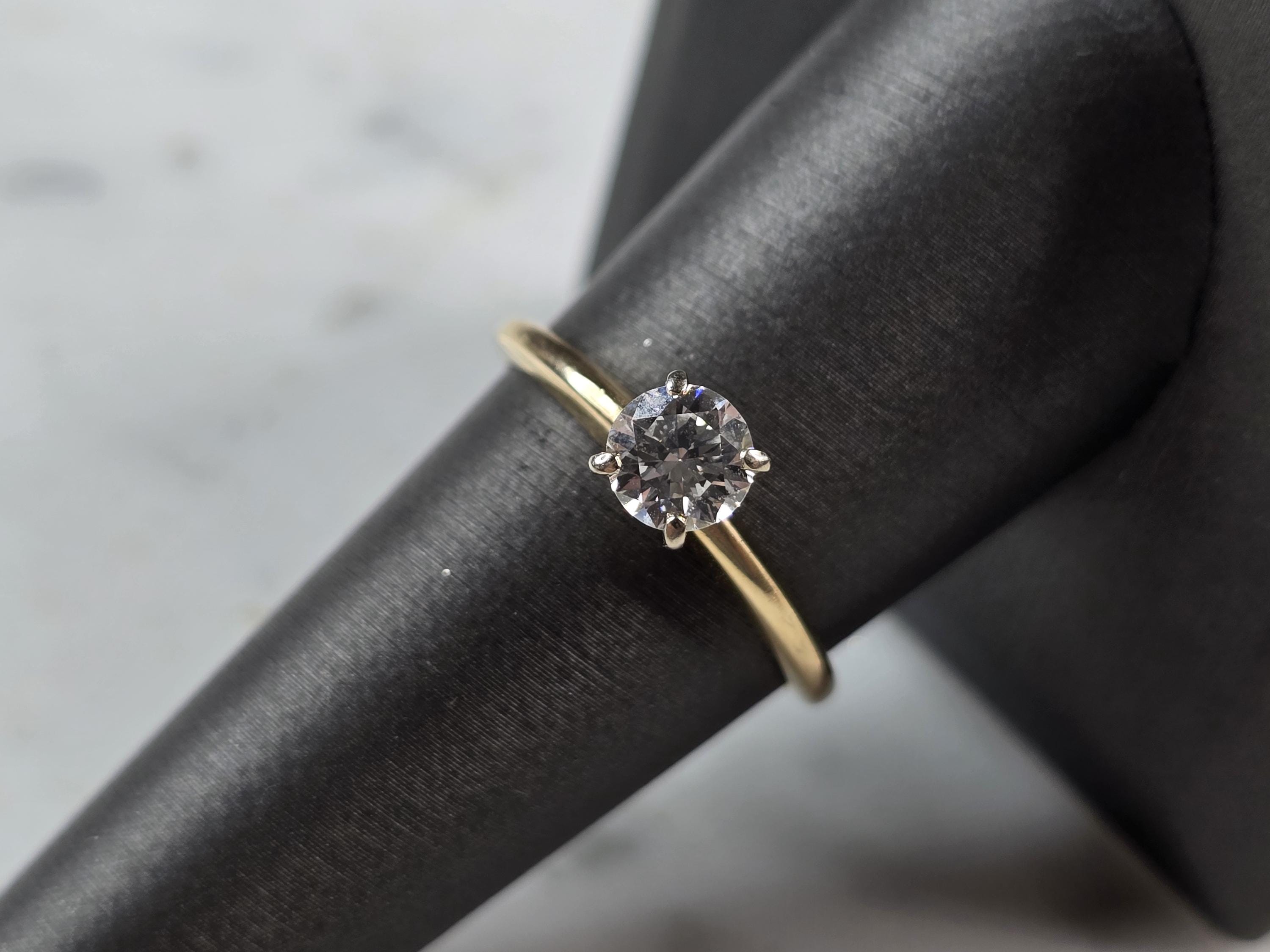A WOMEN'S VINTAGE ESTATE 14K GOLD DIAMOND ENGAGEMENT RING. THE RING WEIGHS 2.7g. THE SIZE OF THE RING IS AN 8.0, AND IS ABOUT 1/4" WIDE. THE DIAMOND IS ABOUT .65cts. MAKES A LOVELY GIFT FOR THAT SOMEONE SPECIAL. ANY QUESTIONS PLEASE DO NOT HESITATE TO ASK. BE SURE TO CHECK OUT SOME OF MY OTHER GREAT ITEMS UP FOR SALE. THANK YOU.