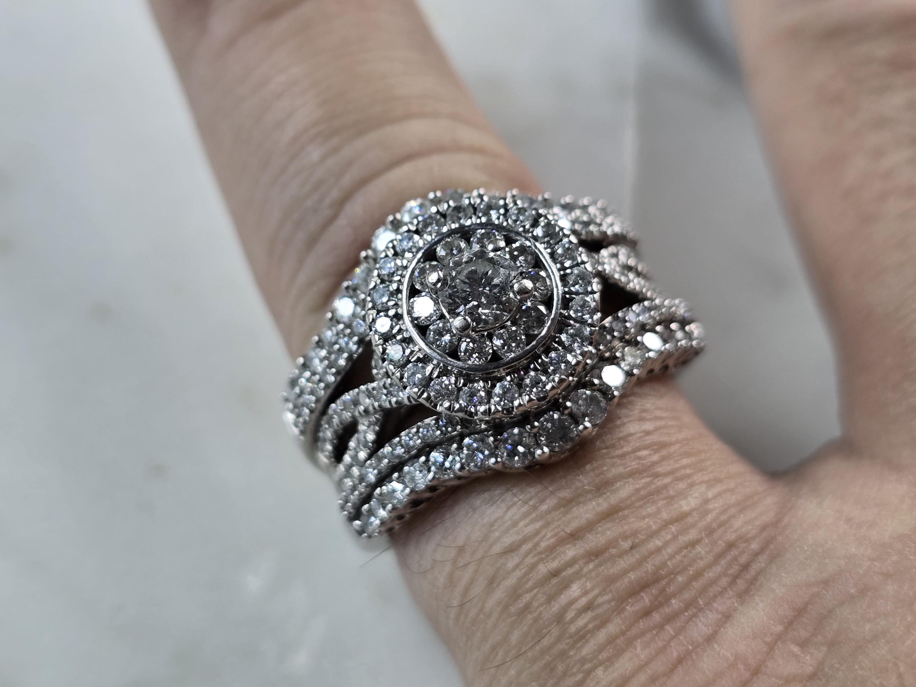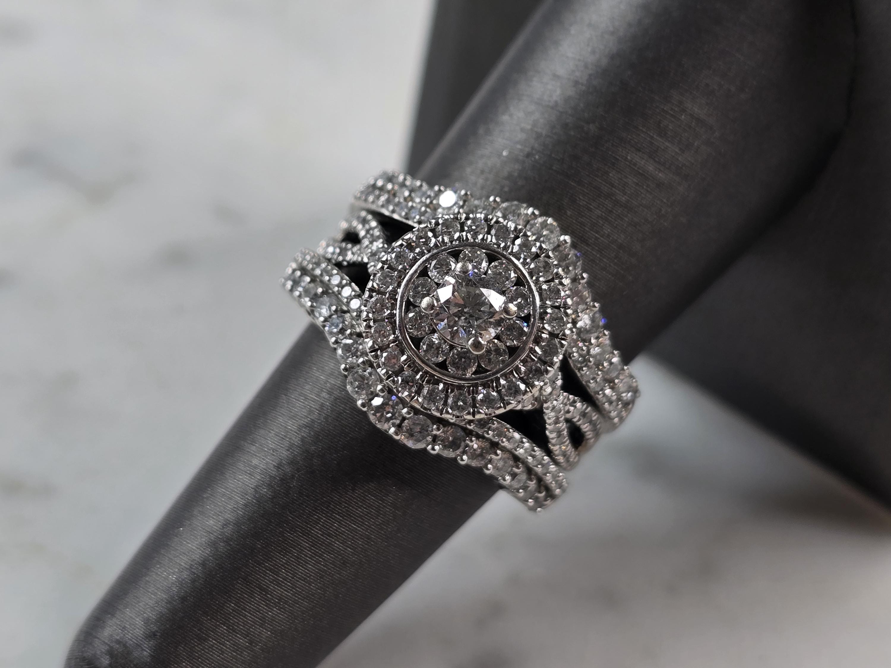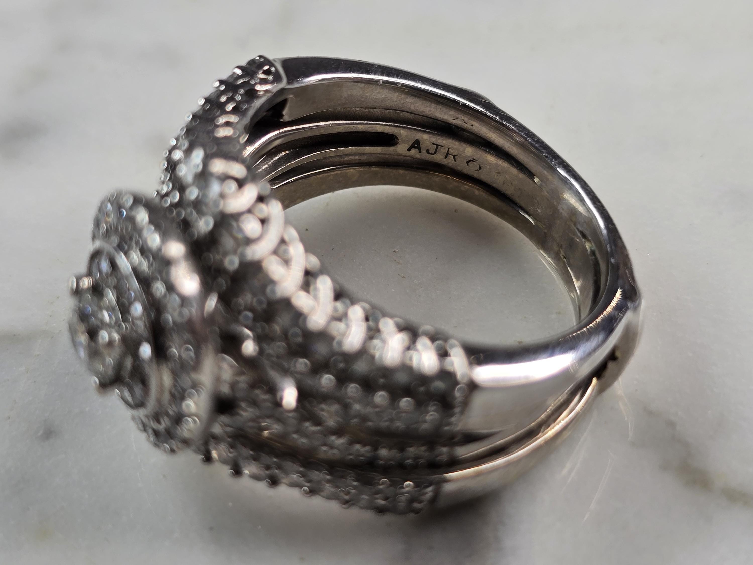 A WOMENS VINTAGE ESTATE 14K WHITE GOLD DIAMOND RING. THE RING IS A SIZE 7.5 AND WEIGHS 10.7g. THE CENTER IS ABOUT 0.30cts, WITH 84 SMALL ACCENT DIAMONDS. THE WIDTH OF THE RING IS 5/8". THE RING MAKES A BEAUTIFUL GIFT FOR THAT SOMEONE SPECIAL. ANY QUESTIONS, PLEASE ASK. BE SURE TO CHECK OUT SOME OF MY OTHER GREAT ITEMS UP FOR SALE. THANK YOU