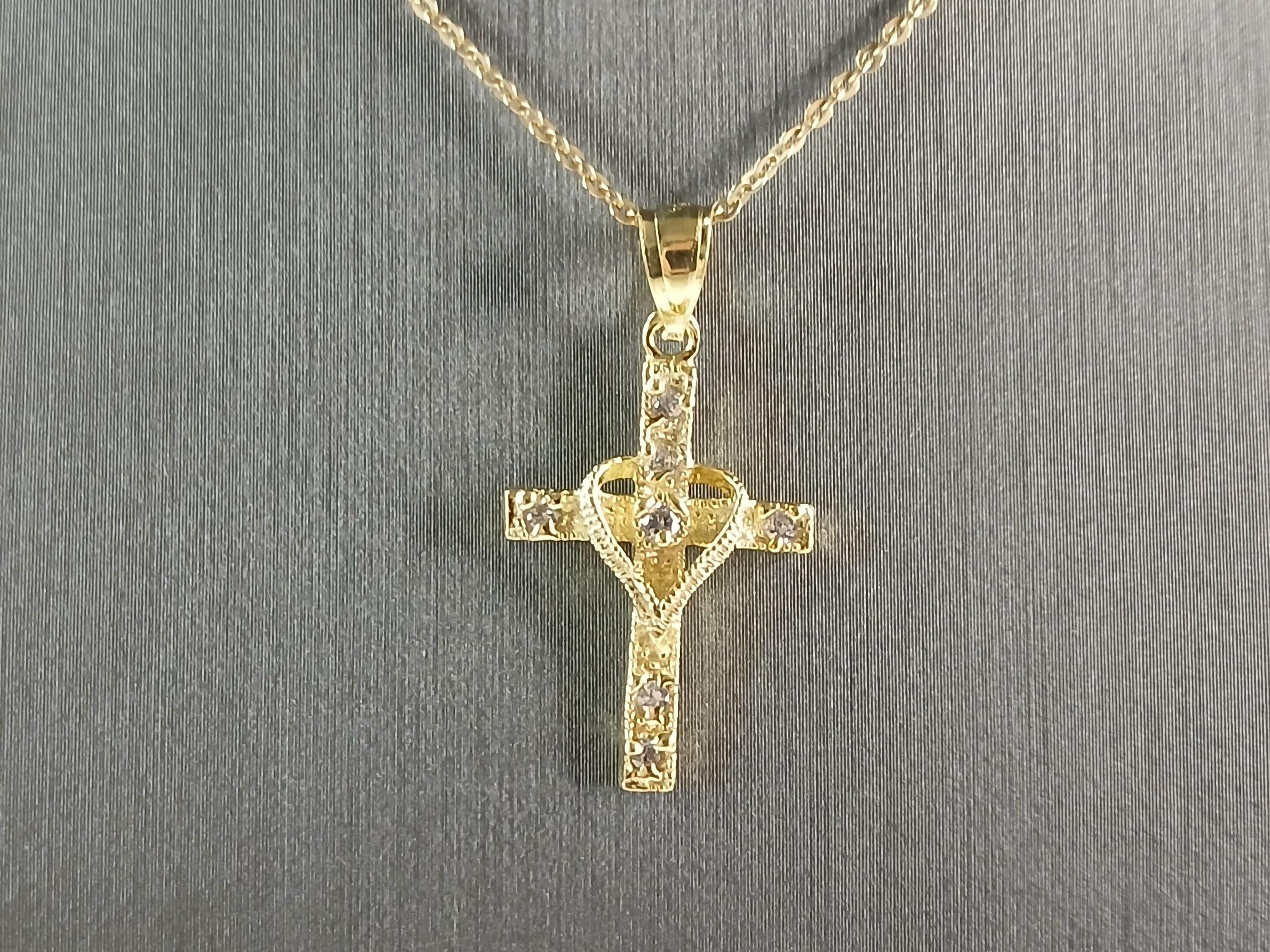 A VERY NICE STERLING SILVER GOLD TONE RELIGIOUS HEART CROSS NECKLACE THAT WEIGHS 3.2g. THE NECKLACE MEASURES 18" LONG AND THE PENDANT MEASURES 1 1/8" LONG BY 5/8" WIDE. ANY QUESTIONS PLEASE DONT HESITATE TO ASK. BE SURE TO CHECK OUT SOME OF MY OTHER GREAT ITEMS UP FOR SALE. THANK YOU