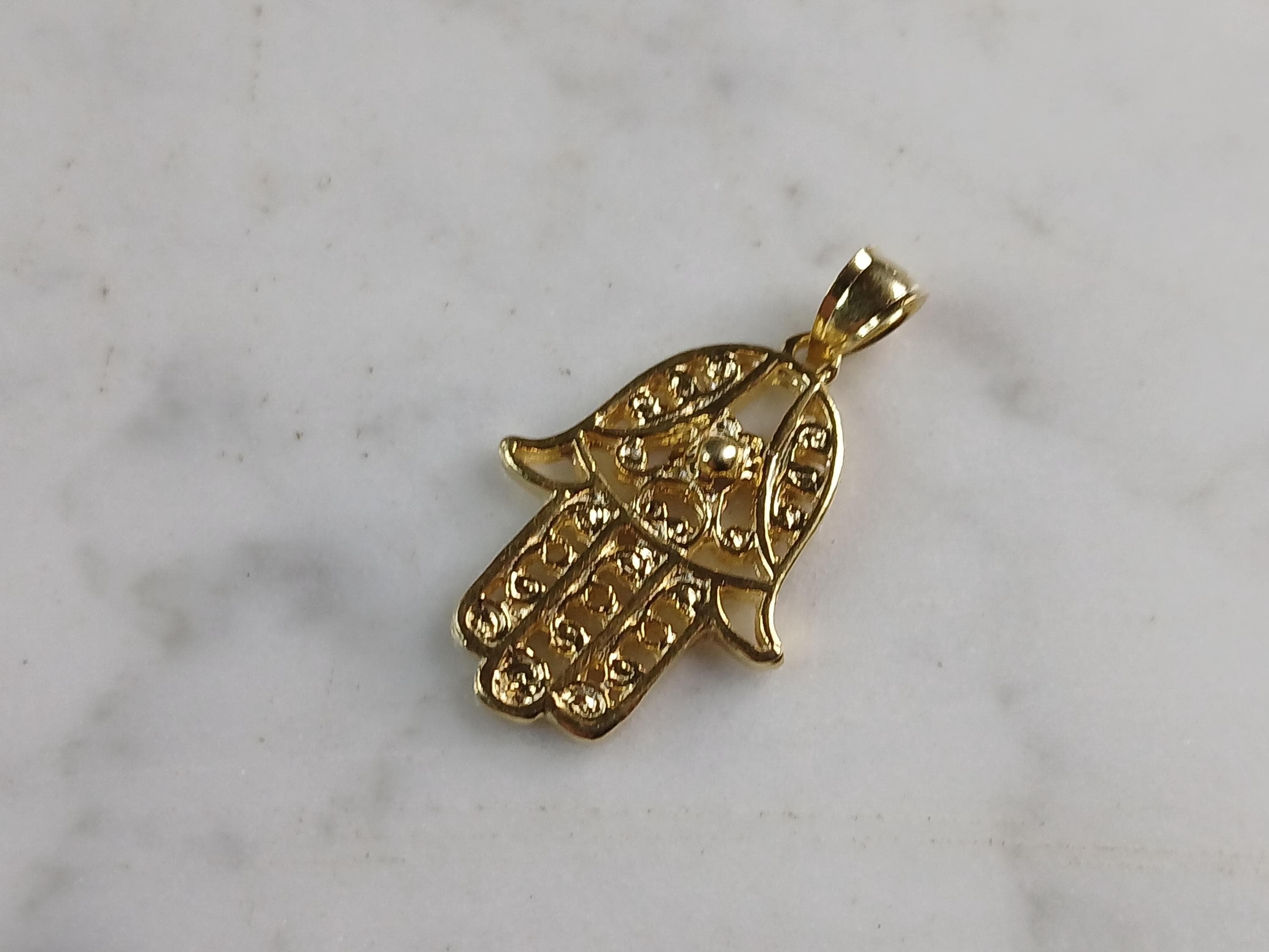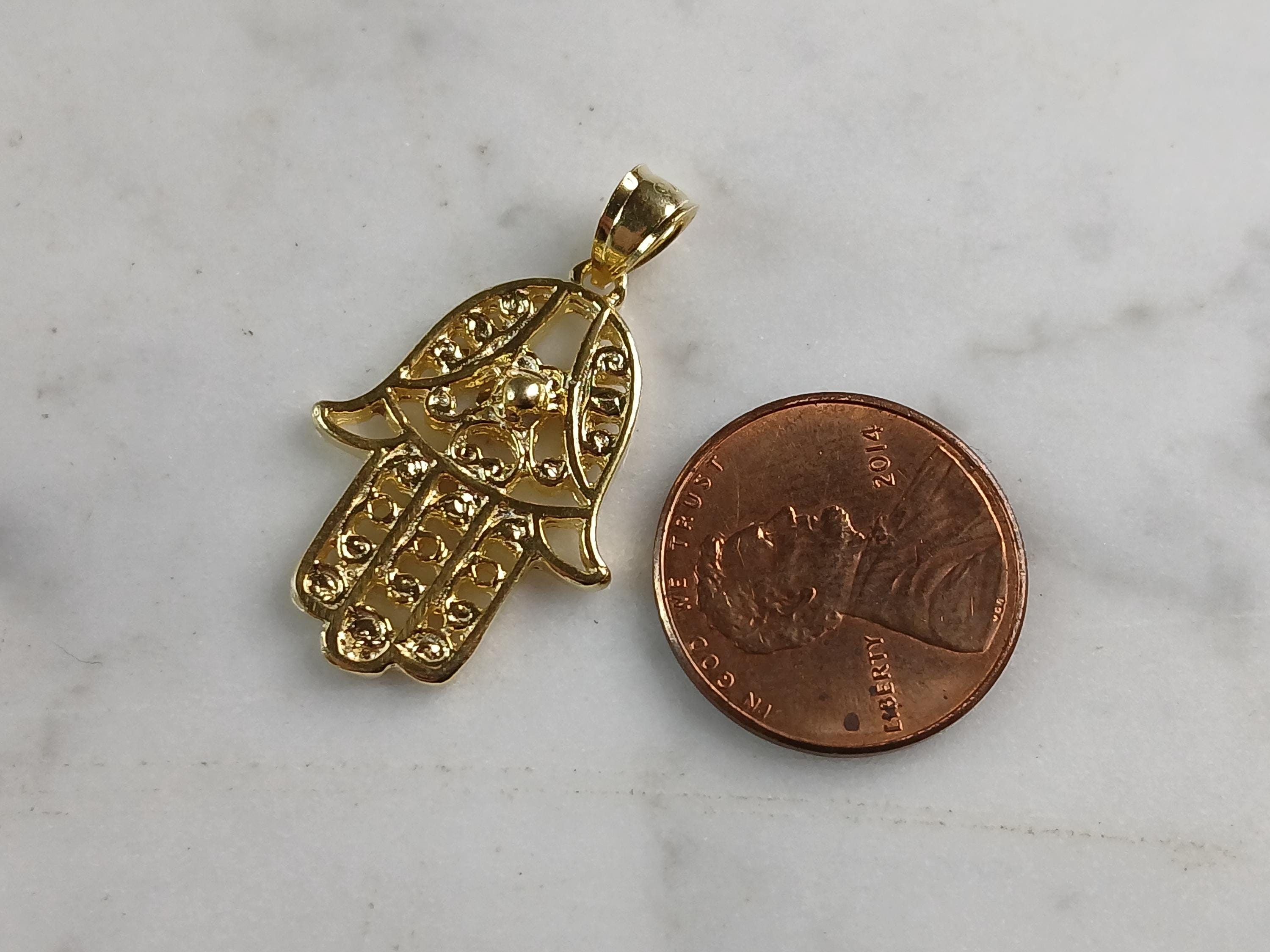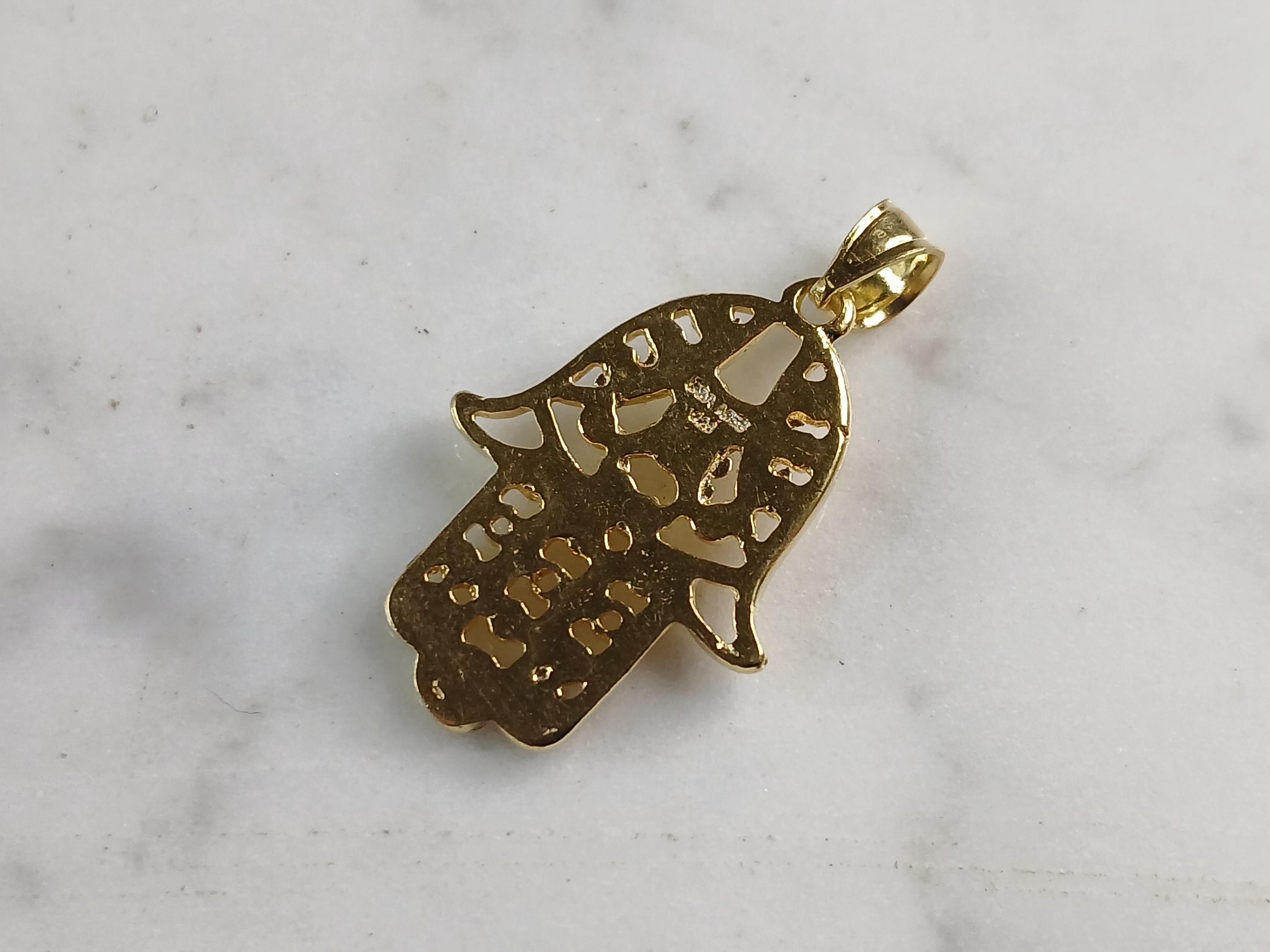 A WOMENS STERLING SILVER GOLD TONE HAMSA HAND PENDANT. THE PENDANT WEIGHS 2.7g, AND MEASURES 1 1/4" BY 5/8". MAKES A GREAT GIFT FOR THAT SPECIAL SOMEONE. ANY QUESTIONS, PLEASE DO NOT HESITATE TO ASK.
