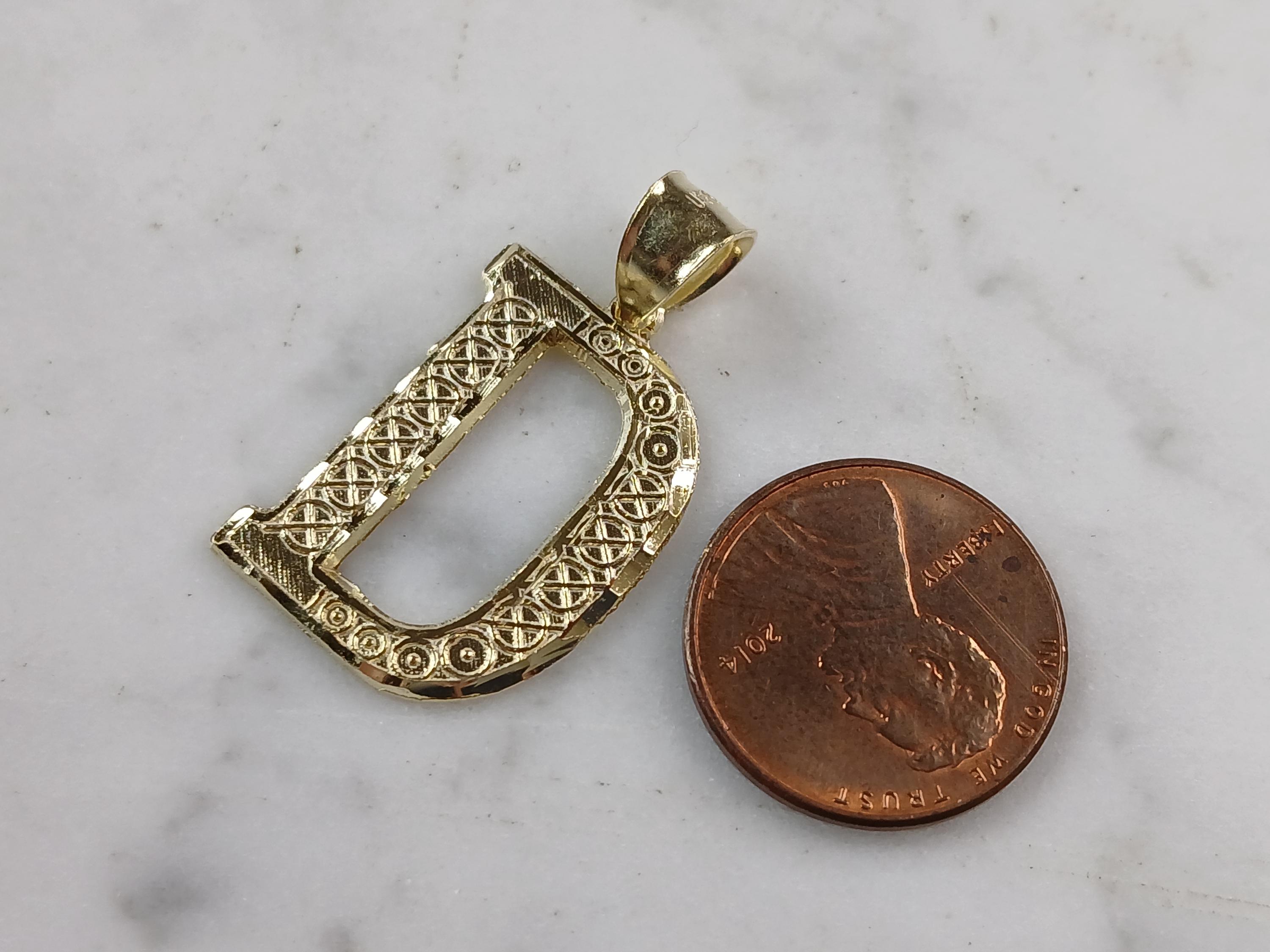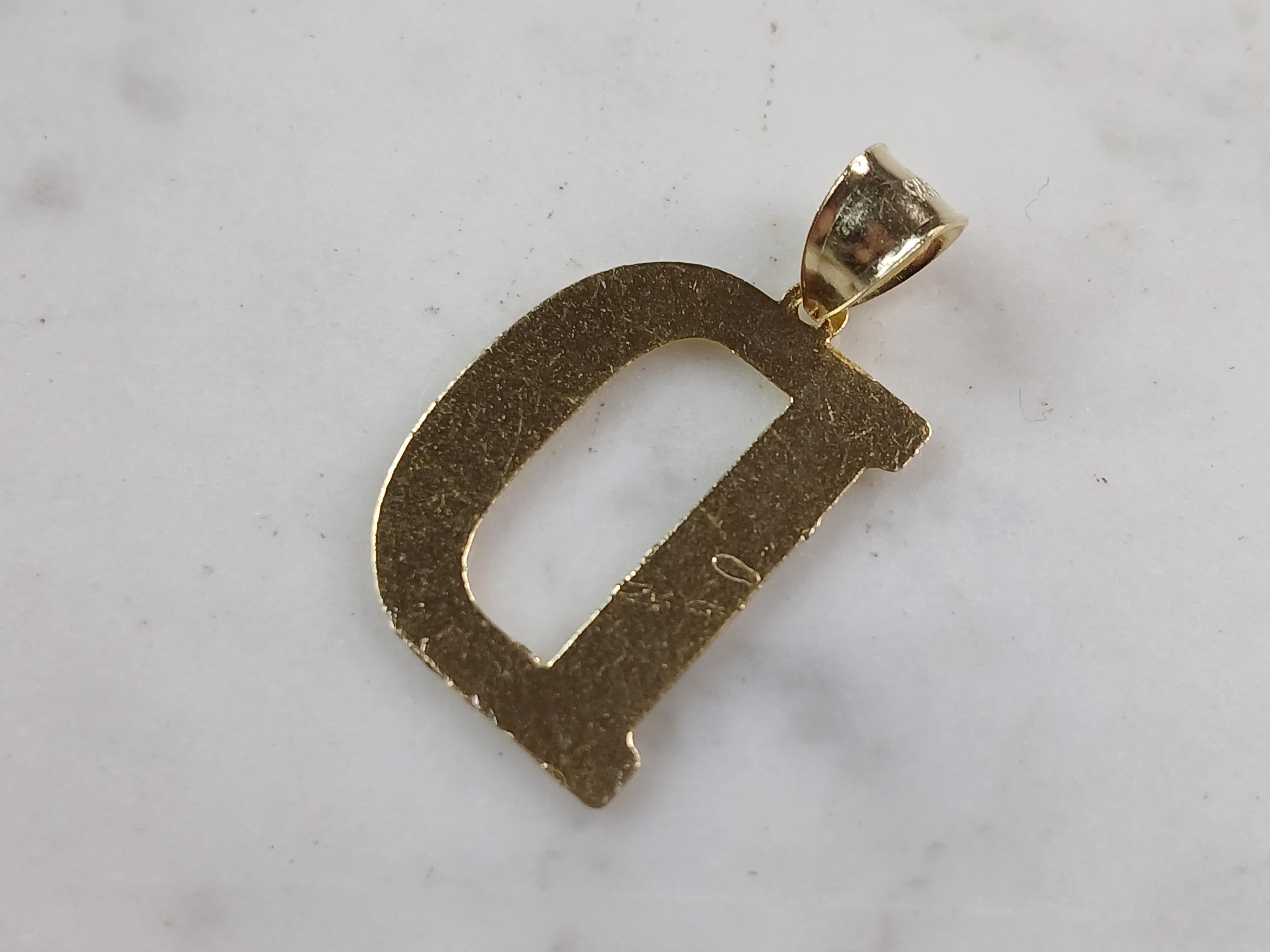 A WOMENS STERLING SILVER GOLD TONE INITIAL LETTER "D" PENDANT. PENDANT WEIGHS 2.0g AND MEASURES 1 1/8" LONG BY 5/8" WIDE. MAKES A GREAT GIFT FOR THAT SOMEONE SPECIAL. ANY QUESTIONS, PLEASE ASK. BE SURE TO CHECK OUT OUR OTHER ITEMS FOR SALE.