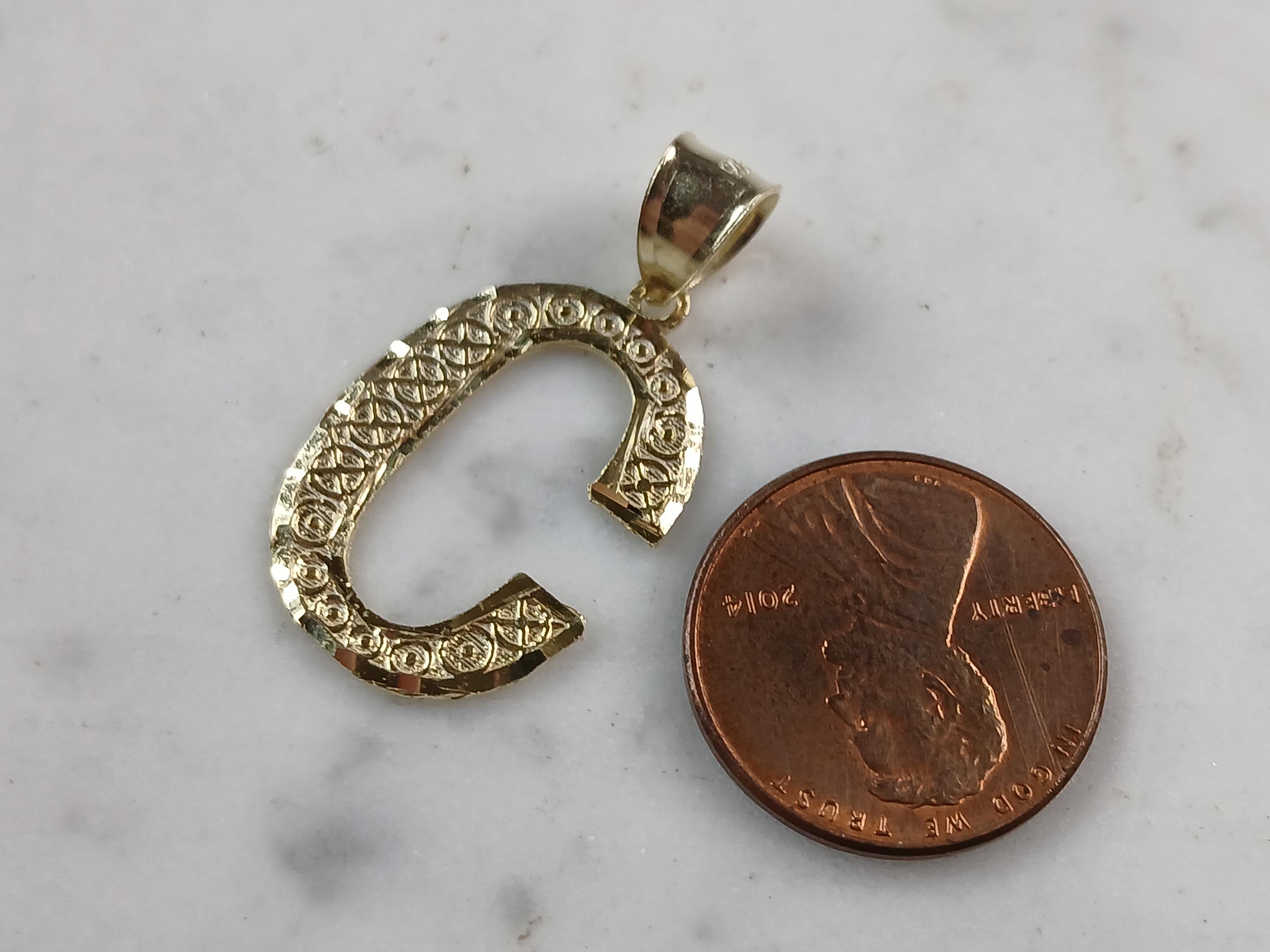 A WOMENS STERLING SILVER GOLD TONE INITIAL LETTER "C" PENDANT. PENDANT WEIGHS 1.1g AND MEASURES 1 1/8" LONG BY 5/8" WIDE. MAKES A GREAT GIFT FOR THAT SOMEONE SPECIAL. ANY QUESTIONS, PLEASE ASK. BE SURE TO CHECK OUT OUR OTHER ITEMS FOR SALE.