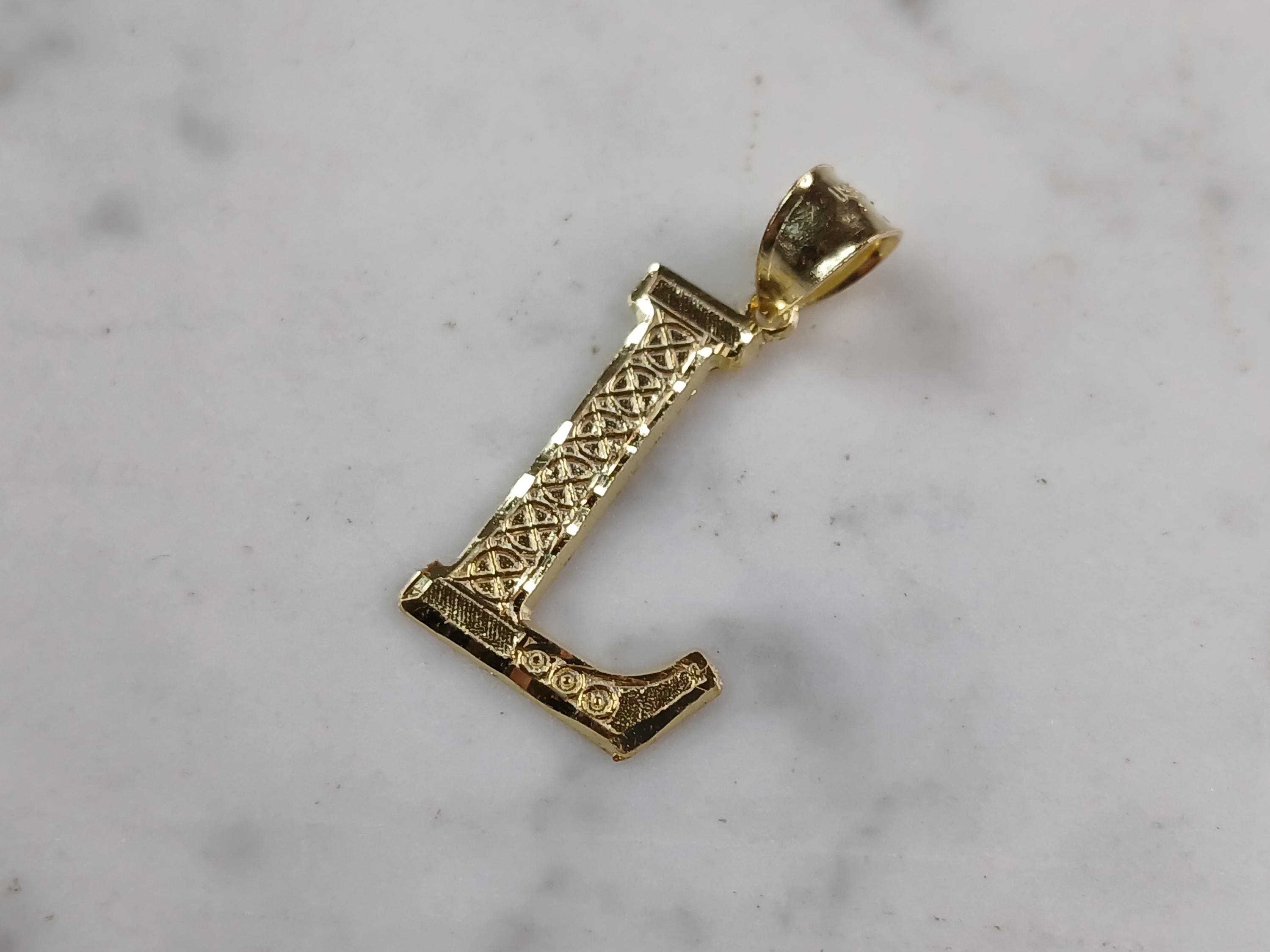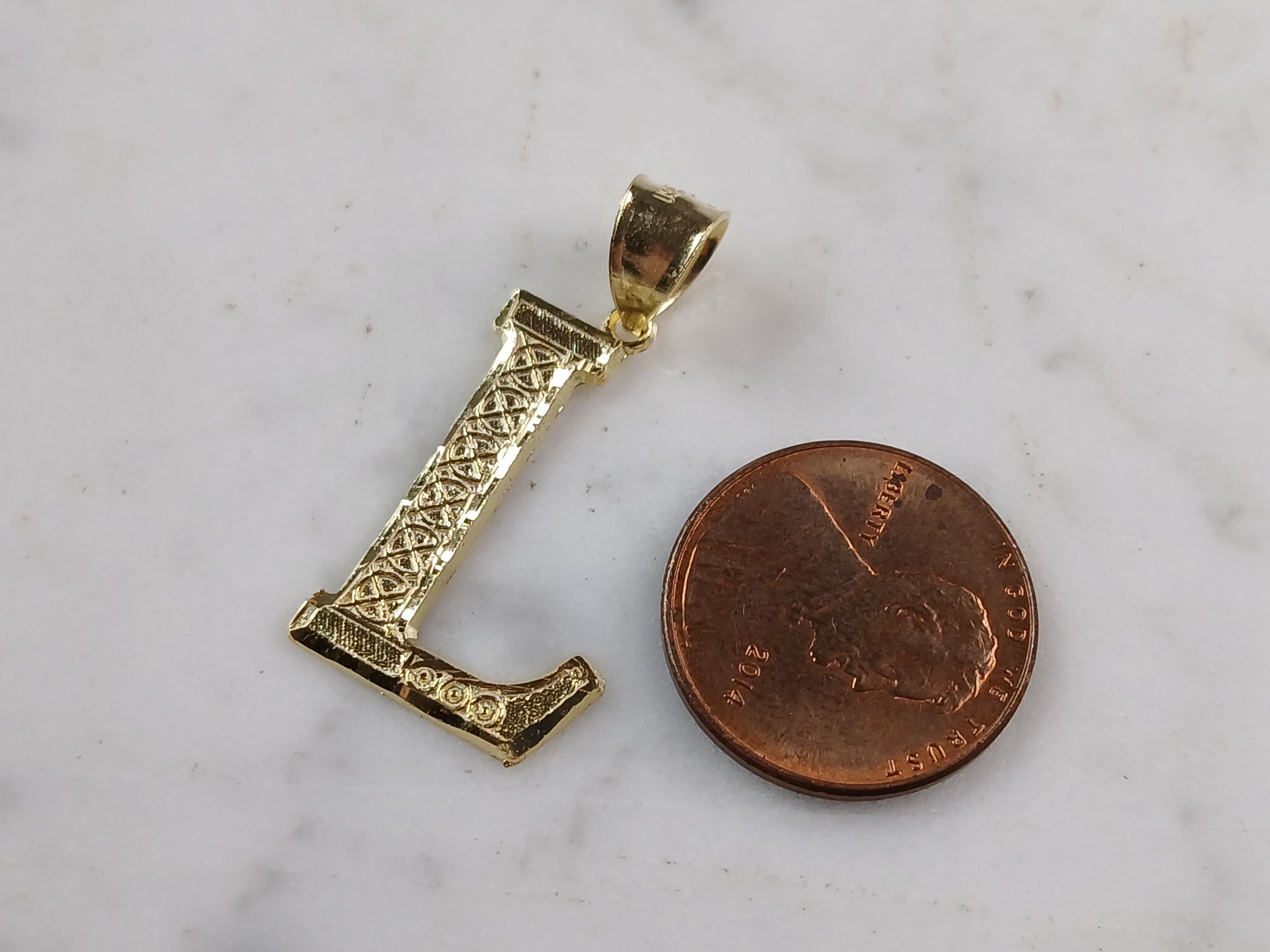 A WOMENS STERLING SILVER GOLD TONE INITIAL LETTER "L" PENDANT. PENDANT WEIGHS 1.4g AND MEASURES 1 1/8" LONG BY 5/8" WIDE. MAKES A GREAT GIFT FOR THAT SOMEONE SPECIAL. ANY QUESTIONS, PLEASE ASK. BE SURE TO CHECK OUT OUR OTHER ITEMS FOR SALE.