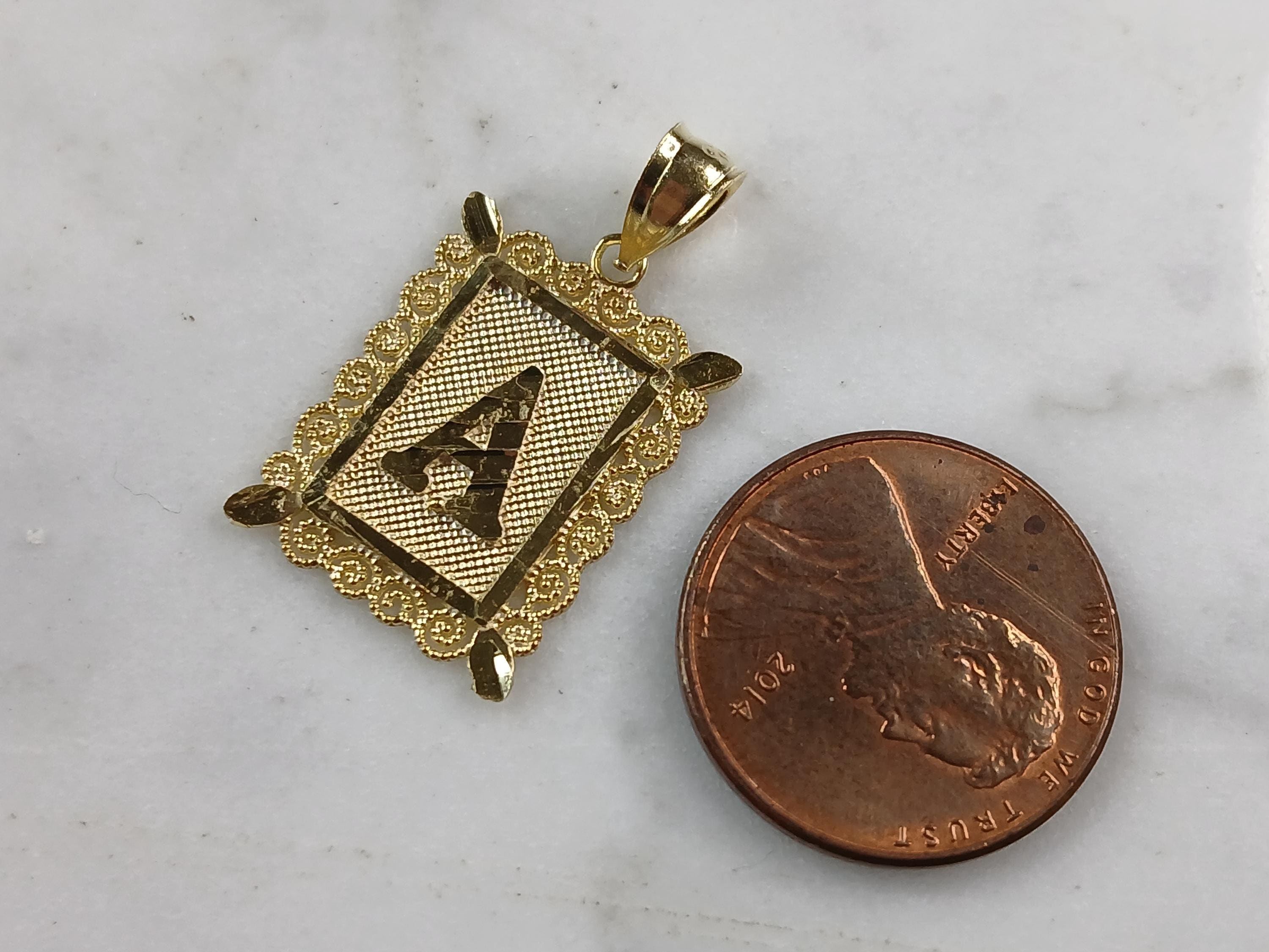 A WOMENS STERLING SILVER GOLD TONE INITIAL LETTER "A" PENDANT. PENDANT WEIGHS 1.3g AND MEASURES 1" LONG BY 5/8" WIDE. MAKES A GREAT GIFT FOR THAT SOMEONE SPECIAL. ANY QUESTIONS, PLEASE ASK. BE SURE TO CHECK OUT OUR OTHER ITEMS FOR SALE.