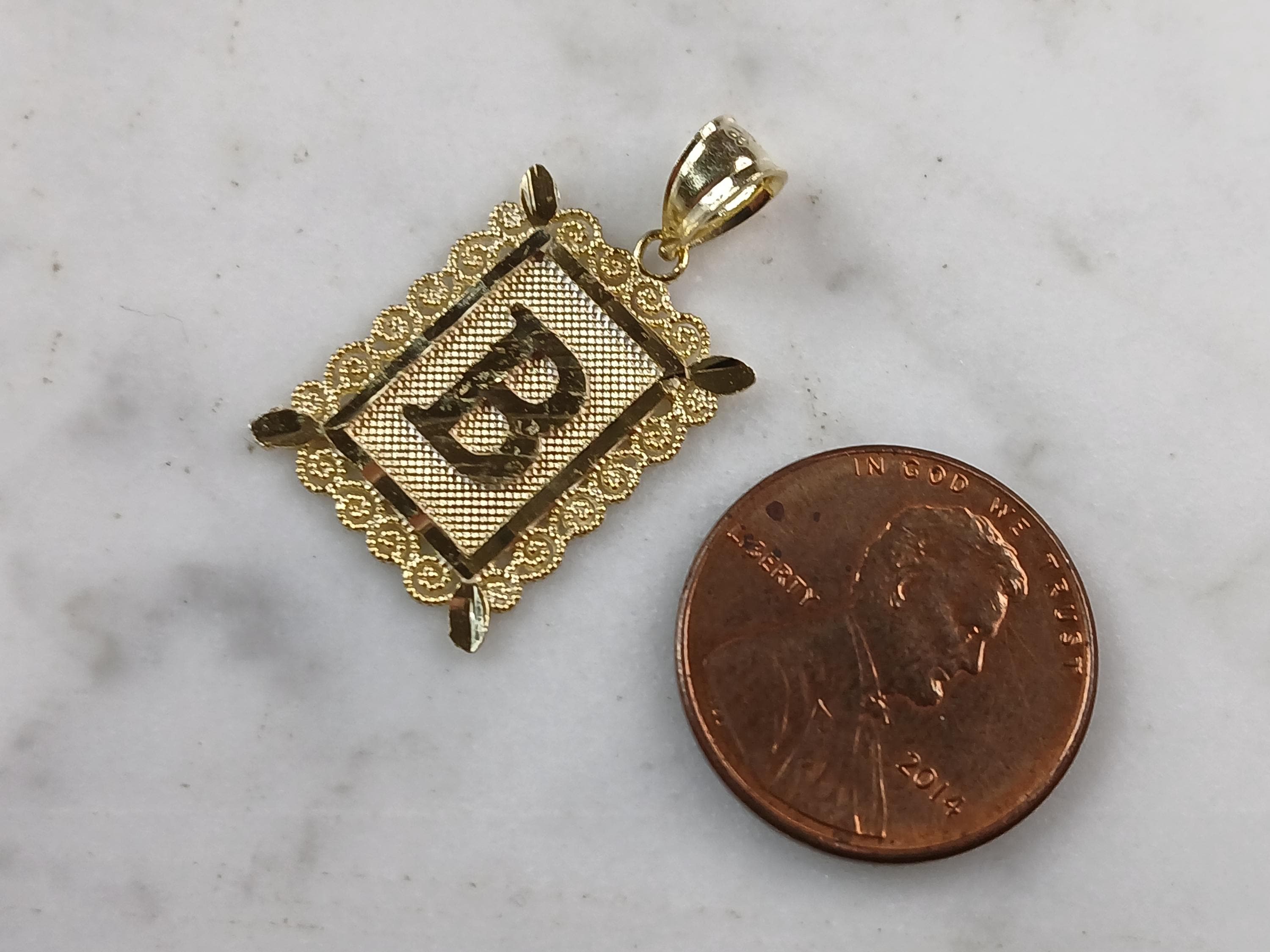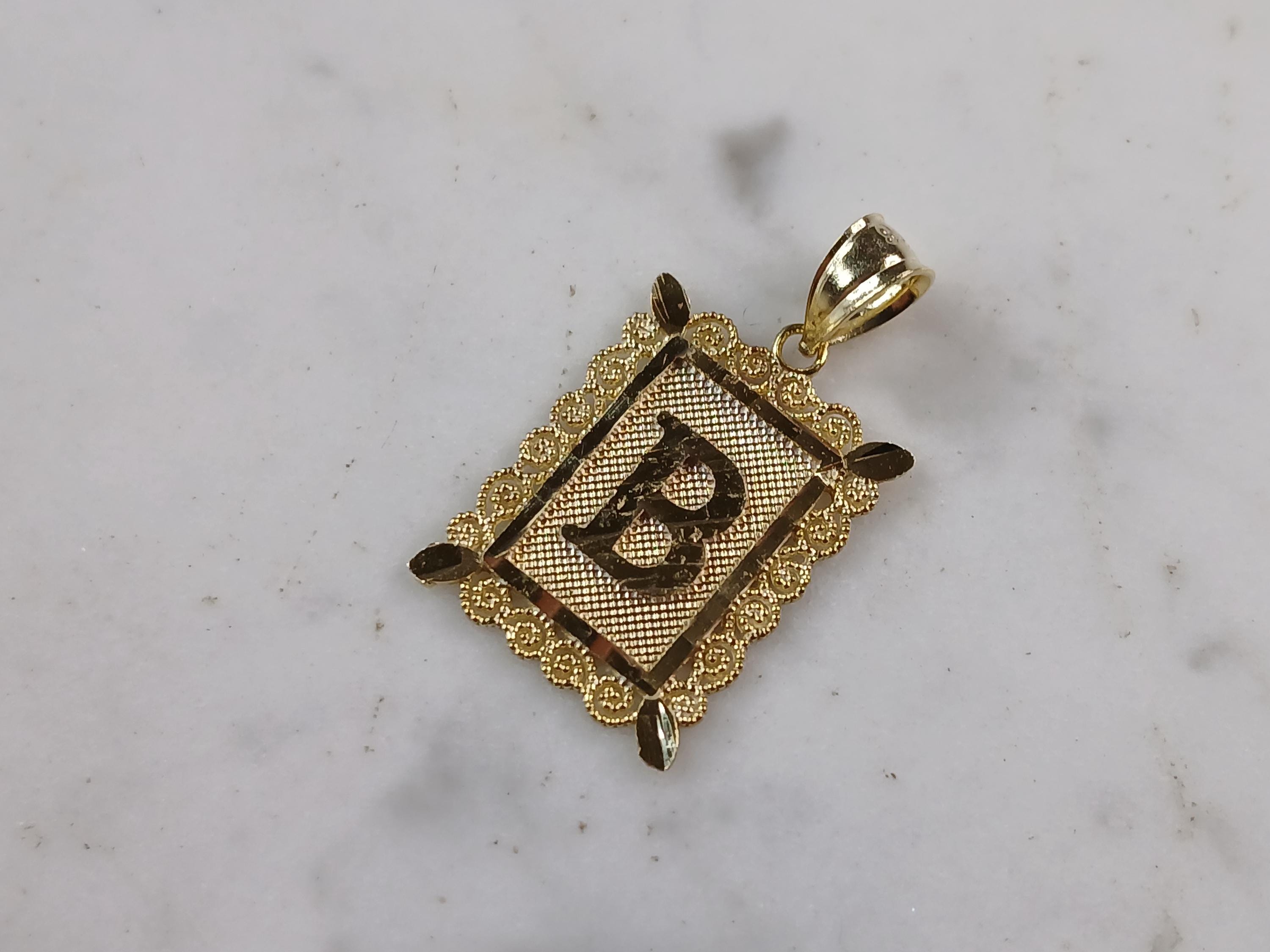 A WOMENS STERLING SILVER GOLD TONE INITIAL LETTER "B" PENDANT. PENDANT WEIGHS 1.3g AND MEASURES 1" LONG BY 5/8" WIDE. MAKES A GREAT GIFT FOR THAT SOMEONE SPECIAL. ANY QUESTIONS, PLEASE ASK. BE SURE TO CHECK OUT OUR OTHER ITEMS FOR SALE.