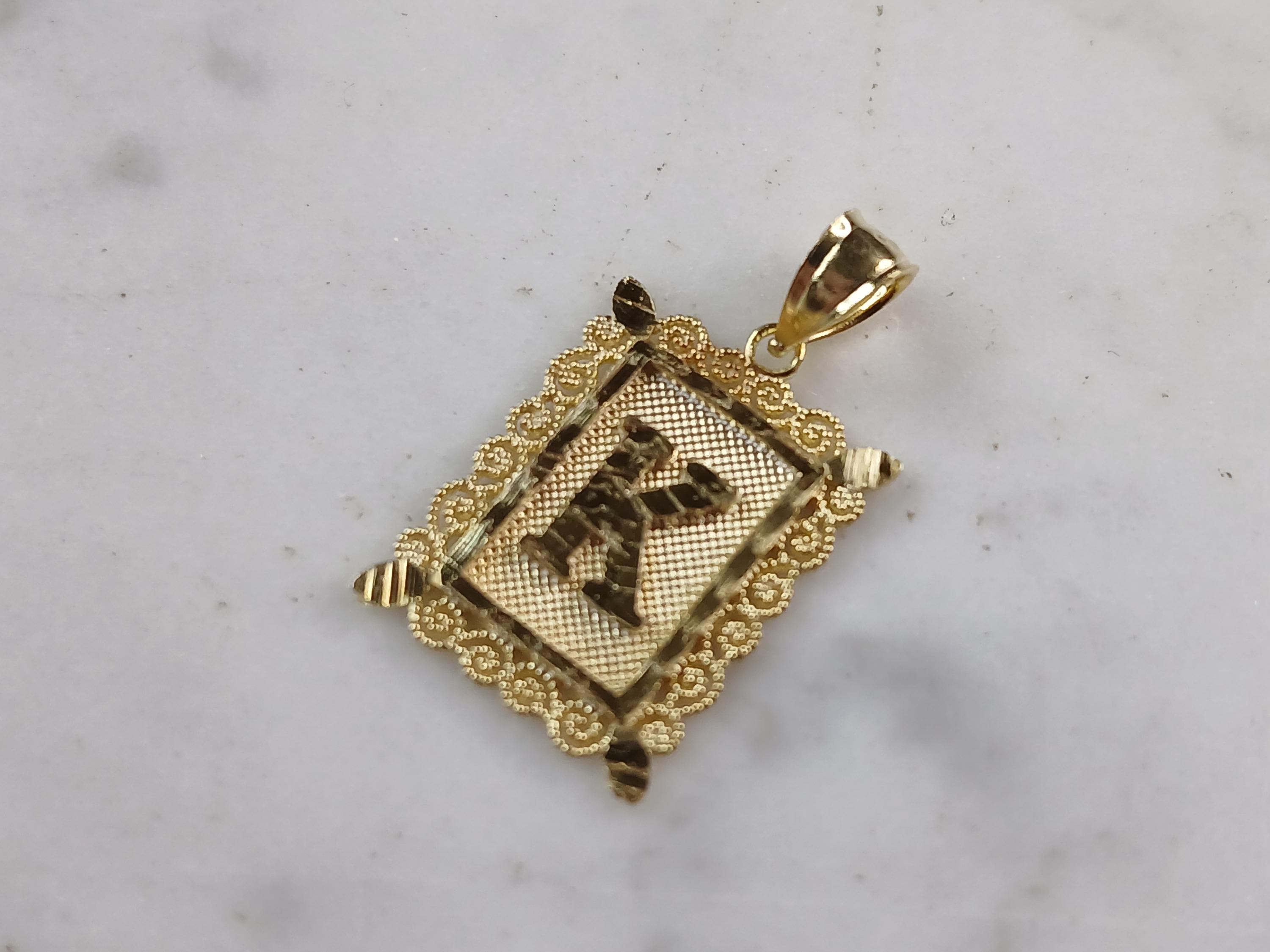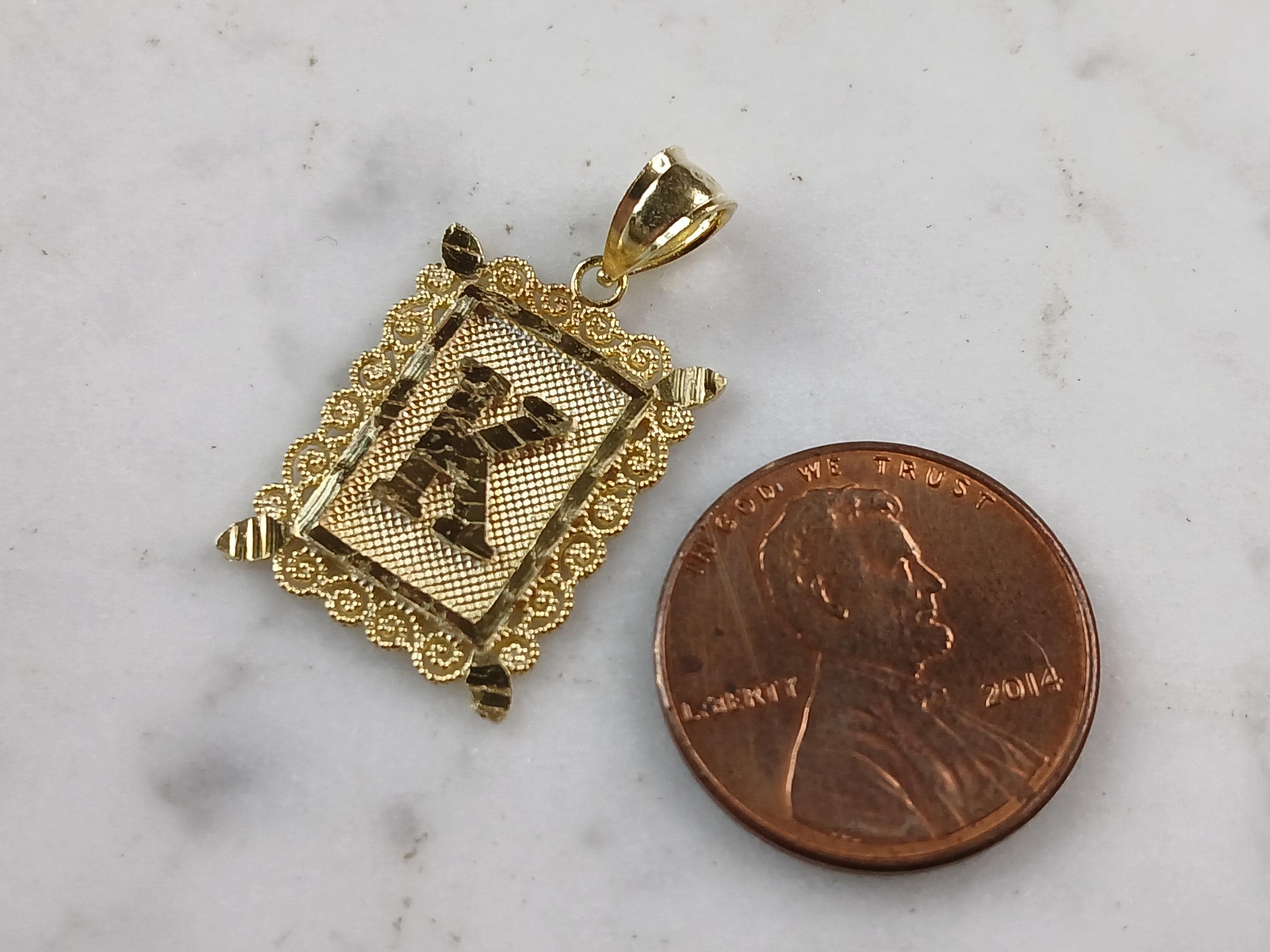 A WOMENS STERLING SILVER GOLD TONE INITIAL LETTER "K" PENDANT. PENDANT WEIGHS 1.3g AND MEASURES 1" LONG BY 5/8" WIDE. MAKES A GREAT GIFT FOR THAT SOMEONE SPECIAL. ANY QUESTIONS, PLEASE ASK. BE SURE TO CHECK OUT OUR OTHER ITEMS FOR SALE.