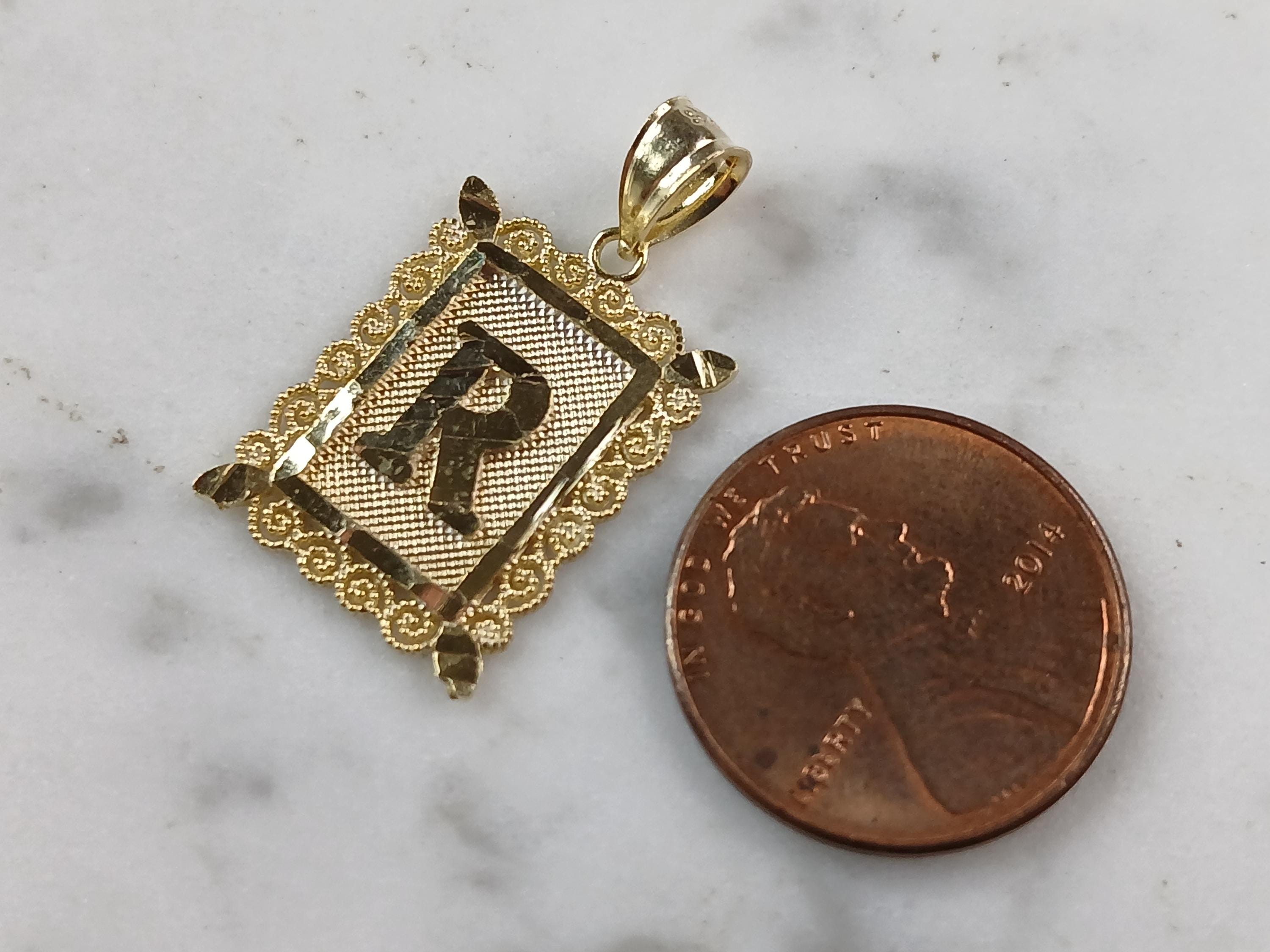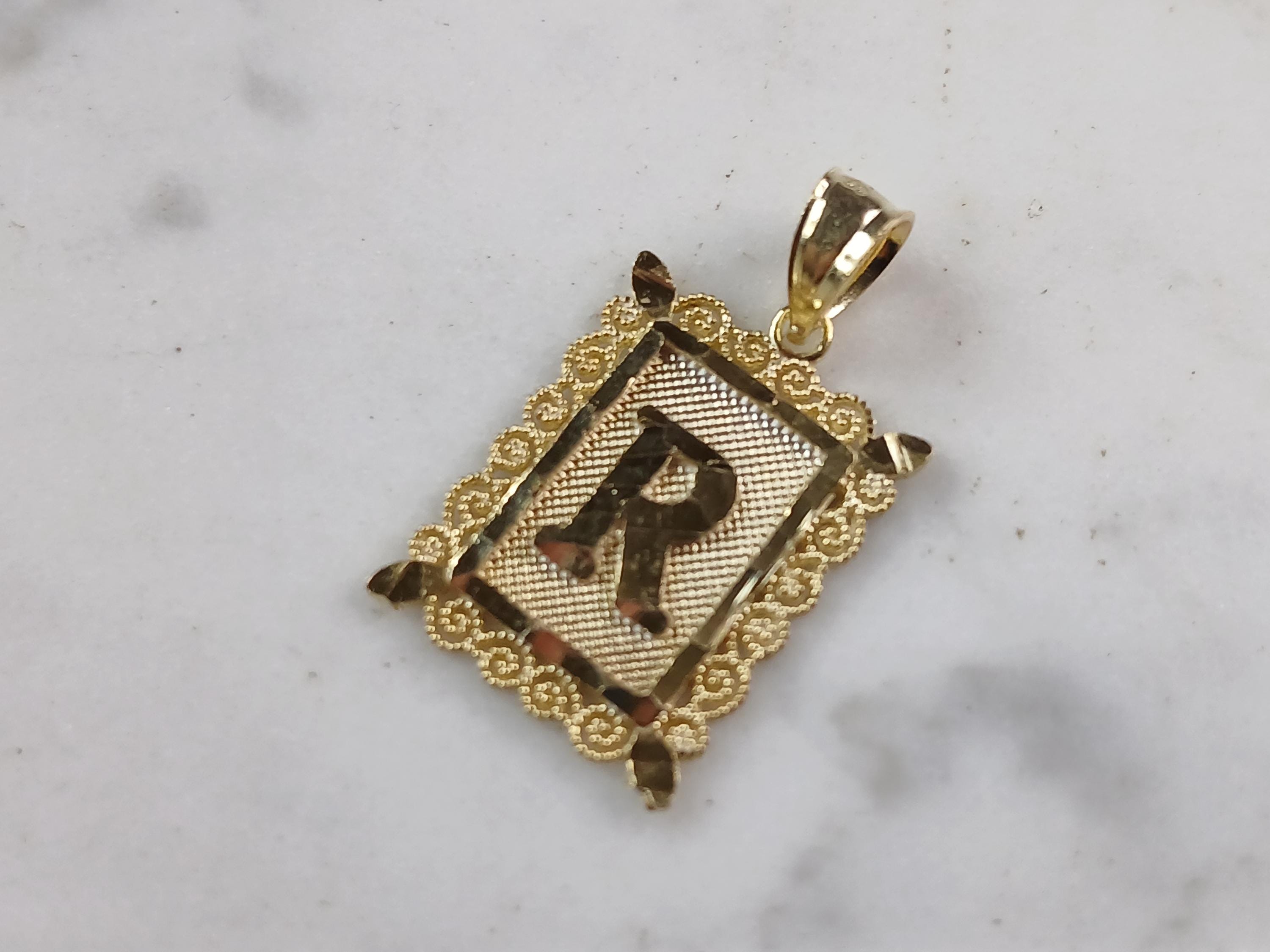 A WOMENS STERLING SILVER GOLD TONE INITIAL LETTER "R" PENDANT. PENDANT WEIGHS 1.3g AND MEASURES 1" LONG BY 5/8" WIDE. MAKES A GREAT GIFT FOR THAT SOMEONE SPECIAL. ANY QUESTIONS, PLEASE ASK. BE SURE TO CHECK OUT OUR OTHER ITEMS FOR SALE.