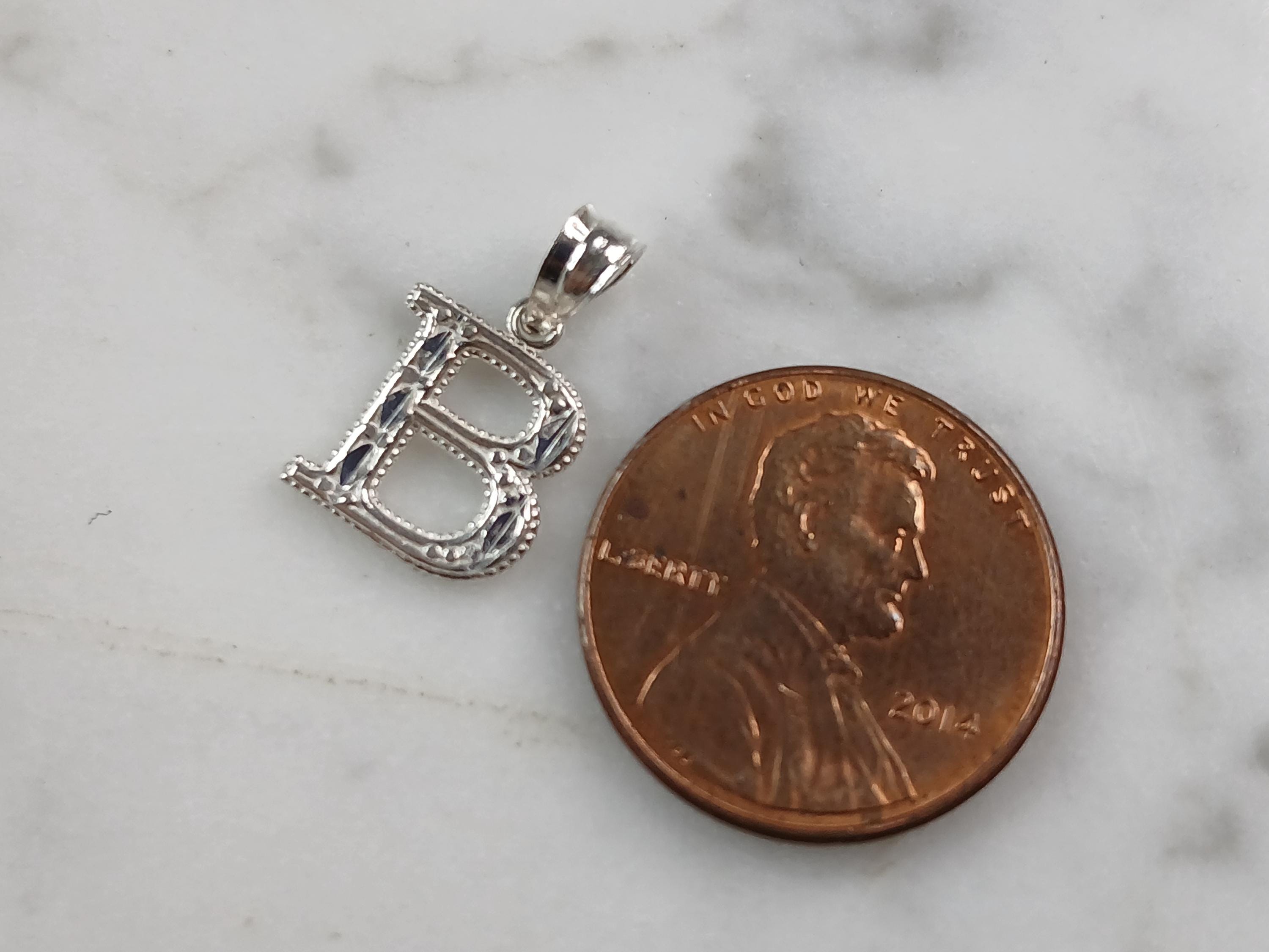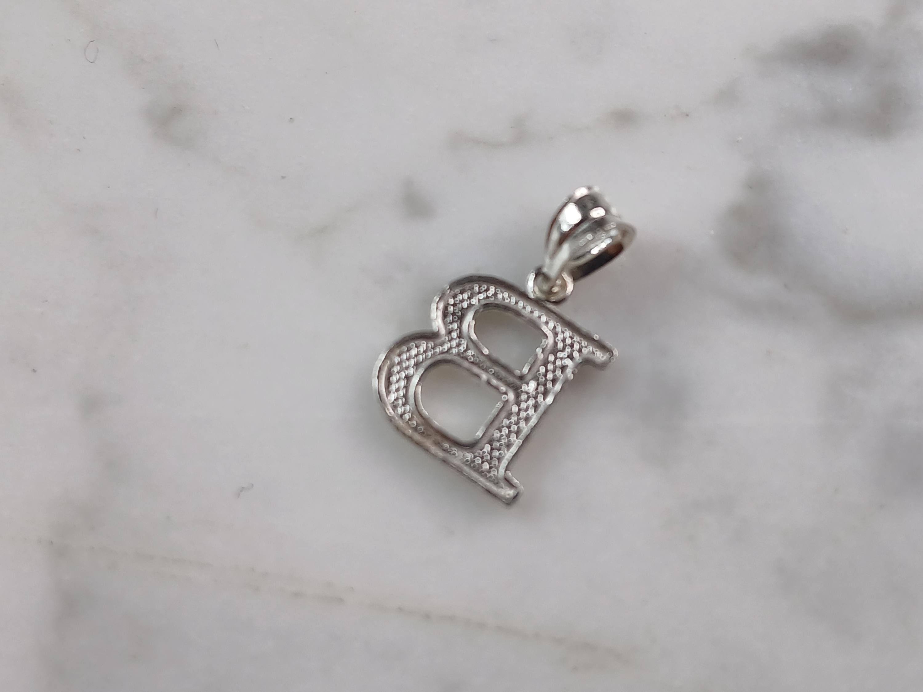 A WOMENS STERLING SILVER INITIAL LETTER "B" PENDANT. PENDANT WEIGHS 0.3g AND MEASURES 5/8" LONG BY 3/8" WIDE. MAKES A GREAT GIFT FOR THAT SOMEONE SPECIAL. ANY QUESTIONS, PLEASE ASK. BE SURE TO CHECK OUT OUR OTHER ITEMS FOR SALE.
