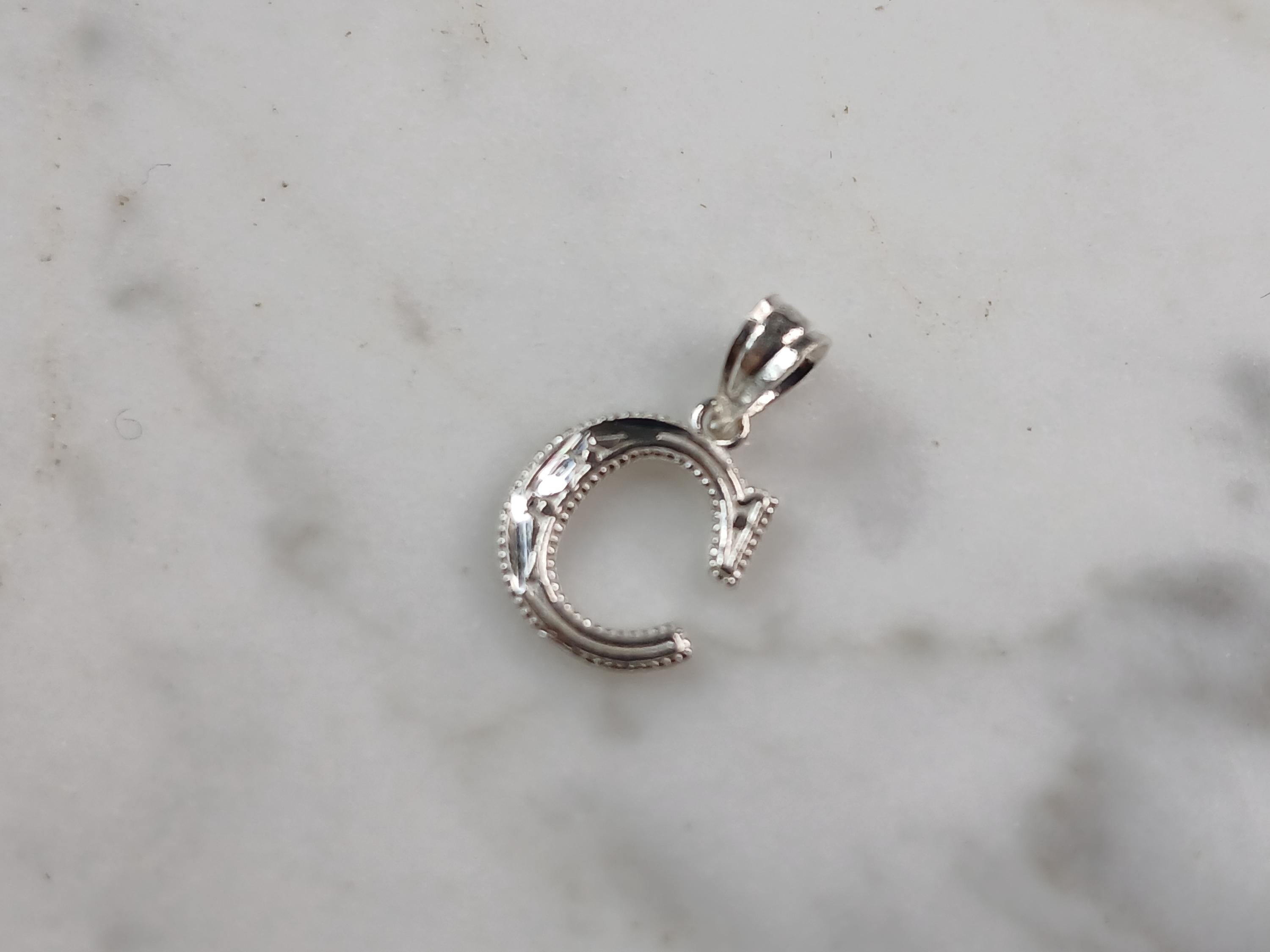 A WOMENS STERLING SILVER INITIAL LETTER "C" PENDANT. PENDANT WEIGHS 0.3g AND MEASURES 5/8" LONG BY 3/8" WIDE. MAKES A GREAT GIFT FOR THAT SOMEONE SPECIAL. ANY QUESTIONS, PLEASE ASK. BE SURE TO CHECK OUT OUR OTHER ITEMS FOR SALE.