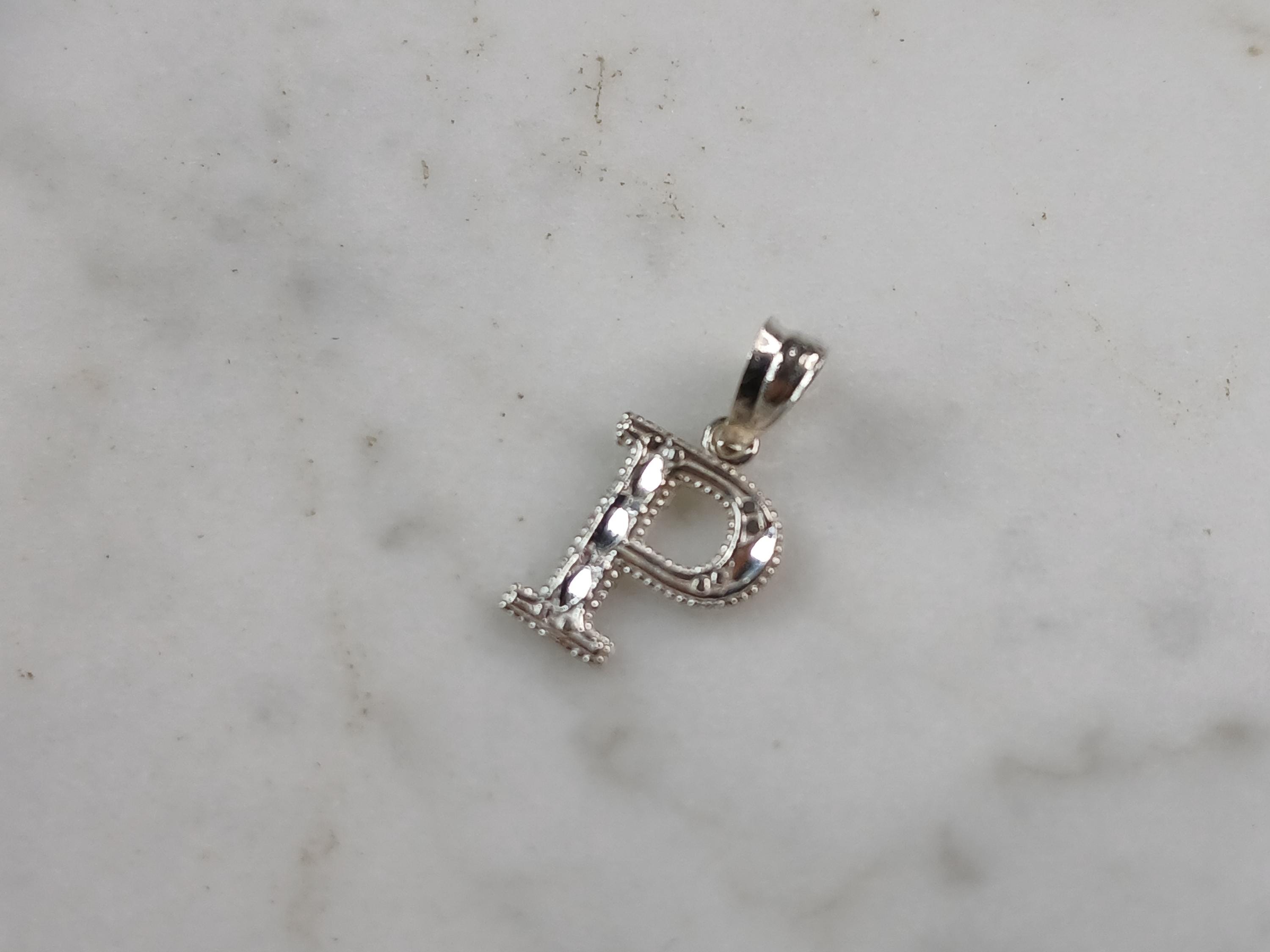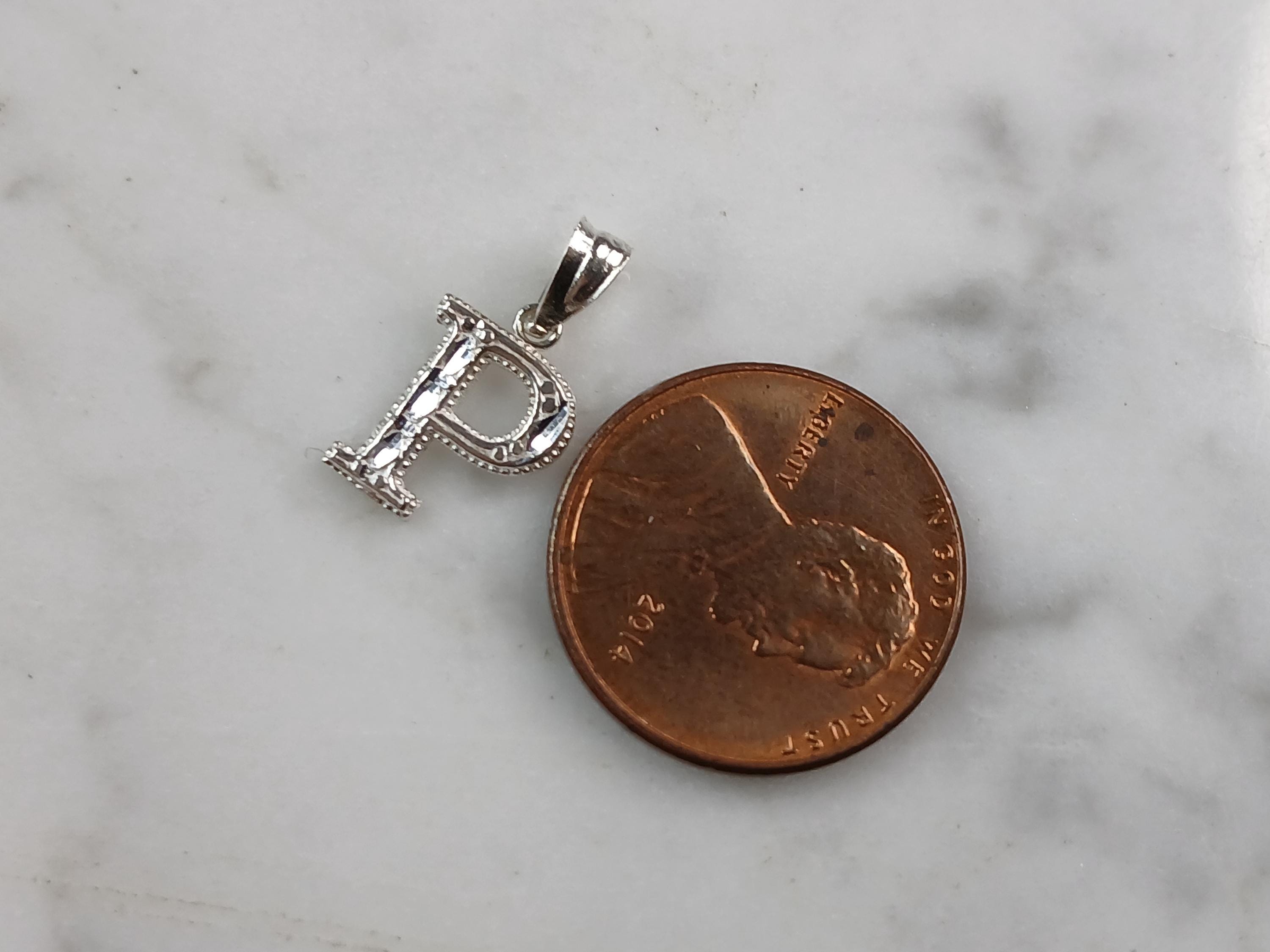 A WOMENS STERLING SILVER INITIAL LETTER "P" PENDANT. PENDANT WEIGHS 0.3g AND MEASURES 5/8" LONG BY 3/8" WIDE. MAKES A GREAT GIFT FOR THAT SOMEONE SPECIAL. ANY QUESTIONS, PLEASE ASK. BE SURE TO CHECK OUT OUR OTHER ITEMS FOR SALE.