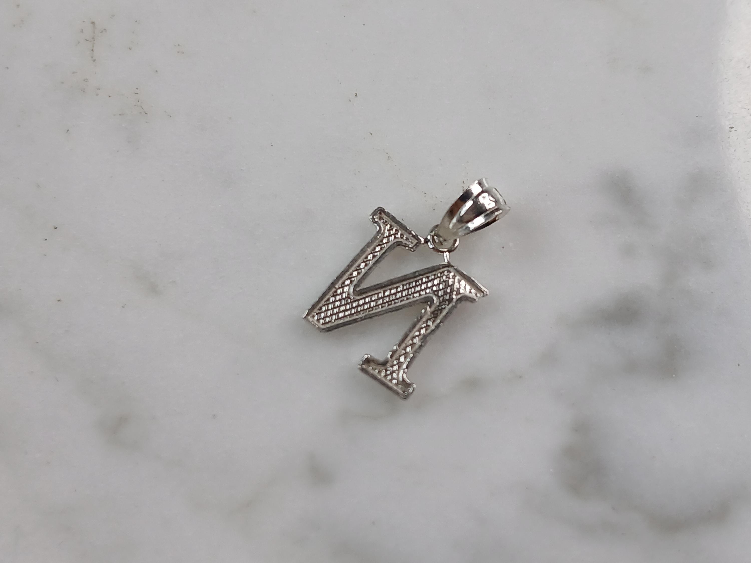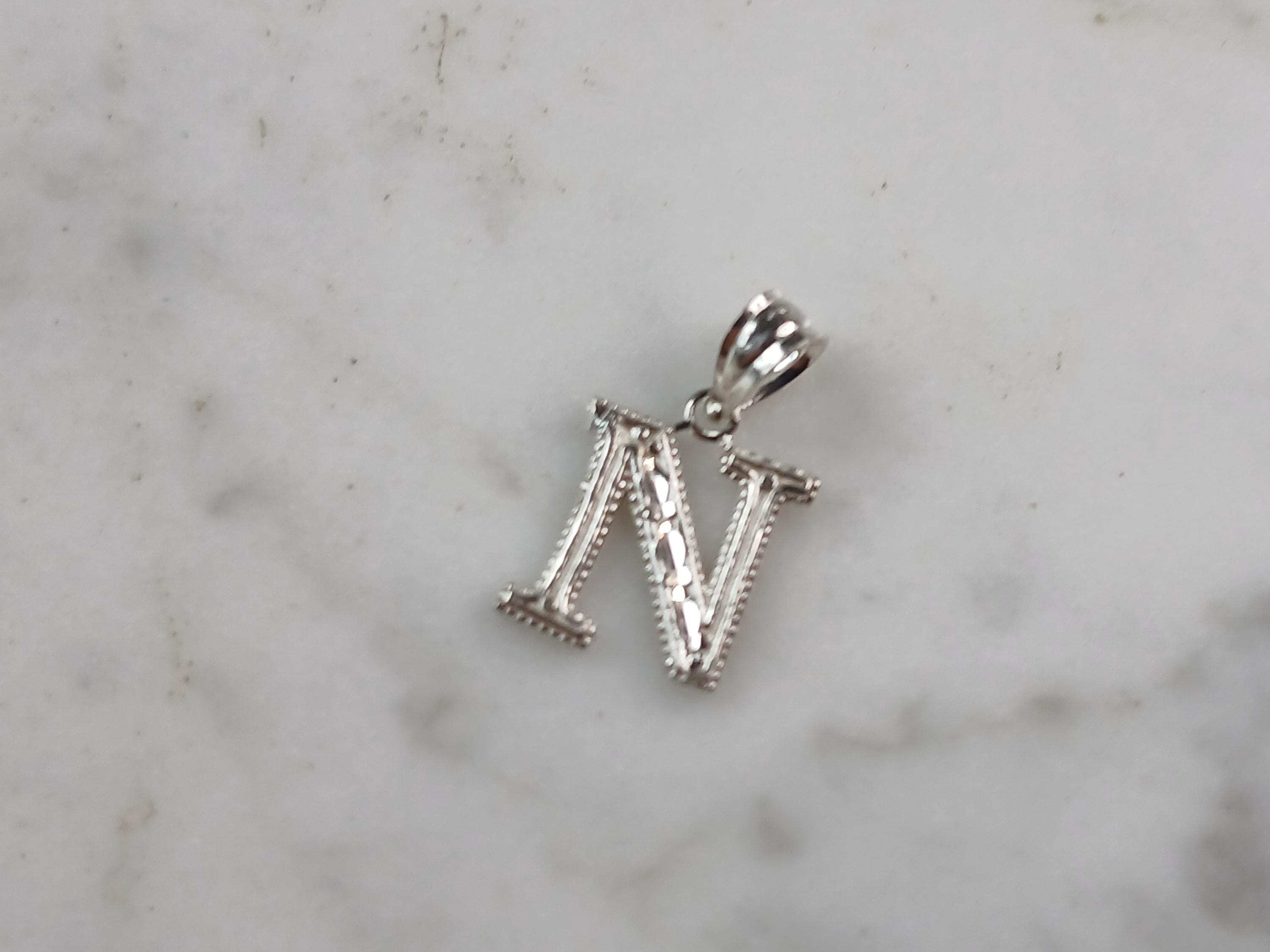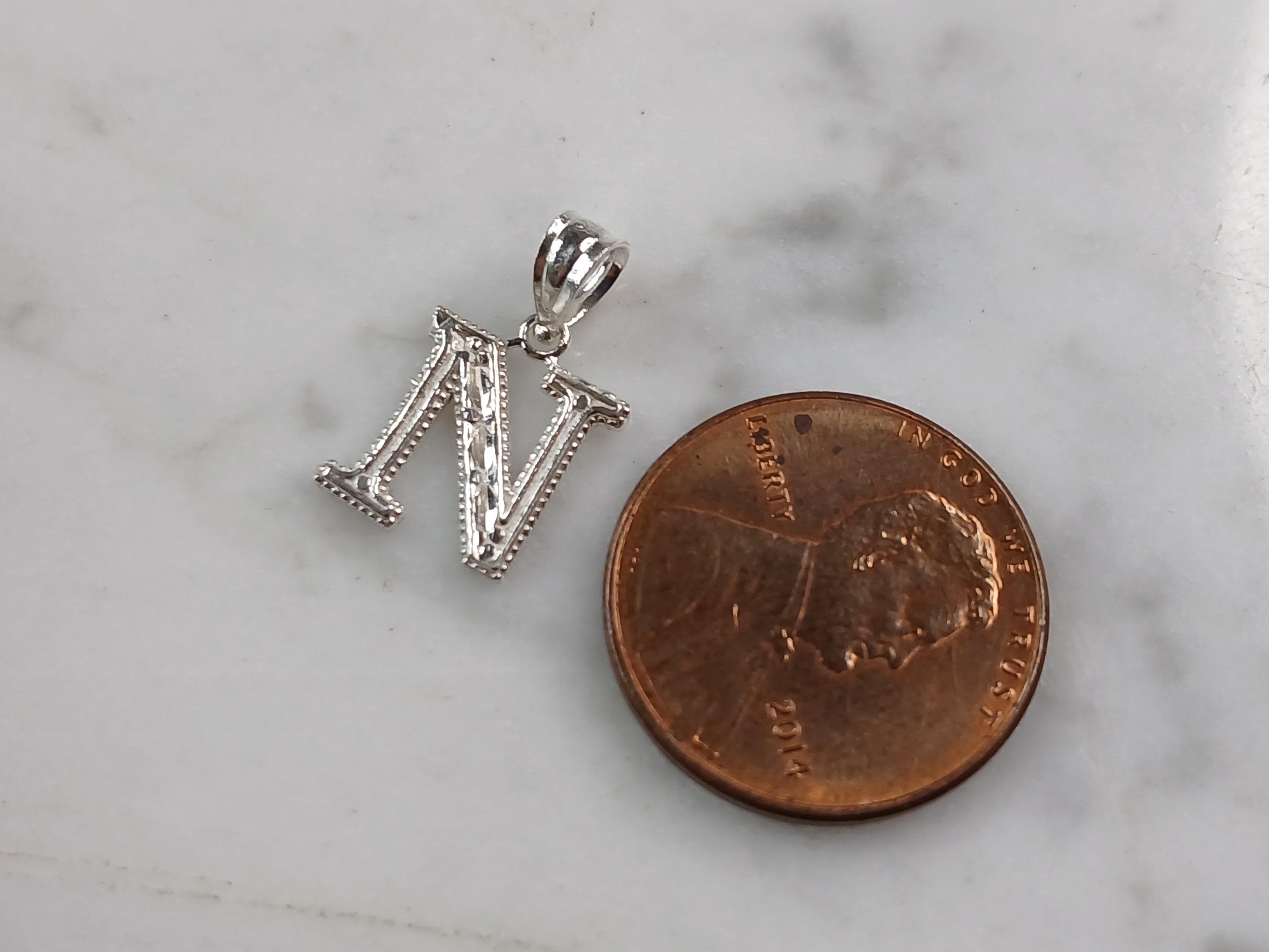 A WOMENS STERLING SILVER INITIAL LETTER "N" PENDANT. PENDANT WEIGHS 0.3g AND MEASURES 5/8" LONG BY 3/8" WIDE. MAKES A GREAT GIFT FOR THAT SOMEONE SPECIAL. ANY QUESTIONS, PLEASE ASK. BE SURE TO CHECK OUT OUR OTHER ITEMS FOR SALE.