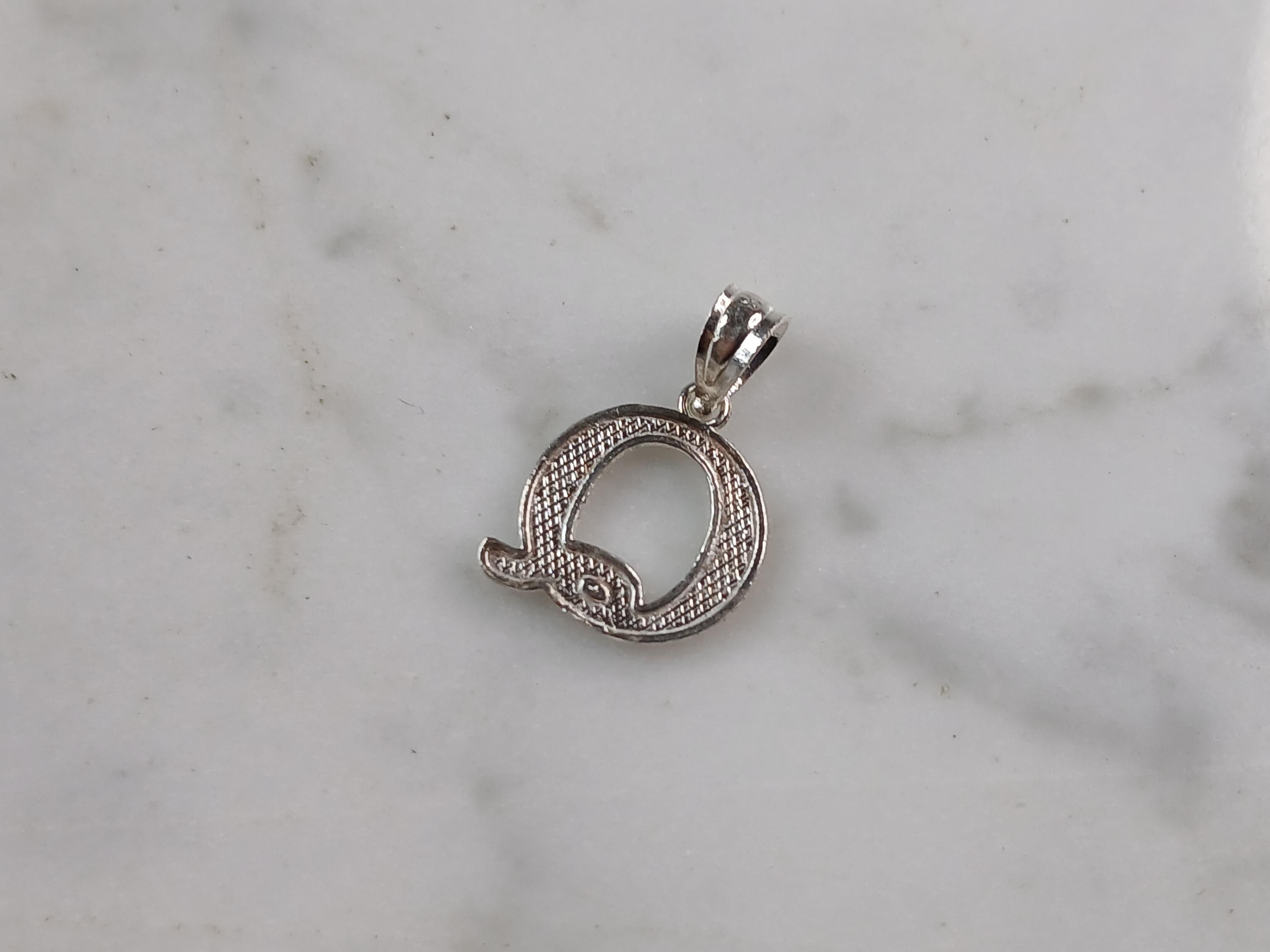 A WOMENS STERLING SILVER INITIAL LETTER "Q" PENDANT. PENDANT WEIGHS 0.3g AND MEASURES 5/8" LONG BY 3/8" WIDE. MAKES A GREAT GIFT FOR THAT SOMEONE SPECIAL. ANY QUESTIONS, PLEASE ASK. BE SURE TO CHECK OUT OUR OTHER ITEMS FOR SALE.