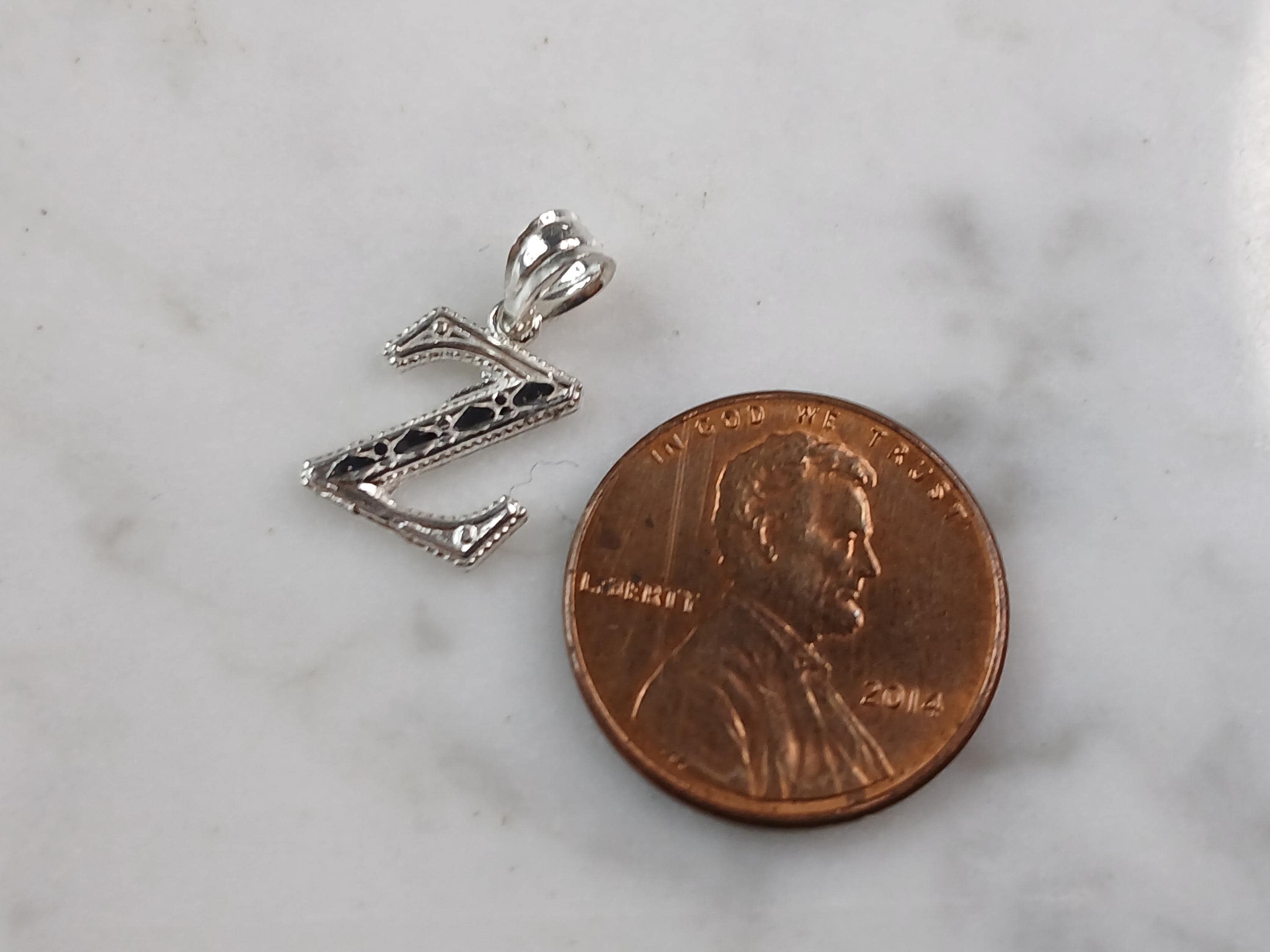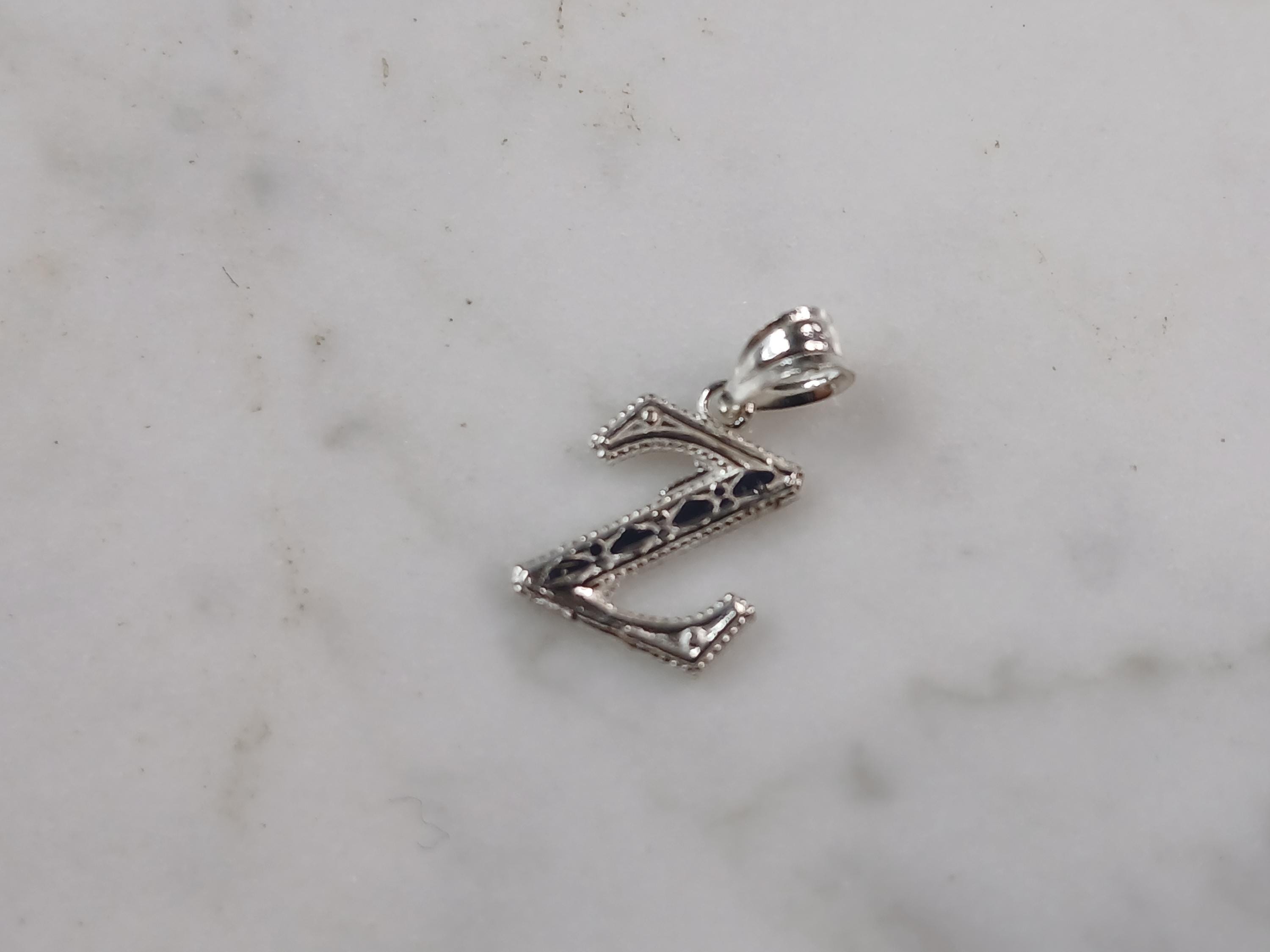 A WOMENS STERLING SILVER INITIAL LETTER "Z" PENDANT. PENDANT WEIGHS 0.3g AND MEASURES 5/8" LONG BY 3/8" WIDE. MAKES A GREAT GIFT FOR THAT SOMEONE SPECIAL. ANY QUESTIONS, PLEASE ASK. BE SURE TO CHECK OUT OUR OTHER ITEMS FOR SALE.