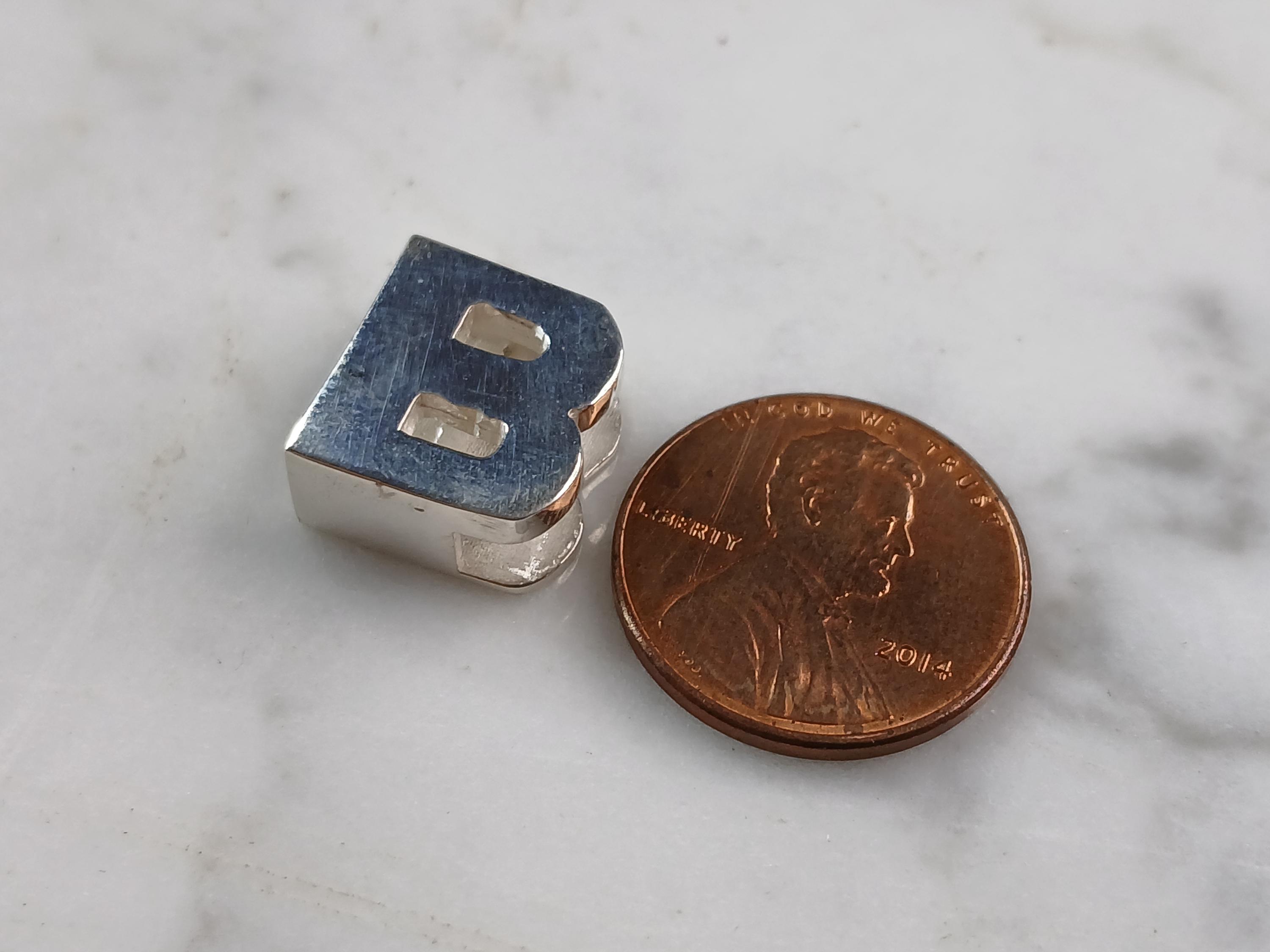 A WOMENS STERLING SILVER INITIAL BLOCK LETTER "B" PENDANT. PENDANT WEIGHS 4.6g AND MEASURES 1/2" LONG, BY 1/2" WIDE, BY 1/4" THICK. MAKES A GREAT GIFT FOR THAT SOMEONE SPECIAL. ANY QUESTIONS, PLEASE ASK. BE SURE TO CHECK OUT OUR OTHER ITEMS FOR SALE.