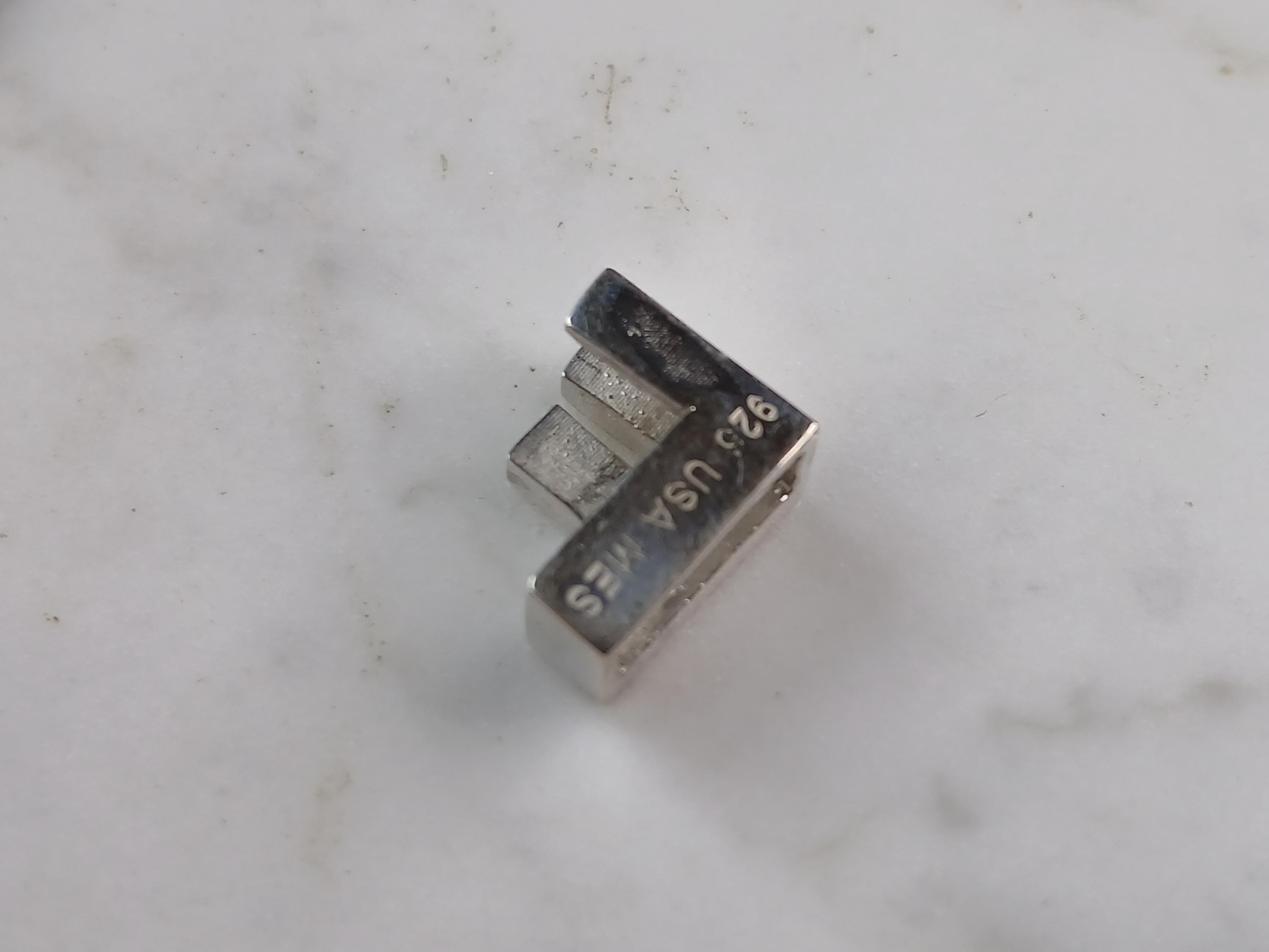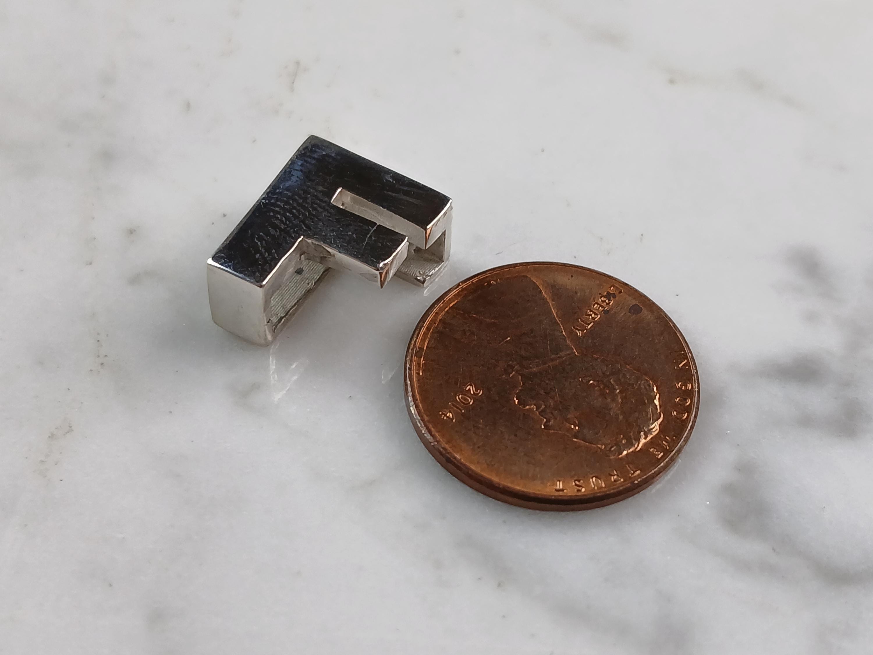A WOMENS STERLING SILVER INITIAL BLOCK LETTER "F" PENDANT. PENDANT WEIGHS 3.5g AND MEASURES 1/2" LONG, BY 3/8" WIDE, BY 1/4" THICK. MAKES A GREAT GIFT FOR THAT SOMEONE SPECIAL. ANY QUESTIONS, PLEASE ASK. BE SURE TO CHECK OUT OUR OTHER ITEMS FOR SALE.
