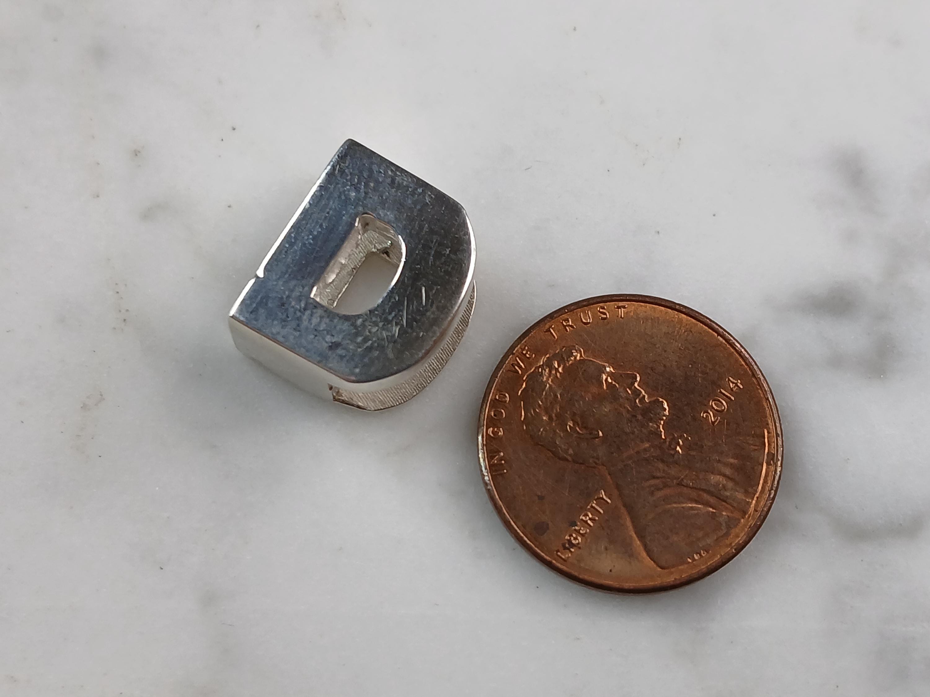A WOMENS STERLING SILVER INITIAL BLOCK LETTER "D" PENDANT. PENDANT WEIGHS 4.5g AND MEASURES 1/2" LONG, BY 1/2" WIDE, BY 1/4" THICK. MAKES A GREAT GIFT FOR THAT SOMEONE SPECIAL. ANY QUESTIONS, PLEASE ASK. BE SURE TO CHECK OUT OUR OTHER ITEMS FOR SALE.
