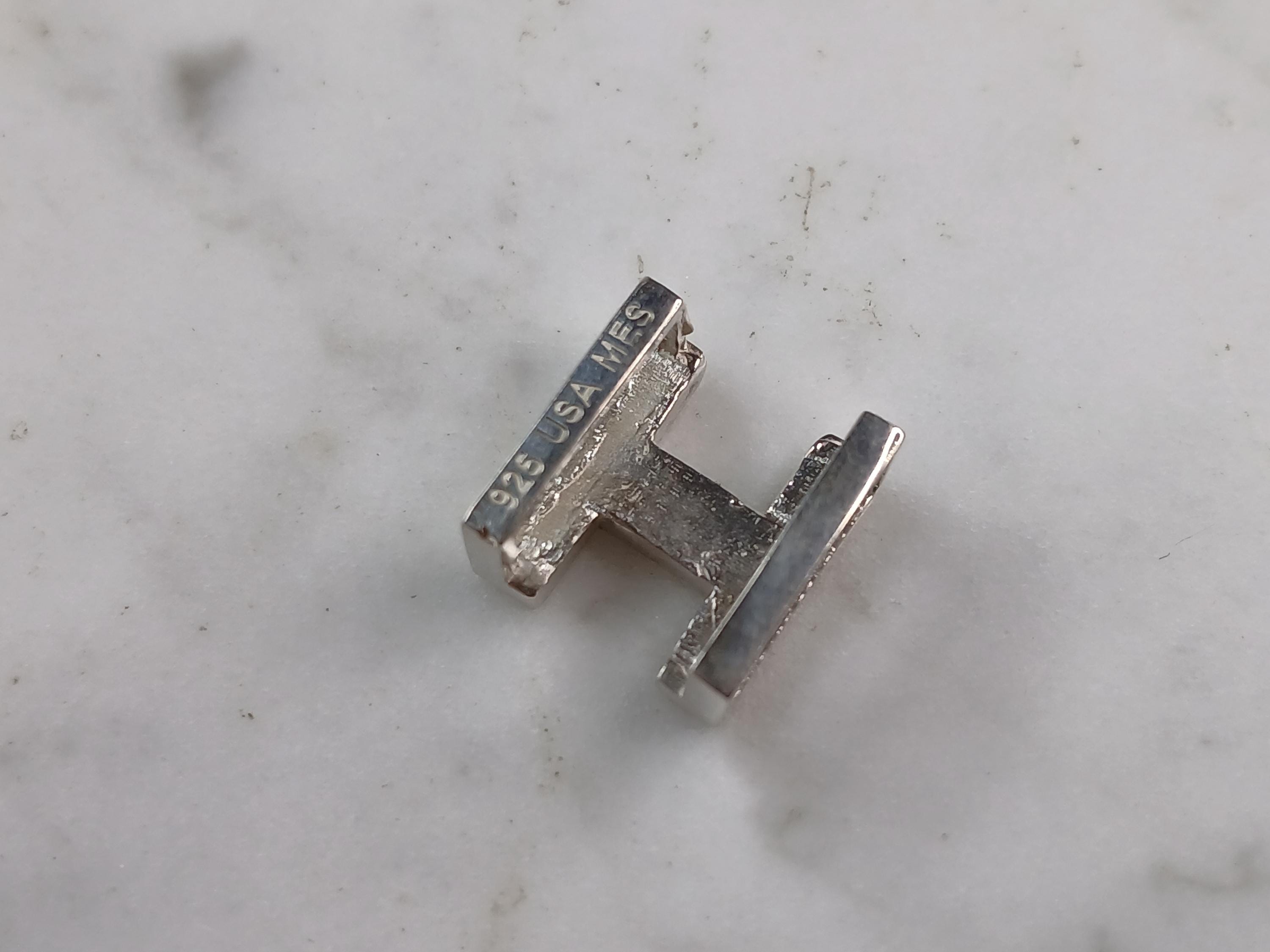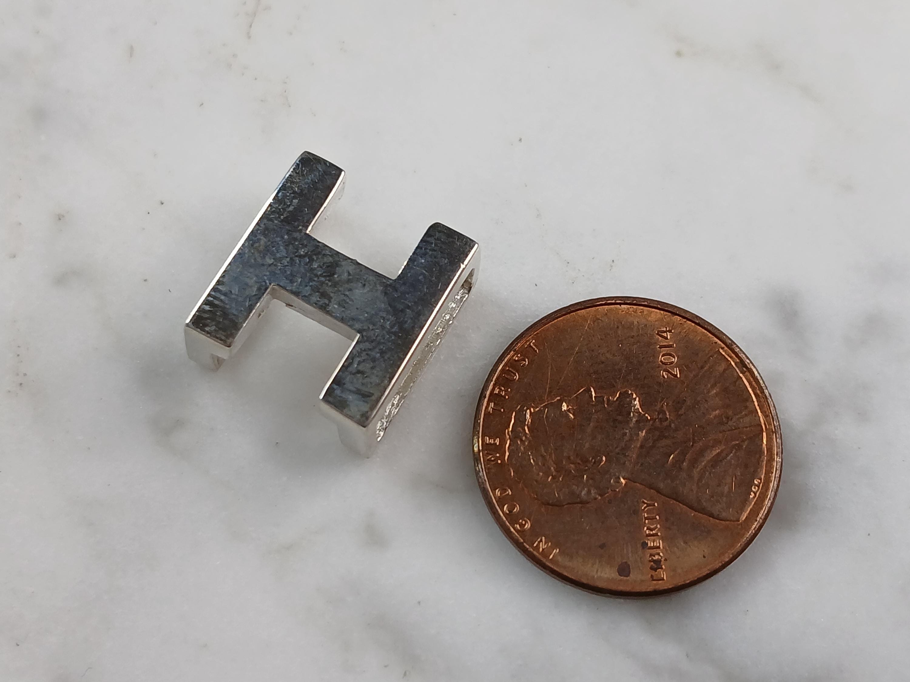 A WOMENS STERLING SILVER INITIAL BLOCK LETTER "H" PENDANT. PENDANT WEIGHS 3.3g AND MEASURES 1/2" LONG, BY 1/2" WIDE, BY 1/4" THICK. MAKES A GREAT GIFT FOR THAT SOMEONE SPECIAL. ANY QUESTIONS, PLEASE ASK. BE SURE TO CHECK OUT OUR OTHER ITEMS FOR SALE.