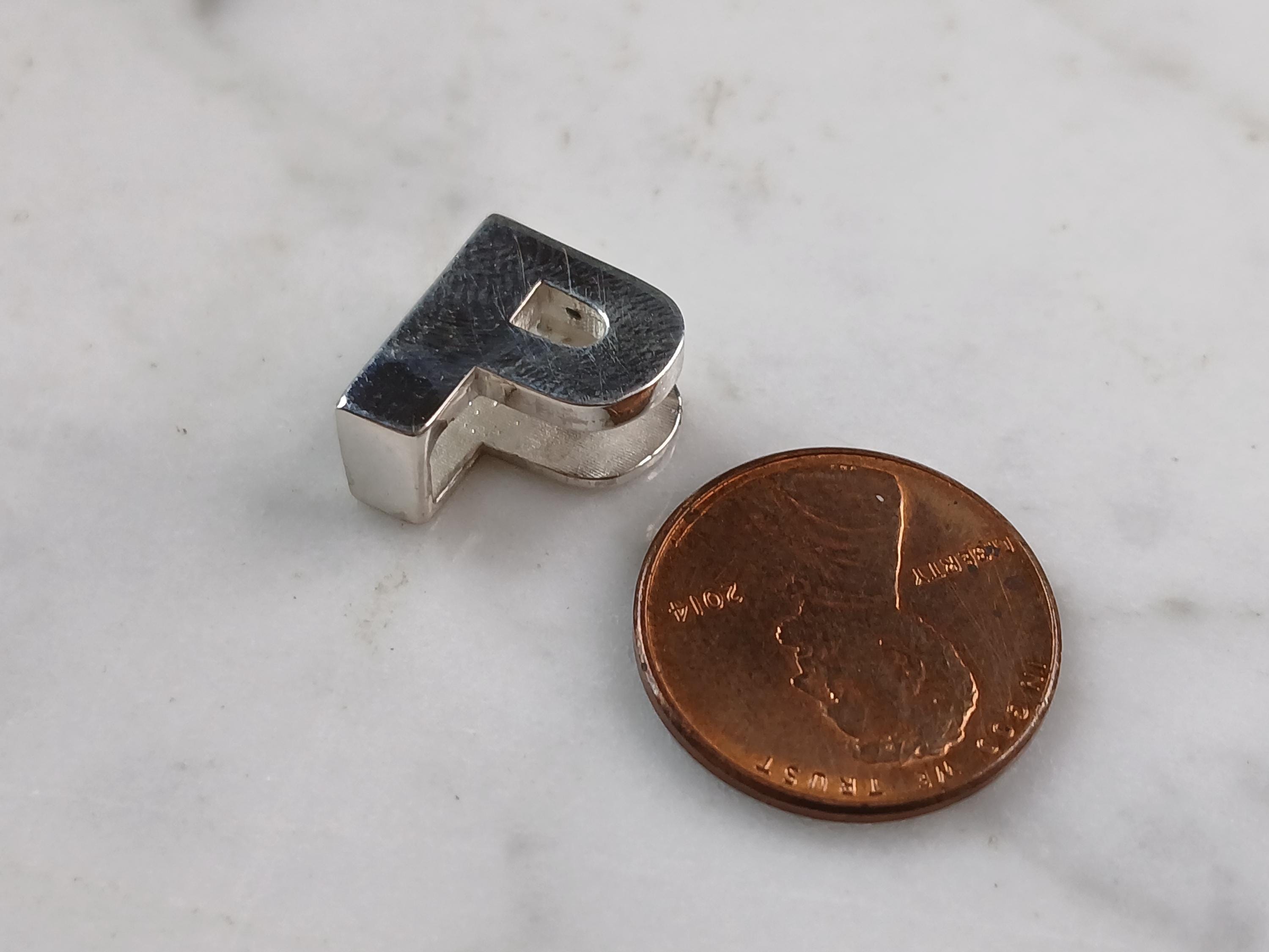 A WOMENS STERLING SILVER INITIAL BLOCK LETTER "P" PENDANT. PENDANT WEIGHS 3.9g AND MEASURES 1/2" LONG, BY 1/2" WIDE, BY 1/4" THICK. MAKES A GREAT GIFT FOR THAT SOMEONE SPECIAL. ANY QUESTIONS, PLEASE ASK. BE SURE TO CHECK OUT OUR OTHER ITEMS FOR SALE.