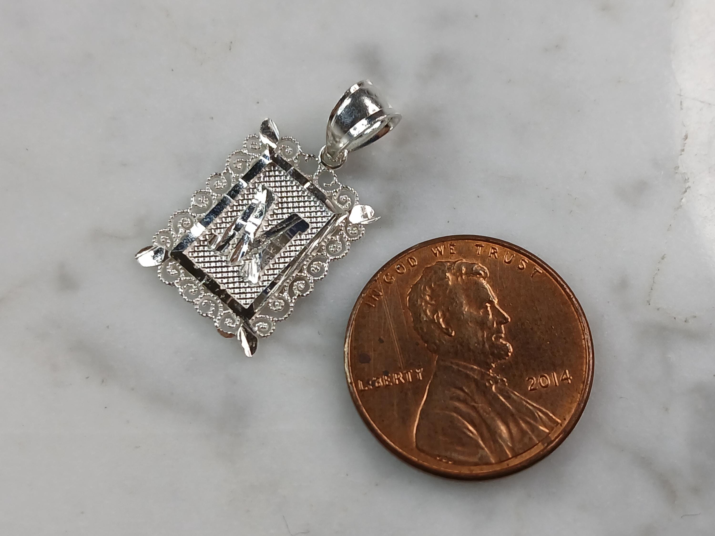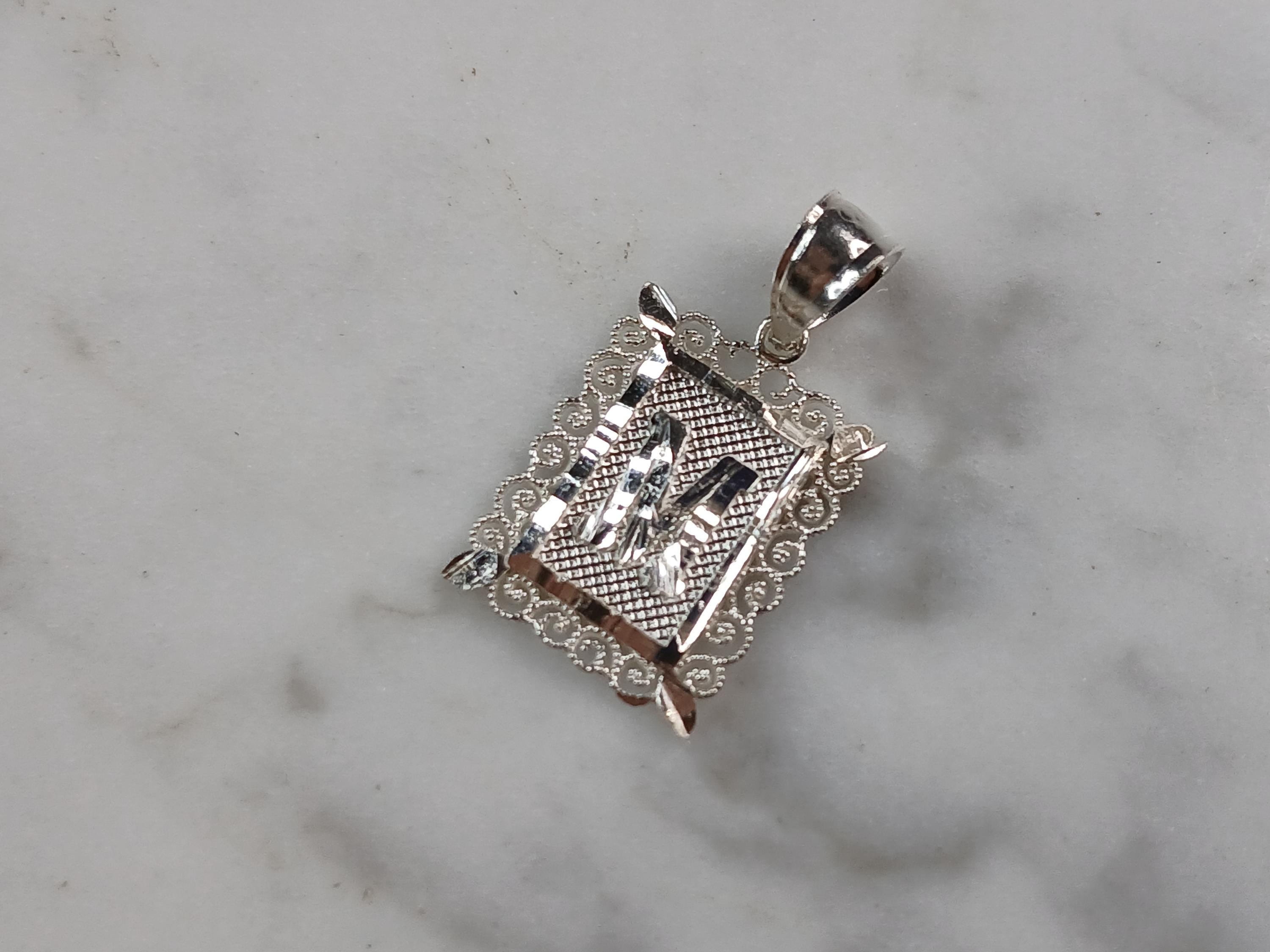 A WOMENS STERLING SILVER INITIAL LETTER " M" PENDANT. PENDANT WEIGHS 1.0g AND MEASURES 7/8" LONG BY 1/2" WIDE. MAKES A GREAT GIFT FOR THAT SOMEONE SPECIAL. ANY QUESTIONS, PLEASE ASK. BE SURE TO CHECK OUT OUR OTHER ITEMS FOR SALE.