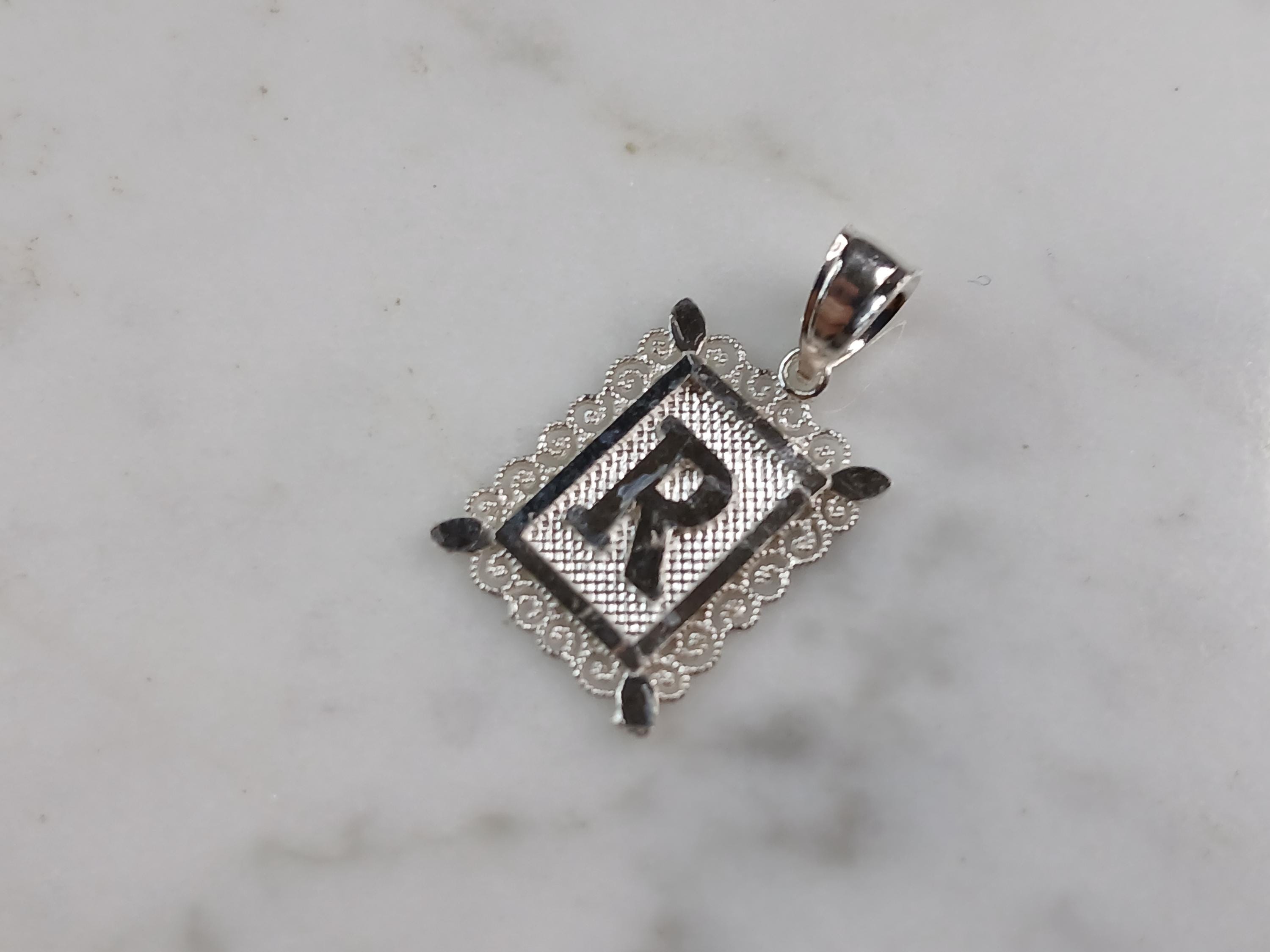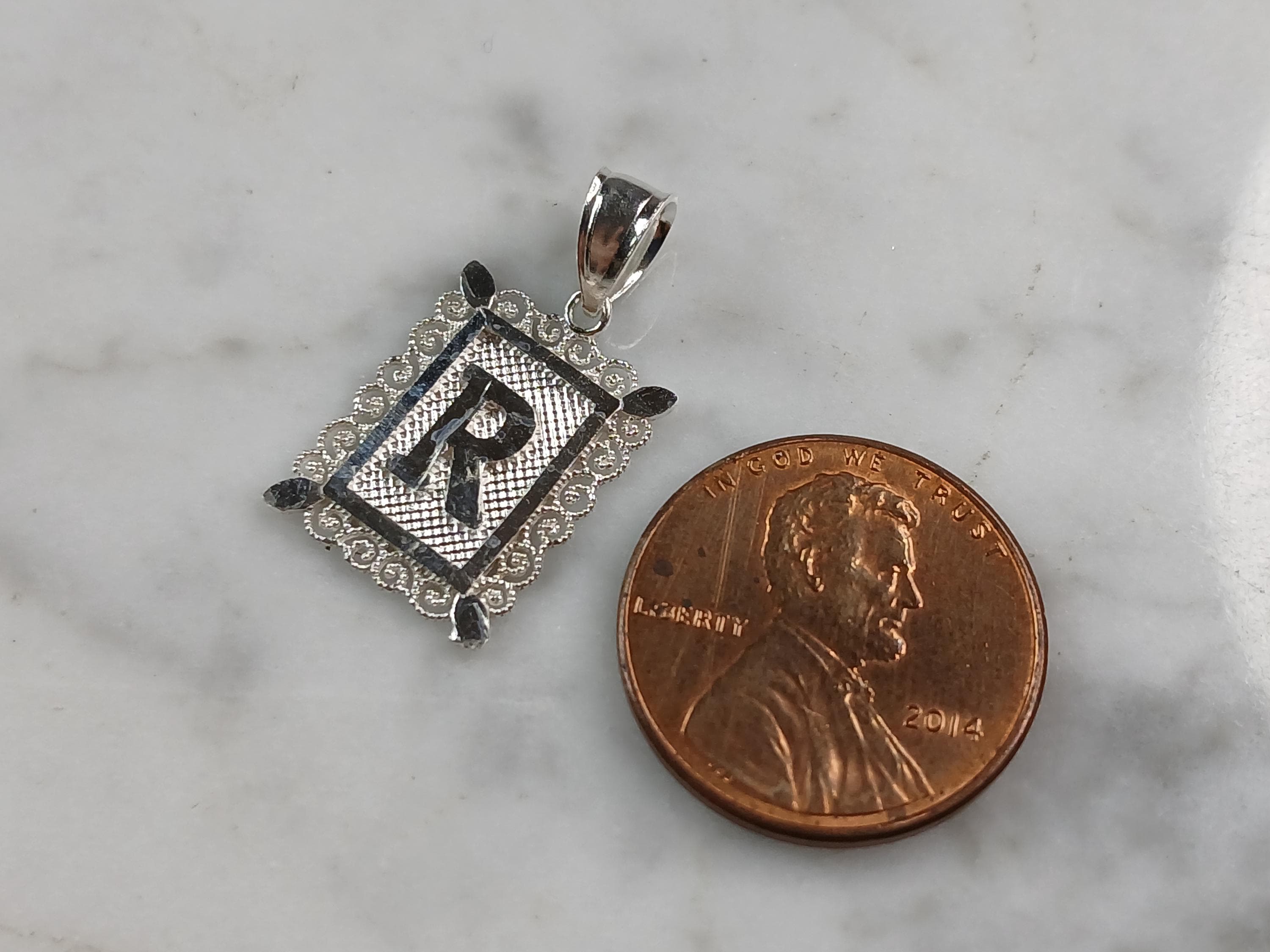 A WOMENS STERLING SILVER INITIAL LETTER "R" PENDANT. PENDANT WEIGHS 1.0g AND MEASURES 7/8" LONG BY 1/2" WIDE. MAKES A GREAT GIFT FOR THAT SOMEONE SPECIAL. ANY QUESTIONS, PLEASE ASK. BE SURE TO CHECK OUT OUR OTHER ITEMS FOR SALE.