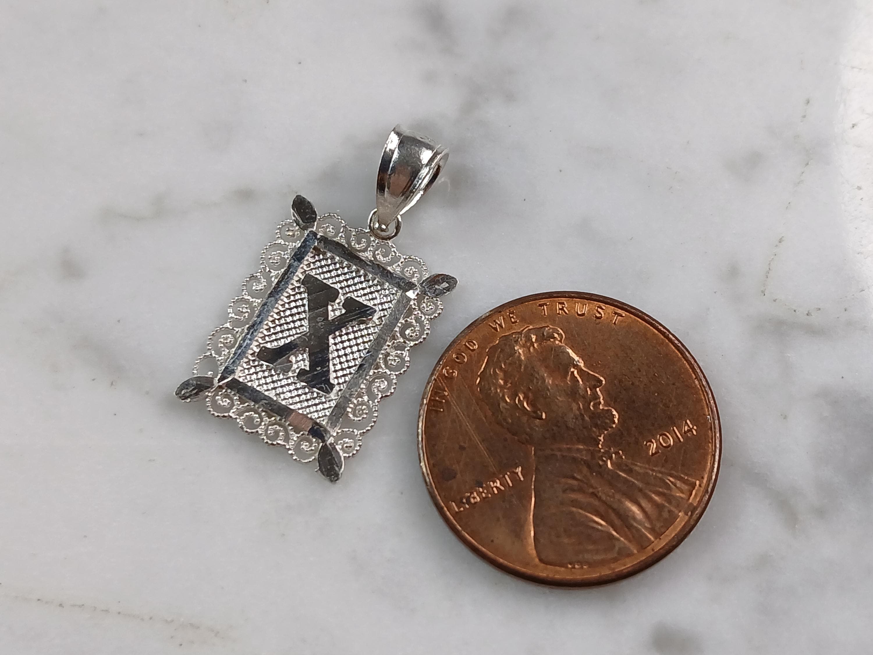 A WOMENS STERLING SILVER INITIAL LETTER "X" PENDANT. PENDANT WEIGHS 1.0g AND MEASURES 7/8" LONG BY 1/2" WIDE. MAKES A GREAT GIFT FOR THAT SOMEONE SPECIAL. ANY QUESTIONS, PLEASE ASK. BE SURE TO CHECK OUT OUR OTHER ITEMS FOR SALE.