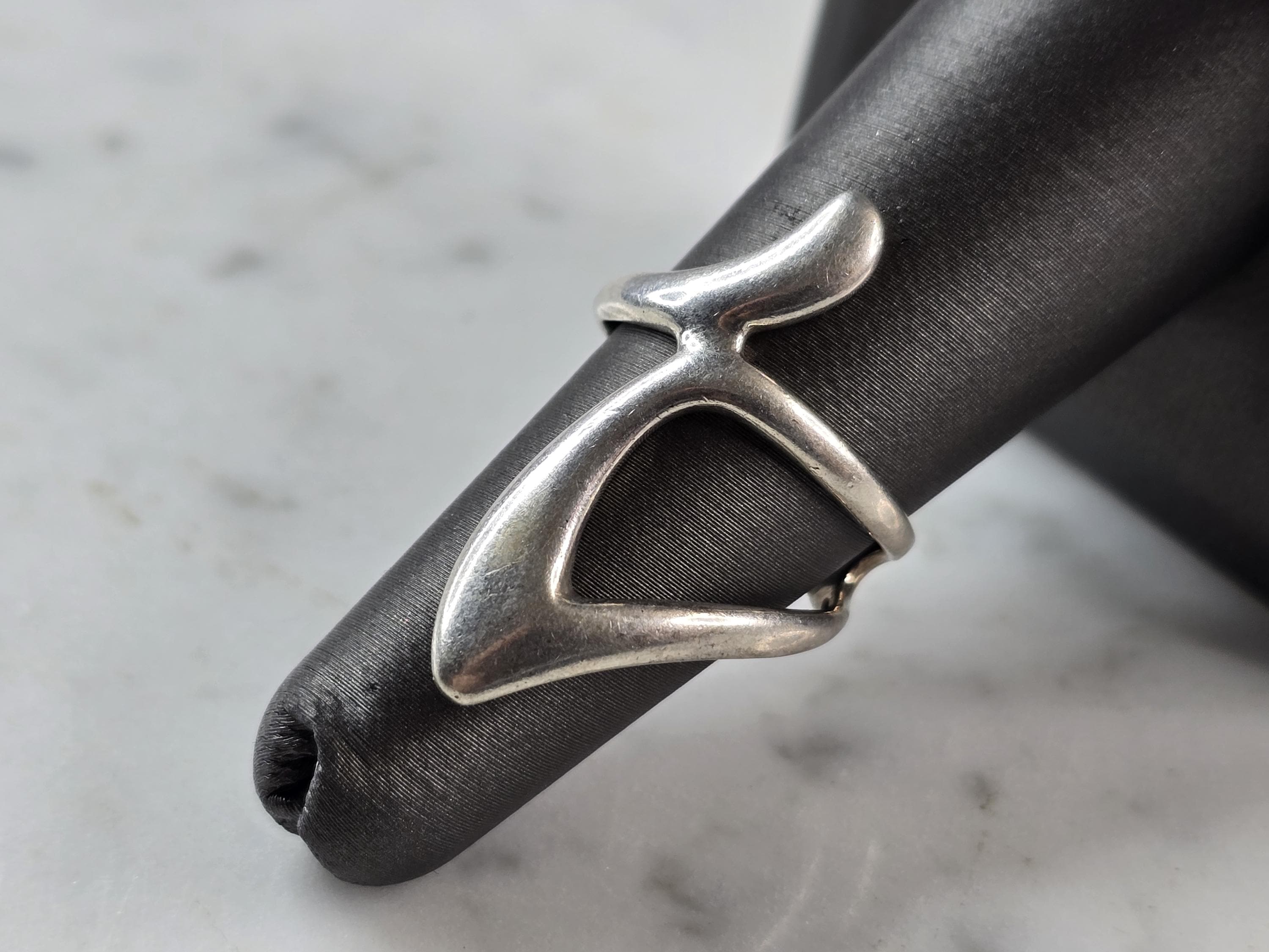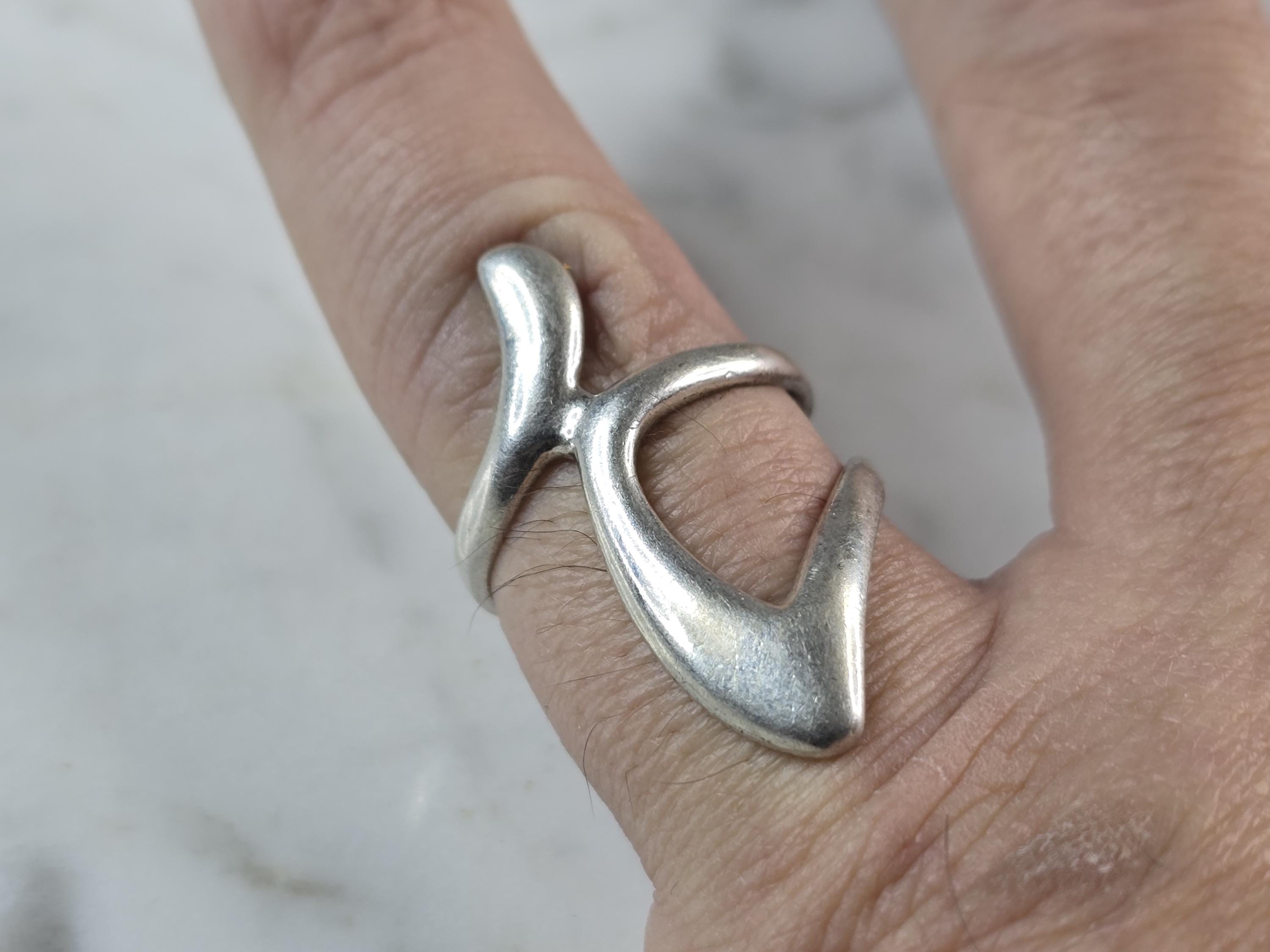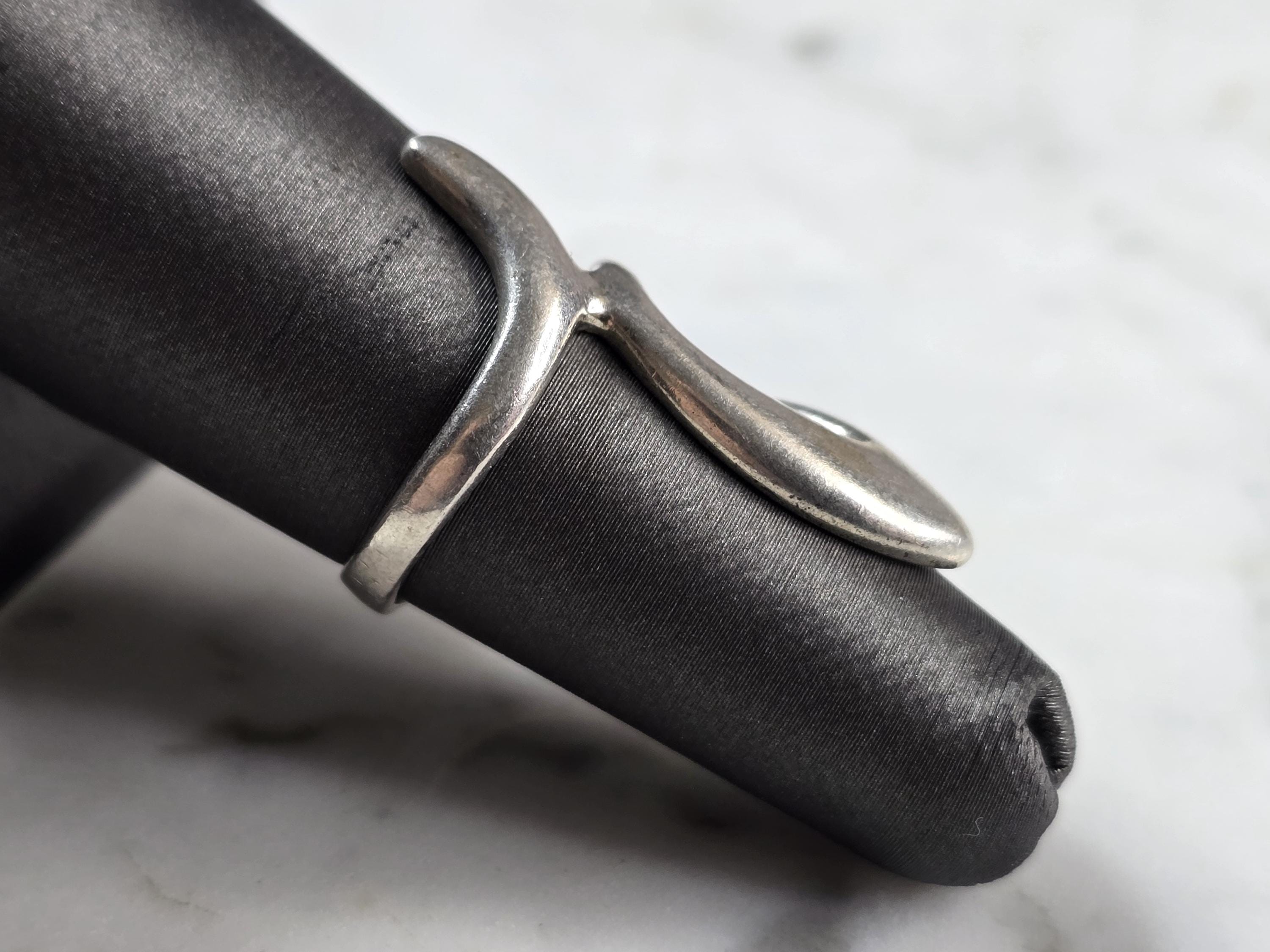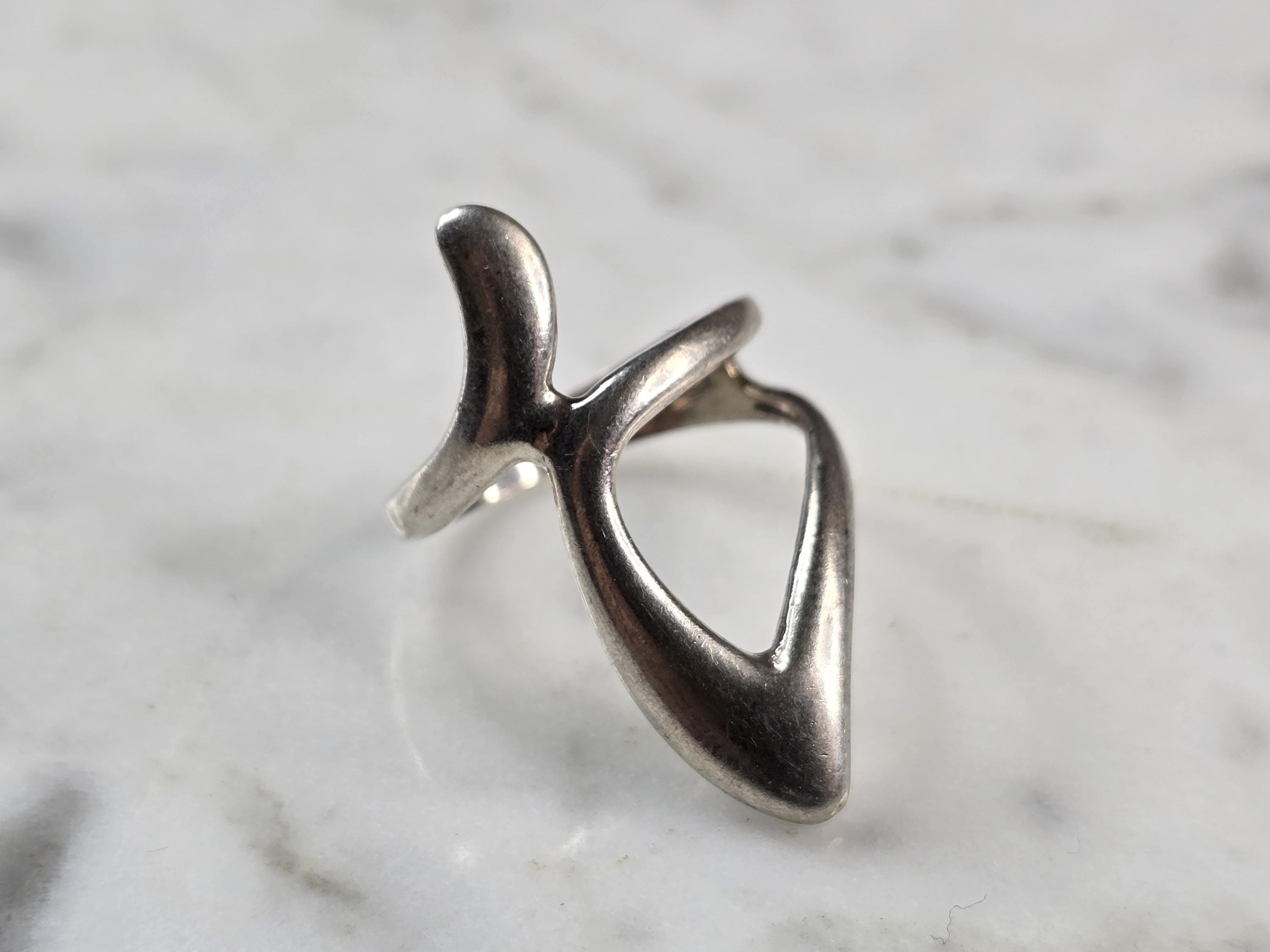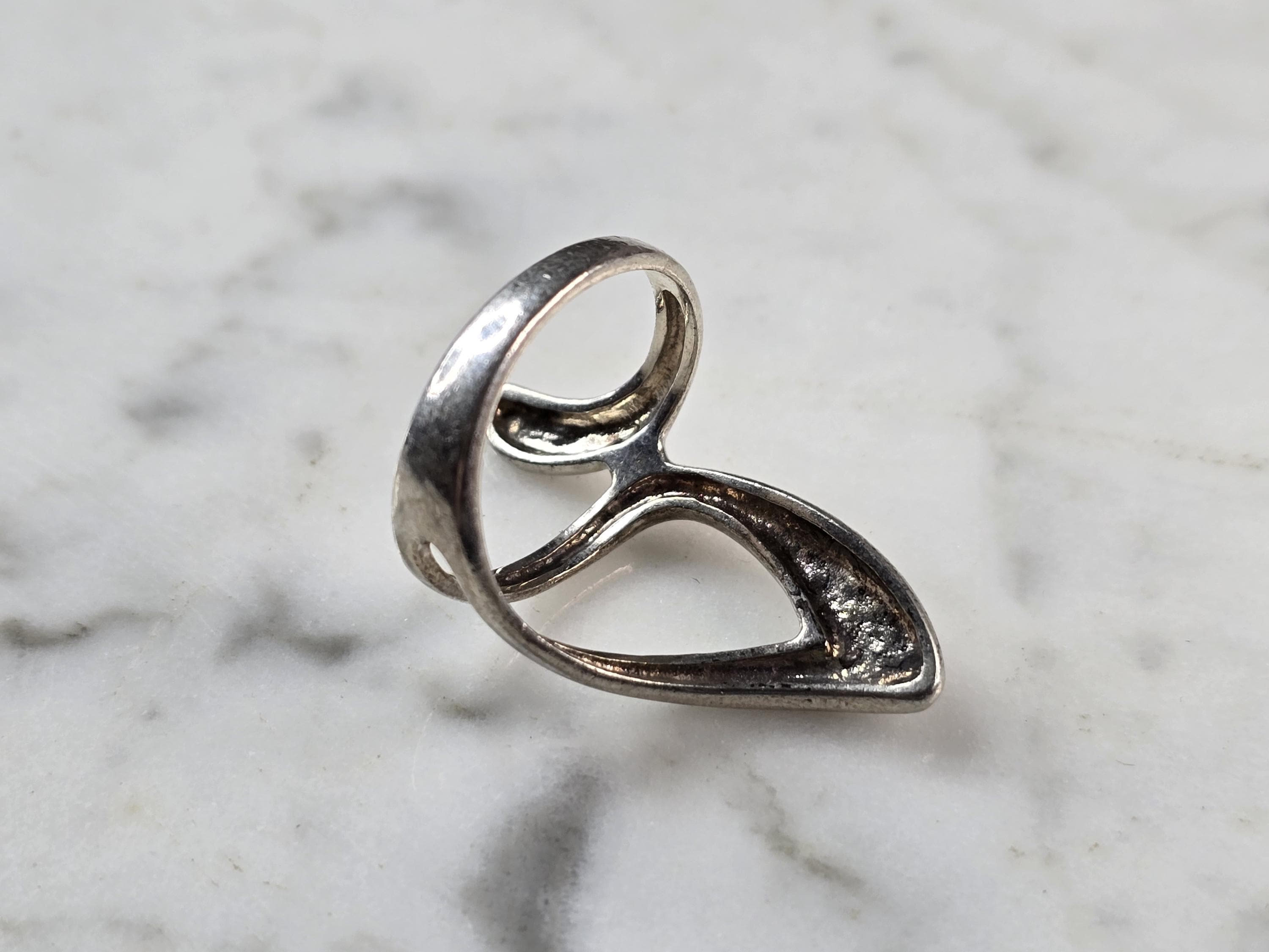 A WOMENS VINTAGE ESTATE STERLING SILVER MODERNIST RING. THE RING SIZE IS A 6.5, AND WEIGHS 4.0g. THE LENGTH OF THE RING IS 1 1/4". THIS WOULD MAKE A NICE GIFT FOR THAT SOMEONE SPECIAL. ANY QUESTIONS PLEASE DO NOT HESITATE TO ASK. BE SURE TO CHECK OUT SOME OF MY OTHER GREAT ITEMS UP FOR SALE. THANK YOU.