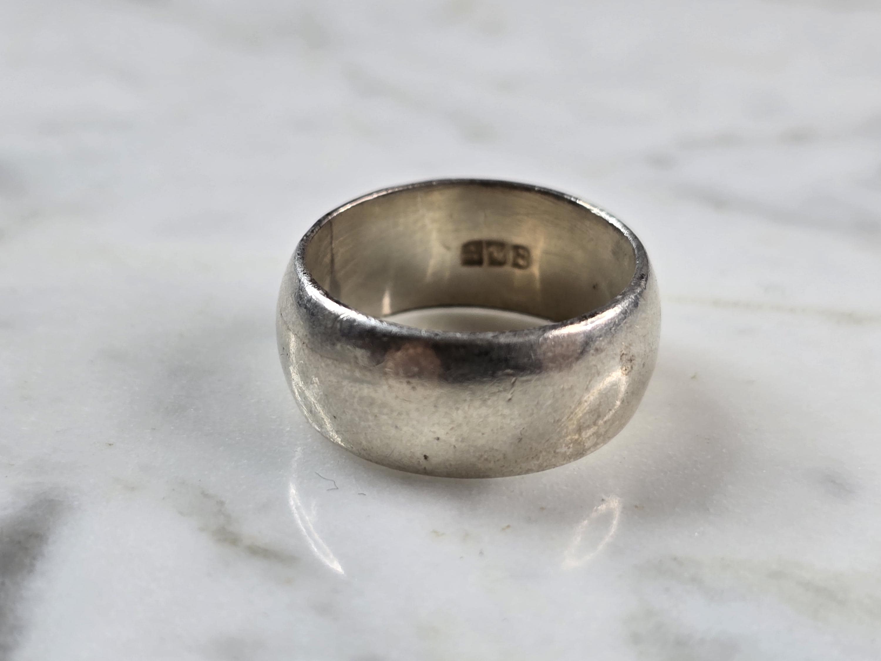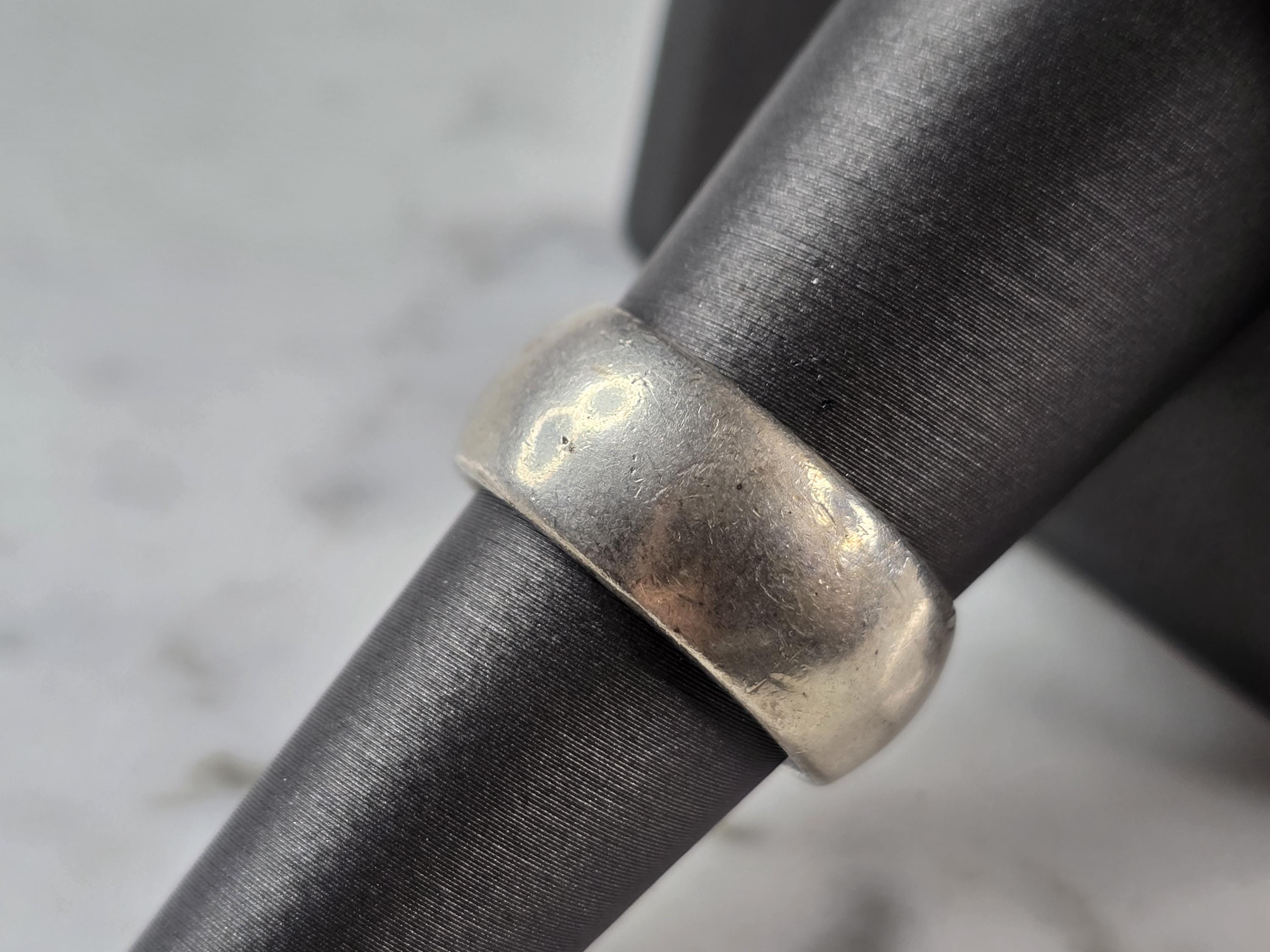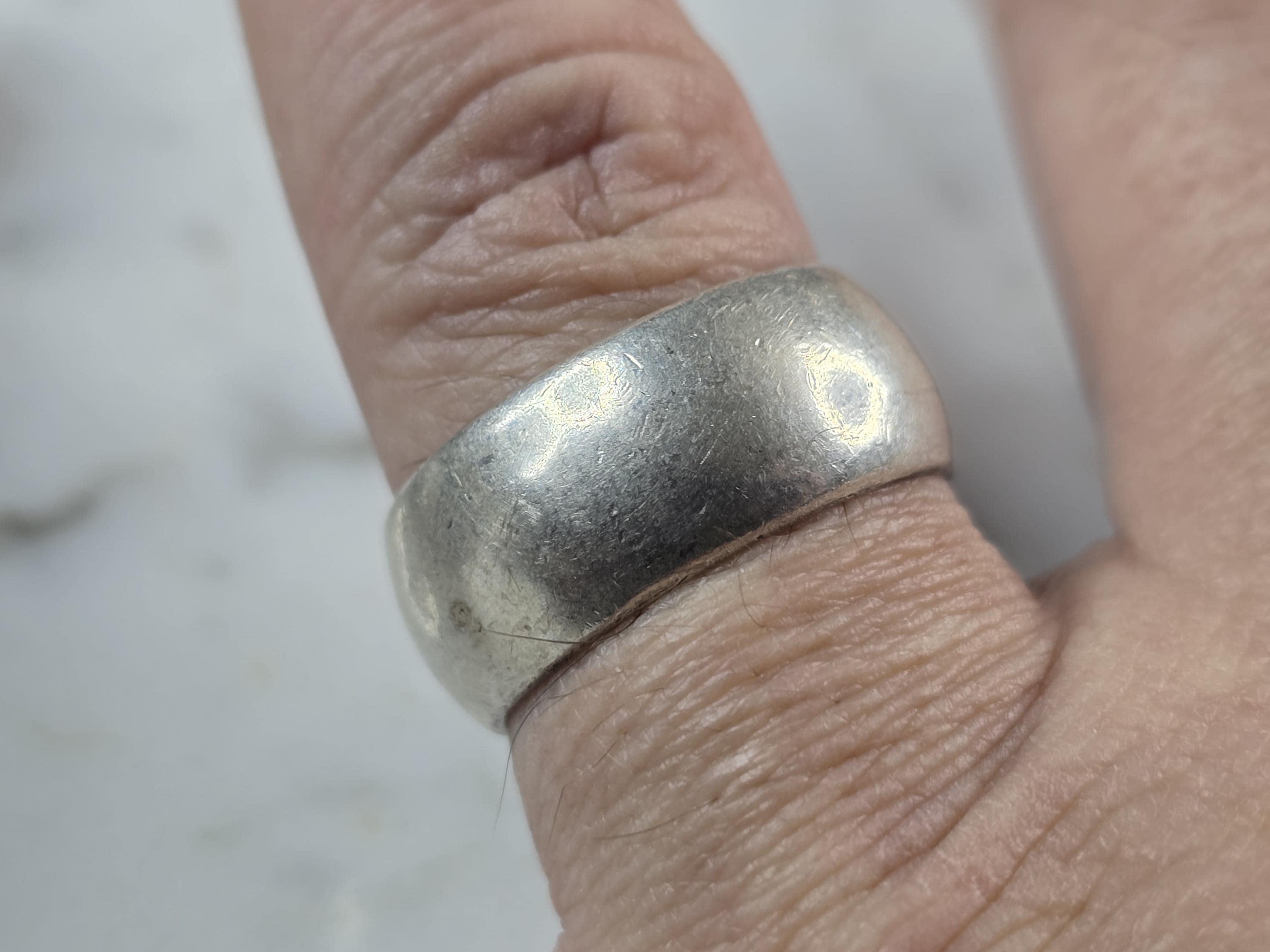 A WOMENS VINTAGE ESTATE STERLING SILVER WEDDING RING. RING SIZE IS AN 7.5 AND WEIGHS 9.2g. THE WIDTH OF THE RING IS 1/4". THIS WOULD MAKE A NICE GIFT FOR THAT SOMEONE SPECIAL. ANY QUESTIONS PLEASE DO NOT HESITATE TO ASK. BE SURE TO CHECK OUT SOME OF MY OTHER GREAT ITEMS UP FOR SALE. THANK YOU