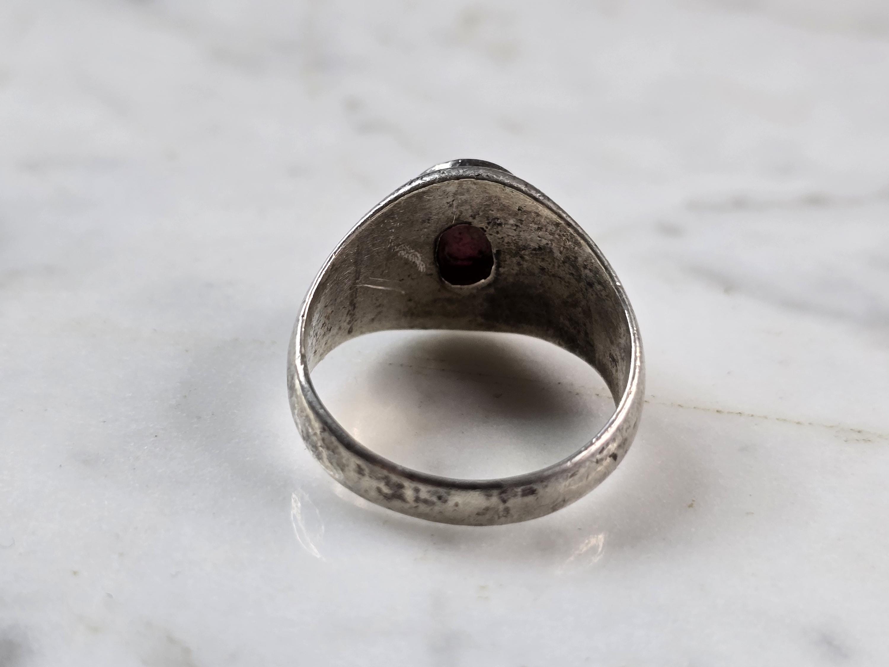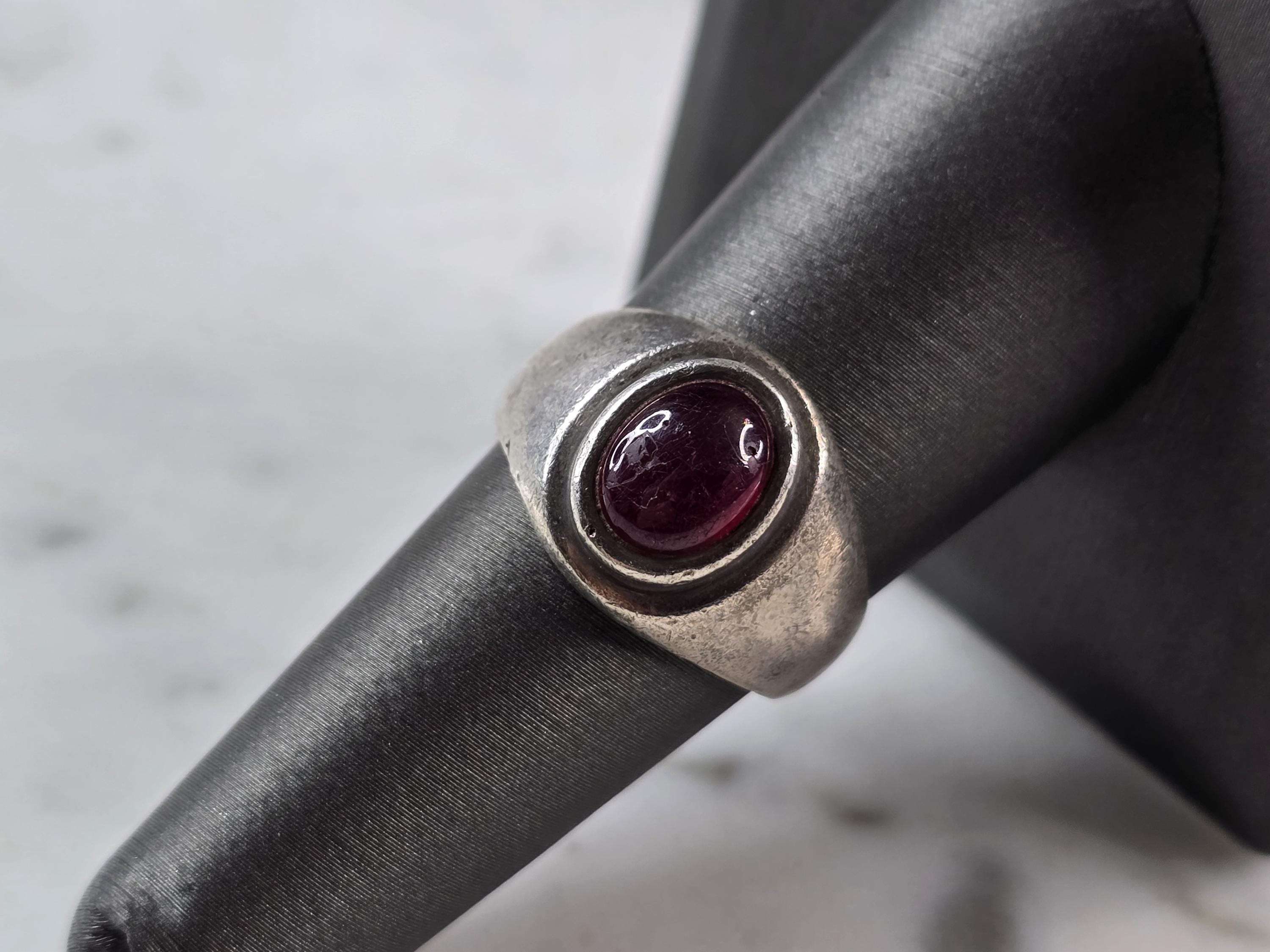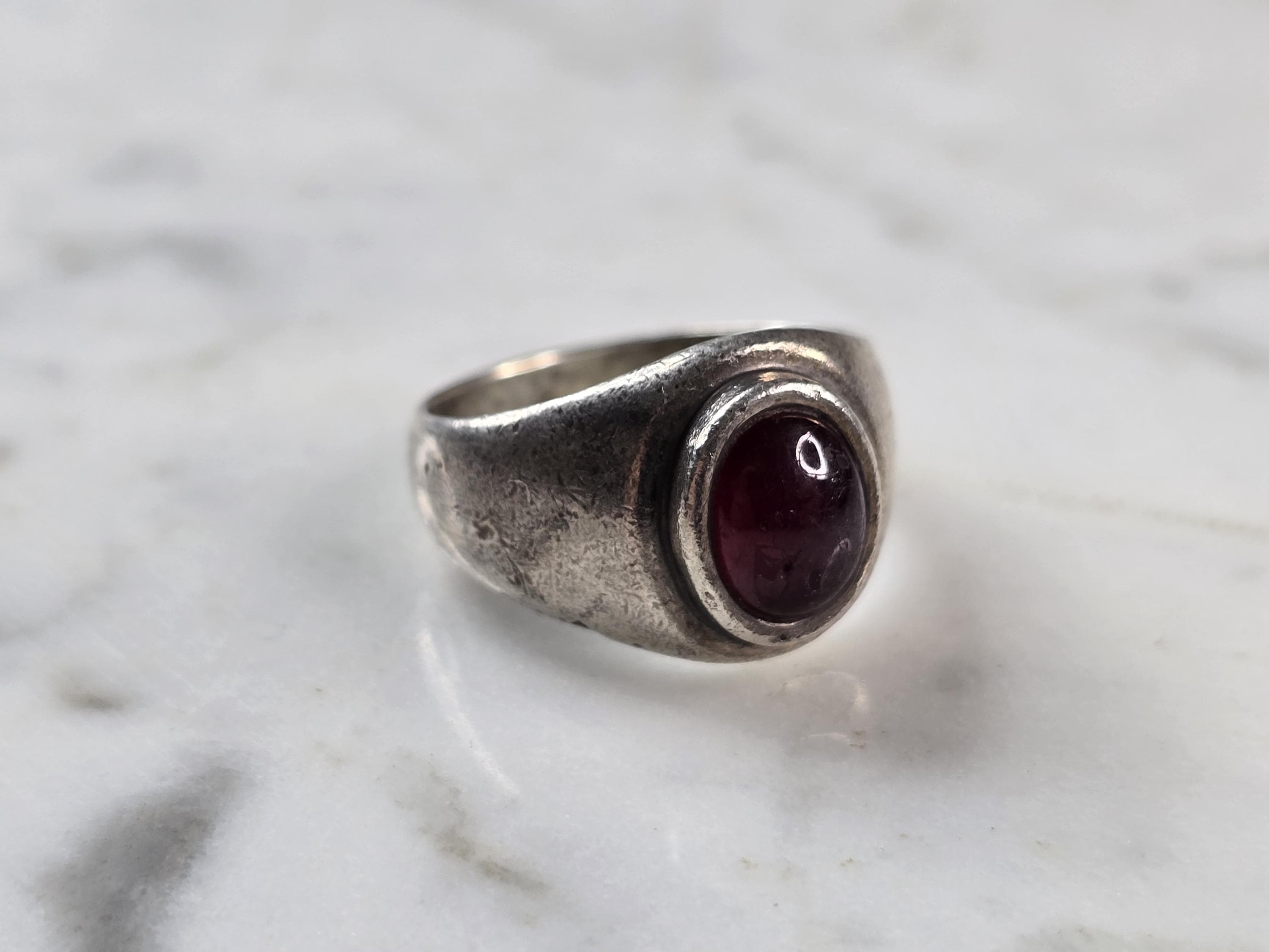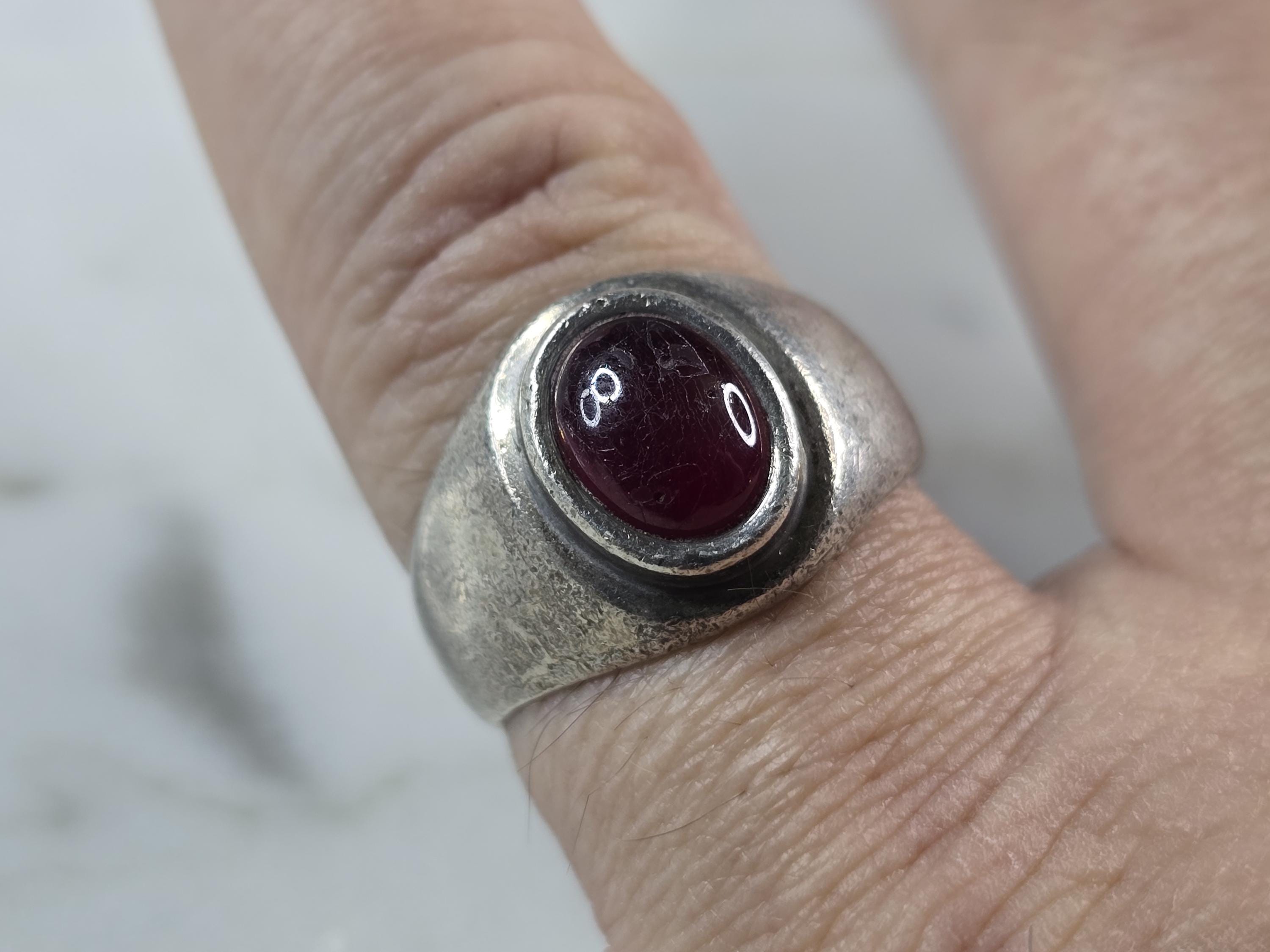 A WOMEN'S OR MENS VINTAGE ESTATE STERLING SILVER GARNET COLORED CABOCHON RING. THE RING IS A SIZE 8.0, AND WEIGHS 7.1g. THE RING MEASURES 1/2" WIDE. THIS IS A BEAUTIFUL, IMPRESSIVE GIFT FOR THAT SOMEONE SPECIAL. ANY QUESTIONS, PLEASE DON'T HESITATE TO ASK. BE SURE TO CHECK OUT SOME OF MY OTHER GREAT ITEMS UP FOR SALE. THANK YOU.