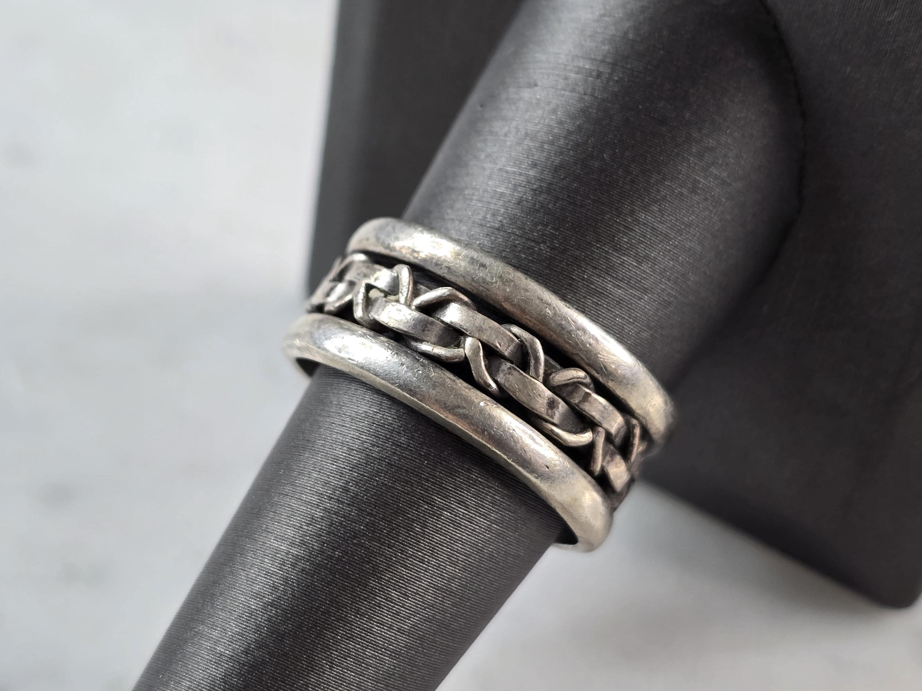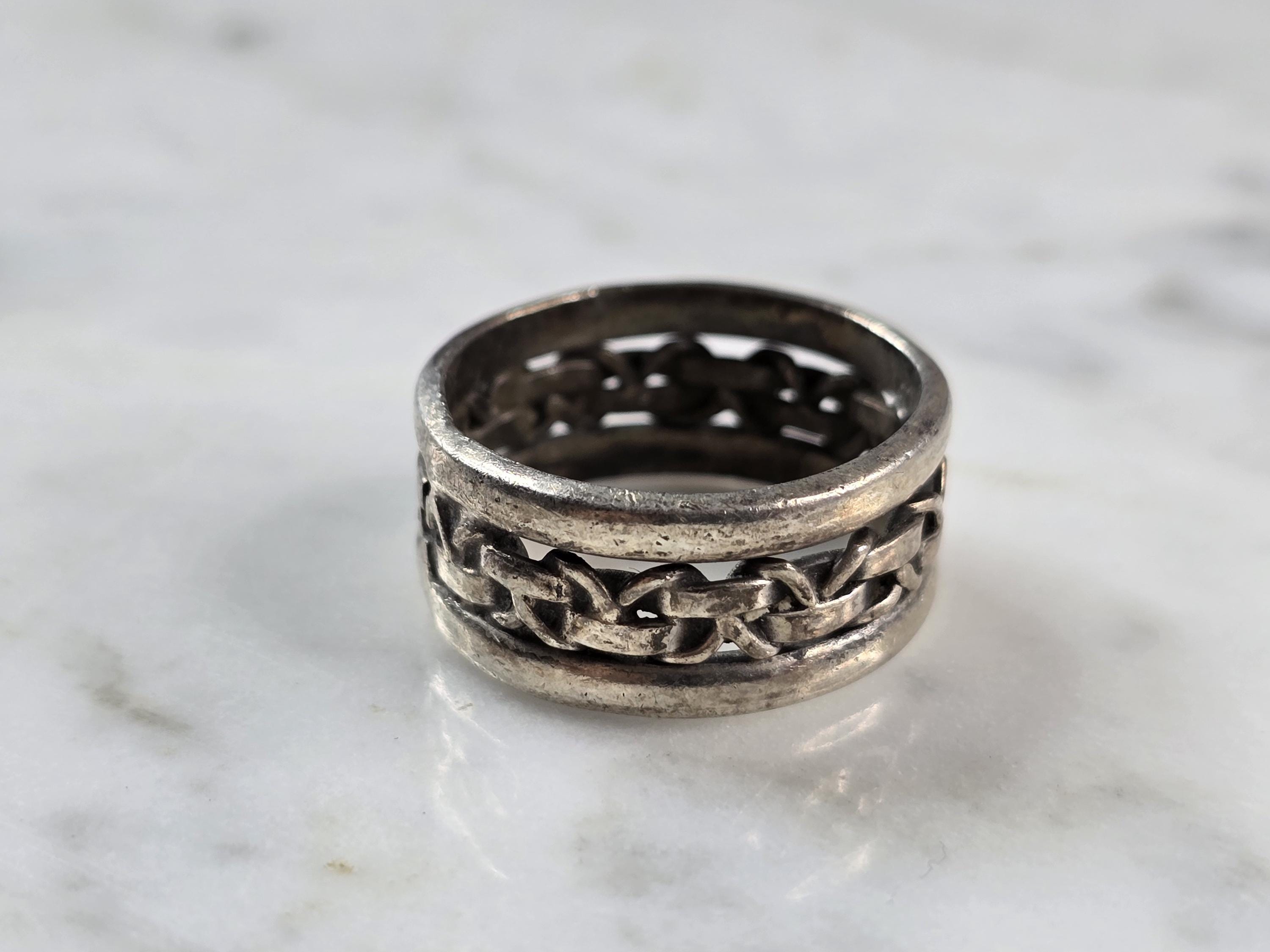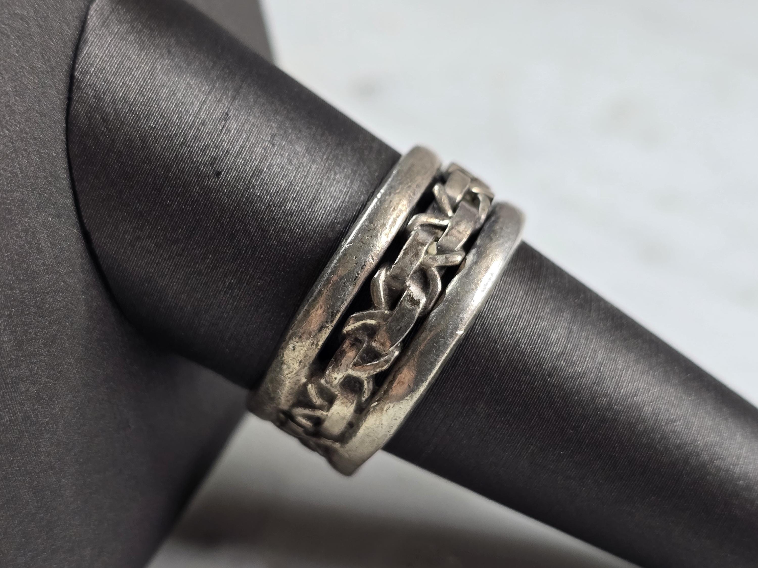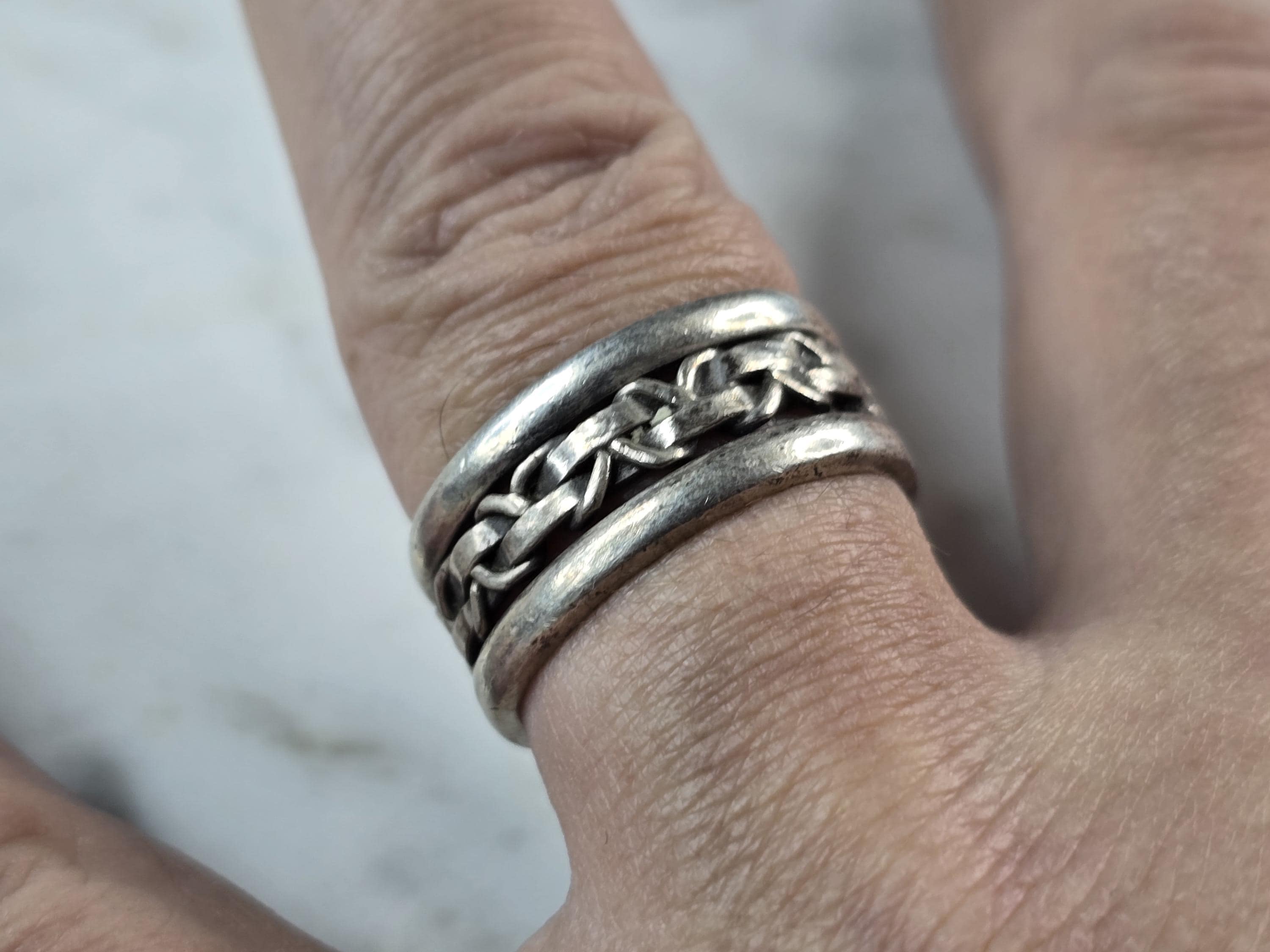 A MENS VINTAGE ESTATE CELTIC ETERNITY KNOT RING THAT WEIGHS 6.9g, AND IS A SIZE 10.0. THE RING MEASURES 3/8" WIDE. ANY QUESTIONS PLEASE DO NOT HESITATE TO ASK. BE SURE TO CHECK OUT OUR OTHER GREAT ITEMS FOR SALE.
