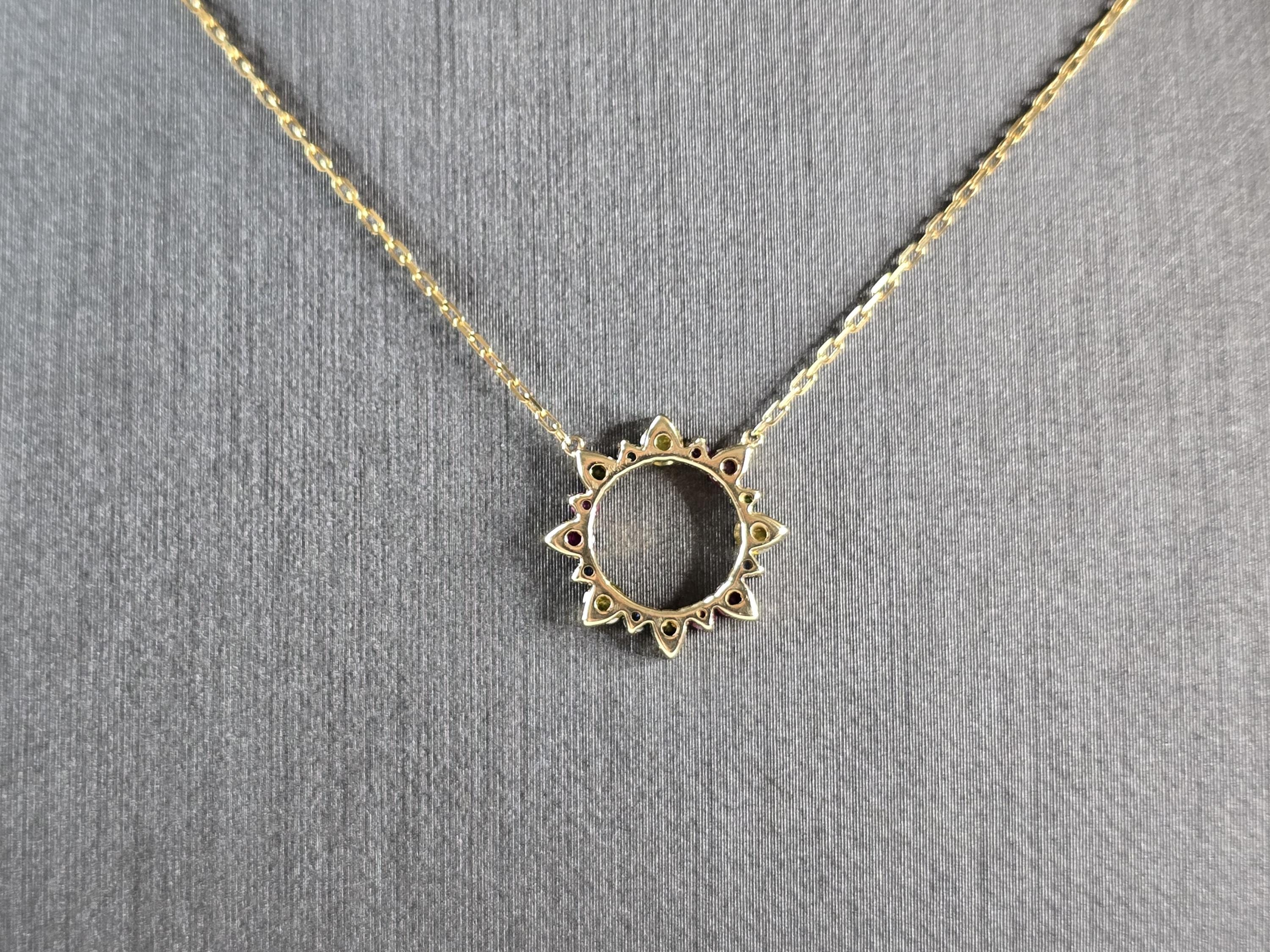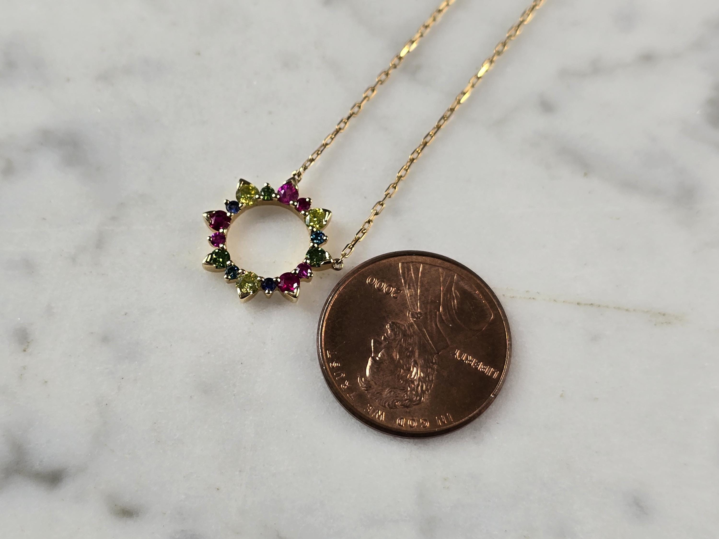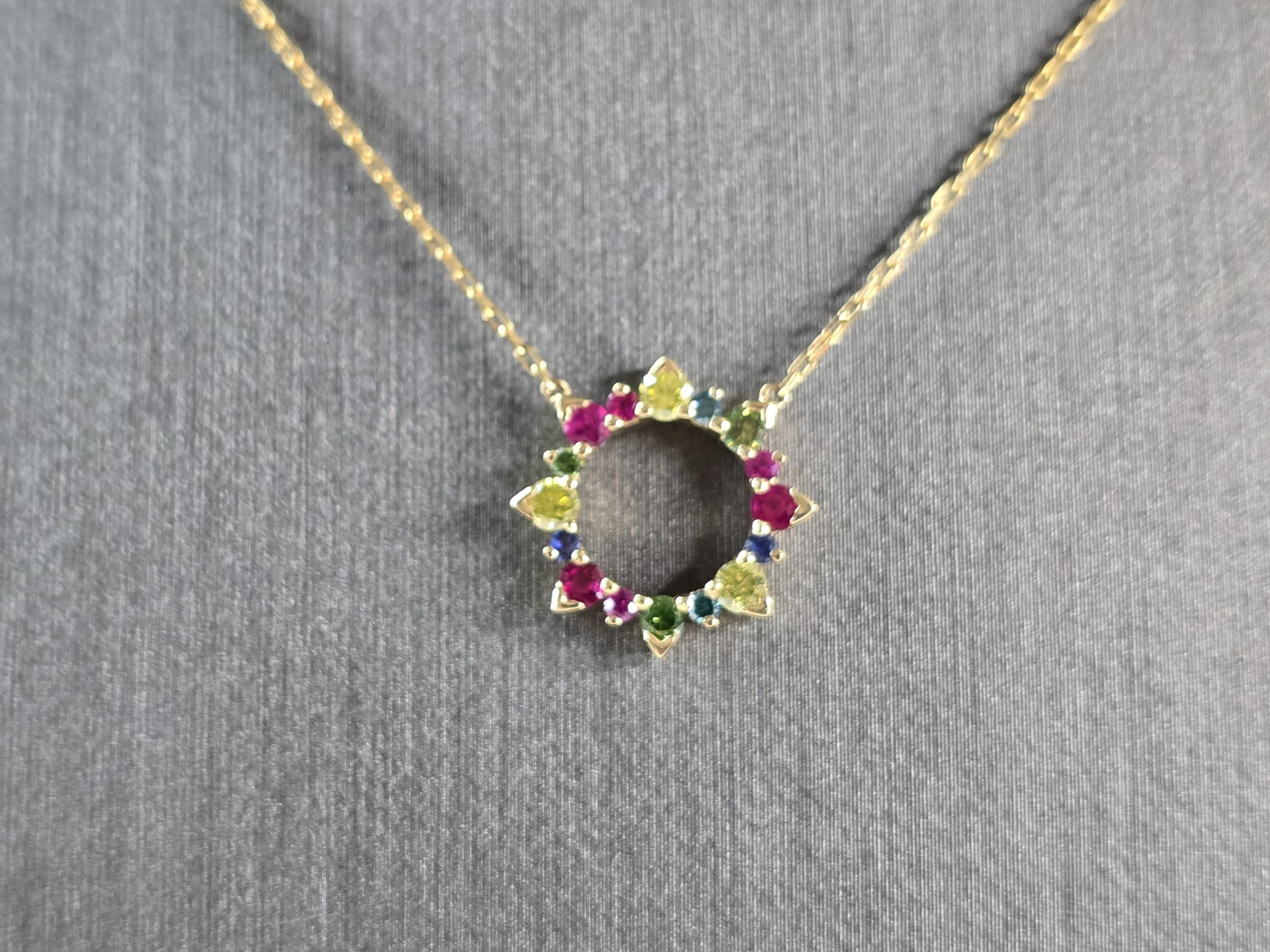A LOVELY WOMENS VINTAGE ESTATE 14K GOLD MULTI STONE PENDANT WITH NECKLACE. THE NECKLACE AND PENDANT WEIGH 2.1g. NECKLACE MEASURES 18" LONG . THE PENDANT MEASURES 1/2" LONG BY 1/2" WIDE. MAKES A GREAT GIFT FOR THAT SOMEONE SPECIAL. ANY QUESTIONS, PLEASE ASK. BE SURE TO CHECK OUT OUR OTHER ITEMS FOR SALE.