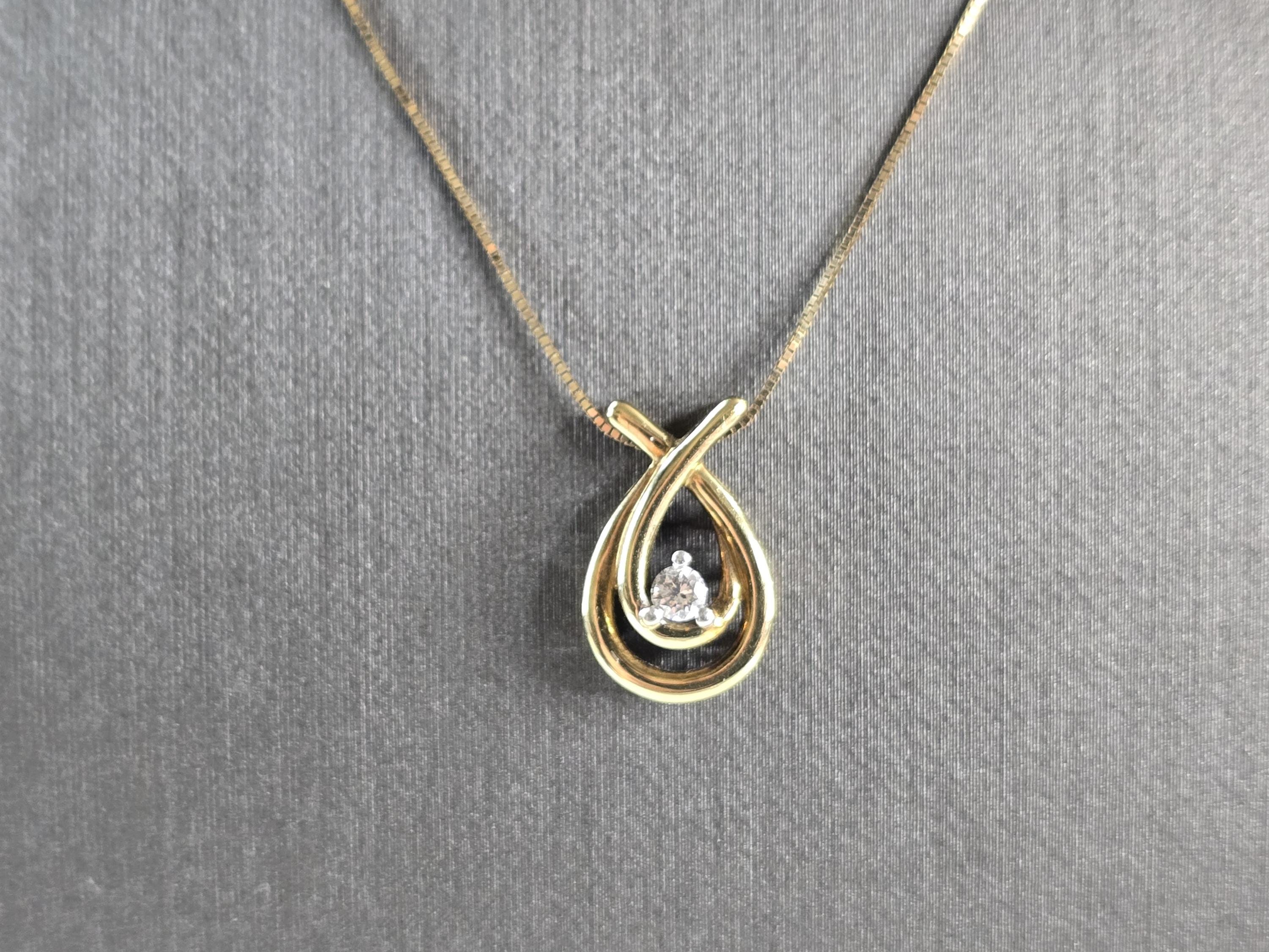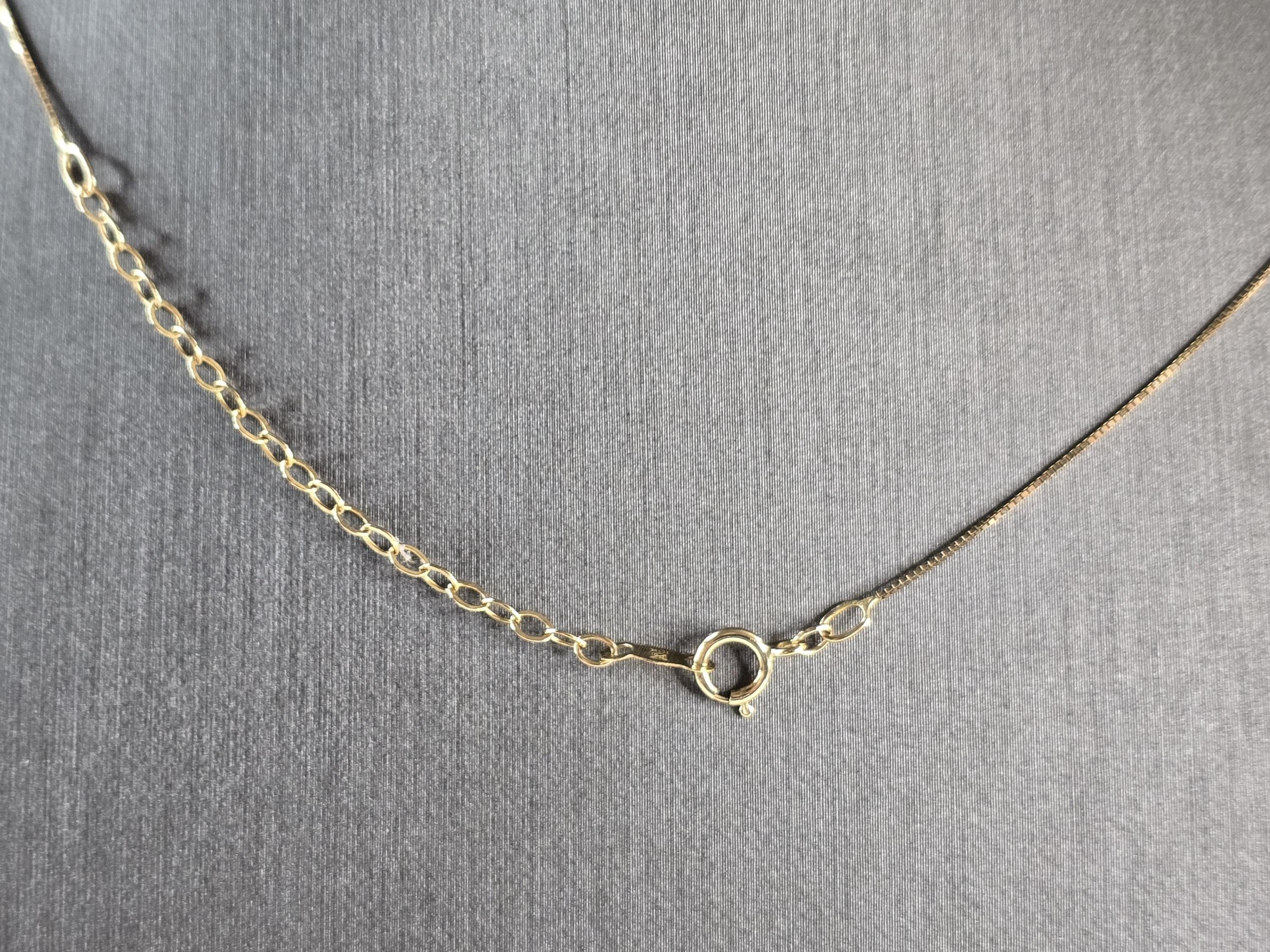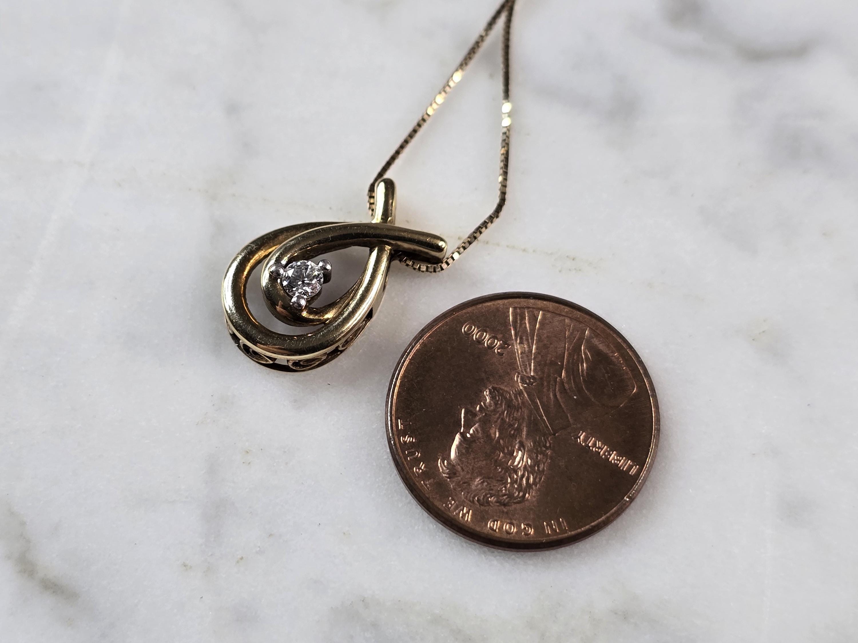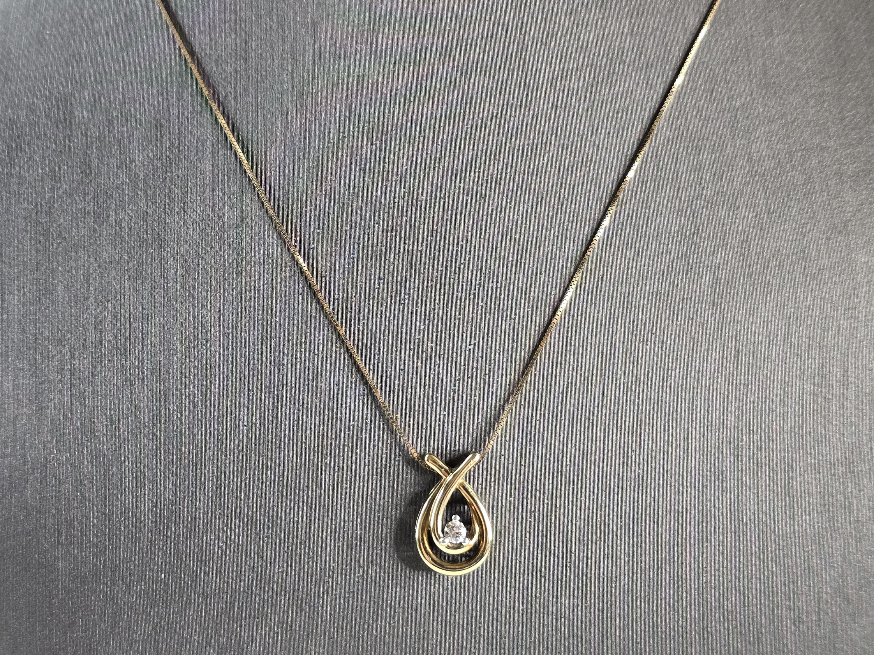 A WOMENS VINTAGE ESTATE 10K YELLOW GOLD FINE BOX LINK NECKLACE WITH 10K YELLOW GOLD DIAMOND PENDANT. THE DIAMOND IS ABOUT 0.10cts. THE NECKLACE AND PENDANT WEIGHS 2.5g. NECKLACE MEASURES 20" LONG. PENDANT MEASURES 5/8" LONG BY 3/8" WIDE. MAKES A GREAT GIFT FOR THAT SOMEONE SPECIAL. ANY QUESTIONS, PLEASE ASK. BE SURE TO CHECK OUT OUR OTHER ITEMS FOR SALE.