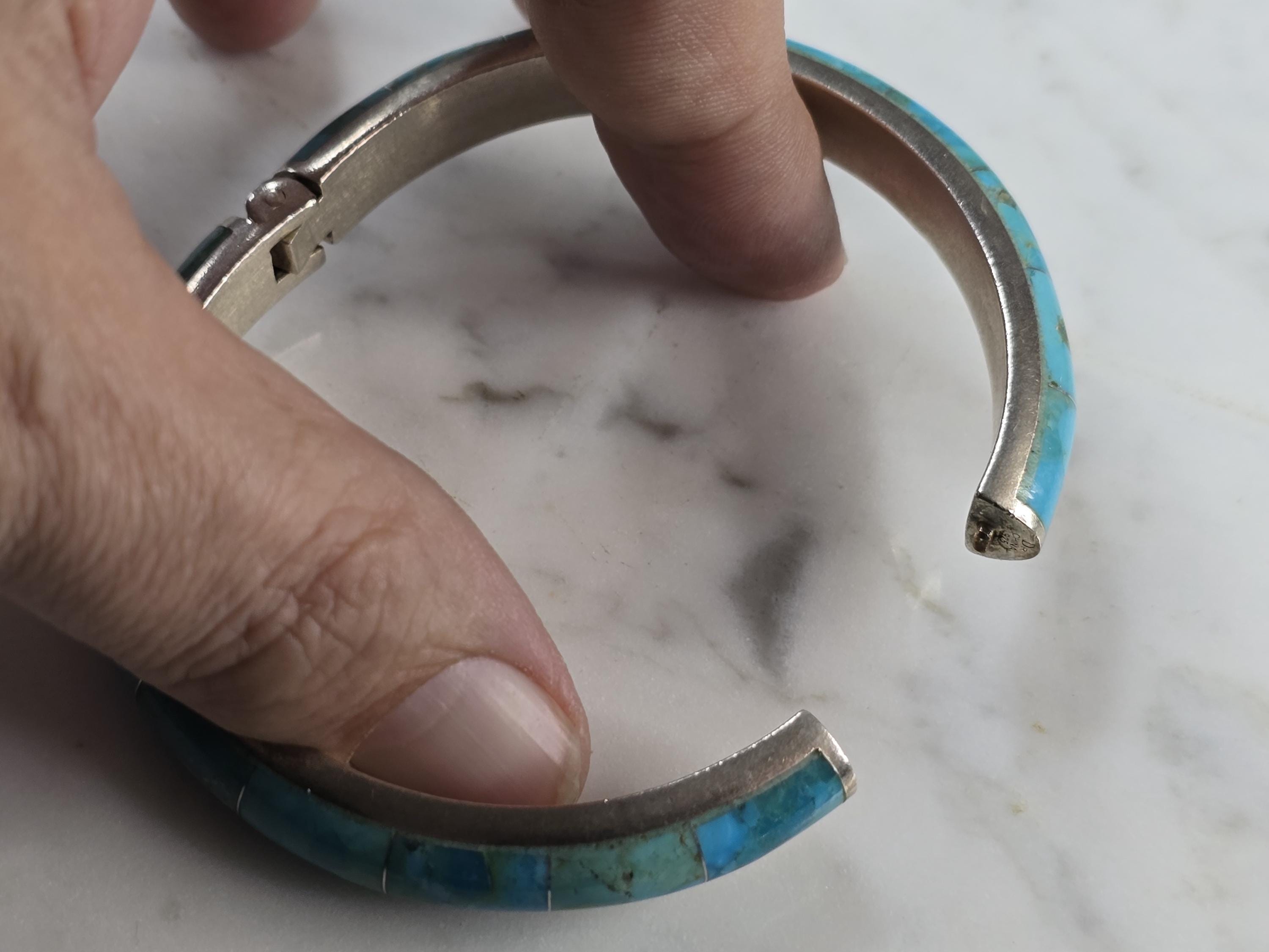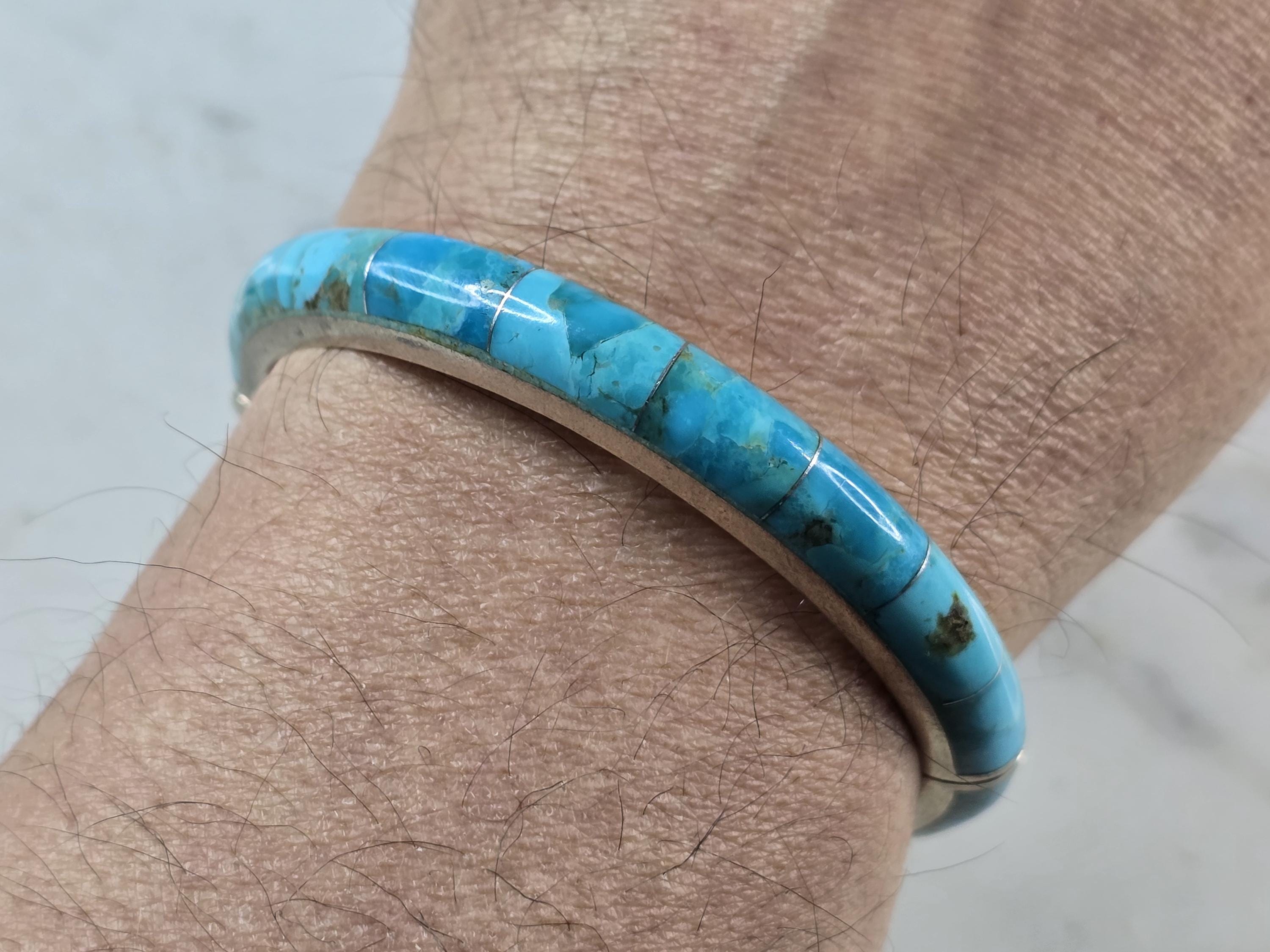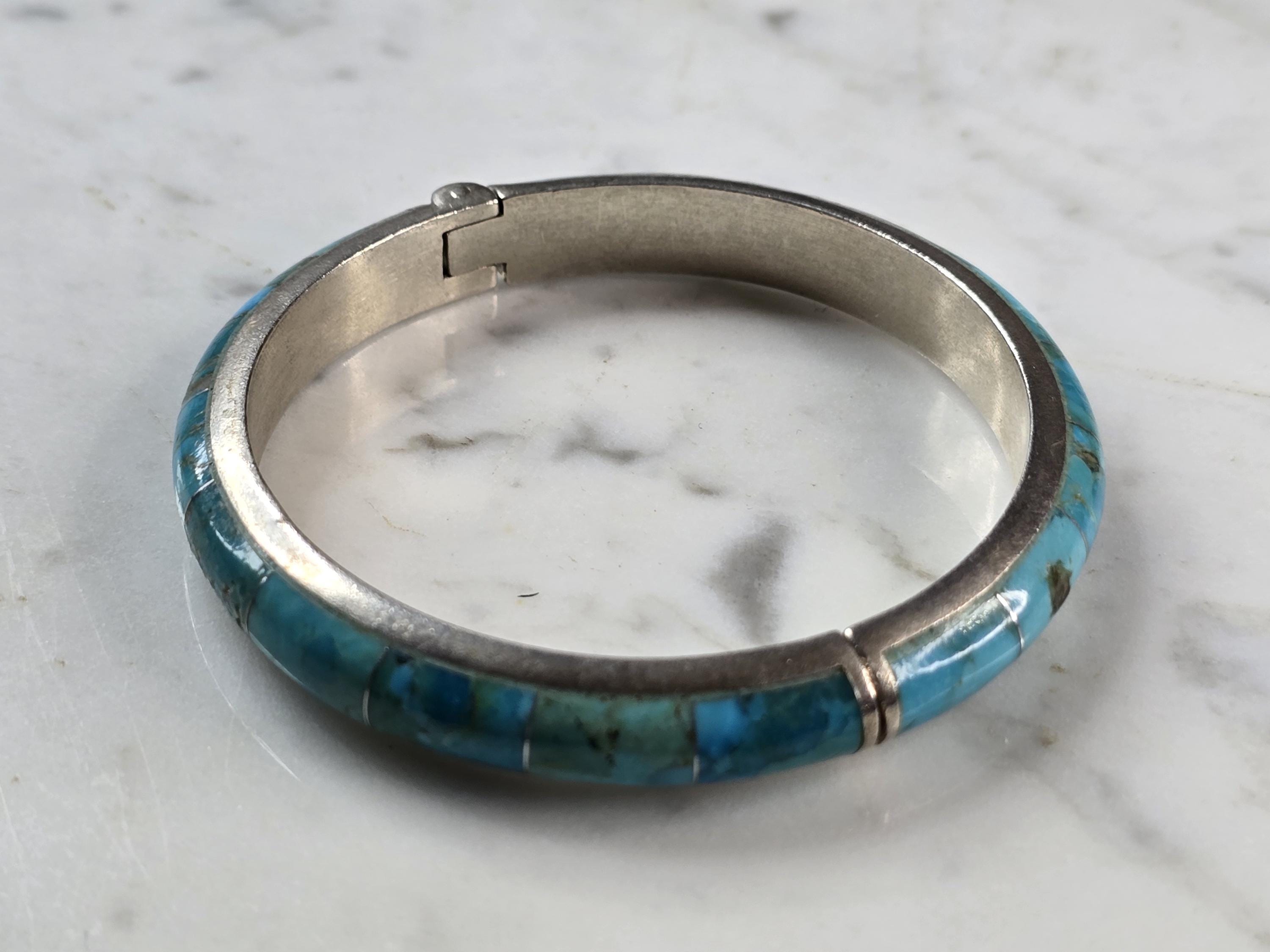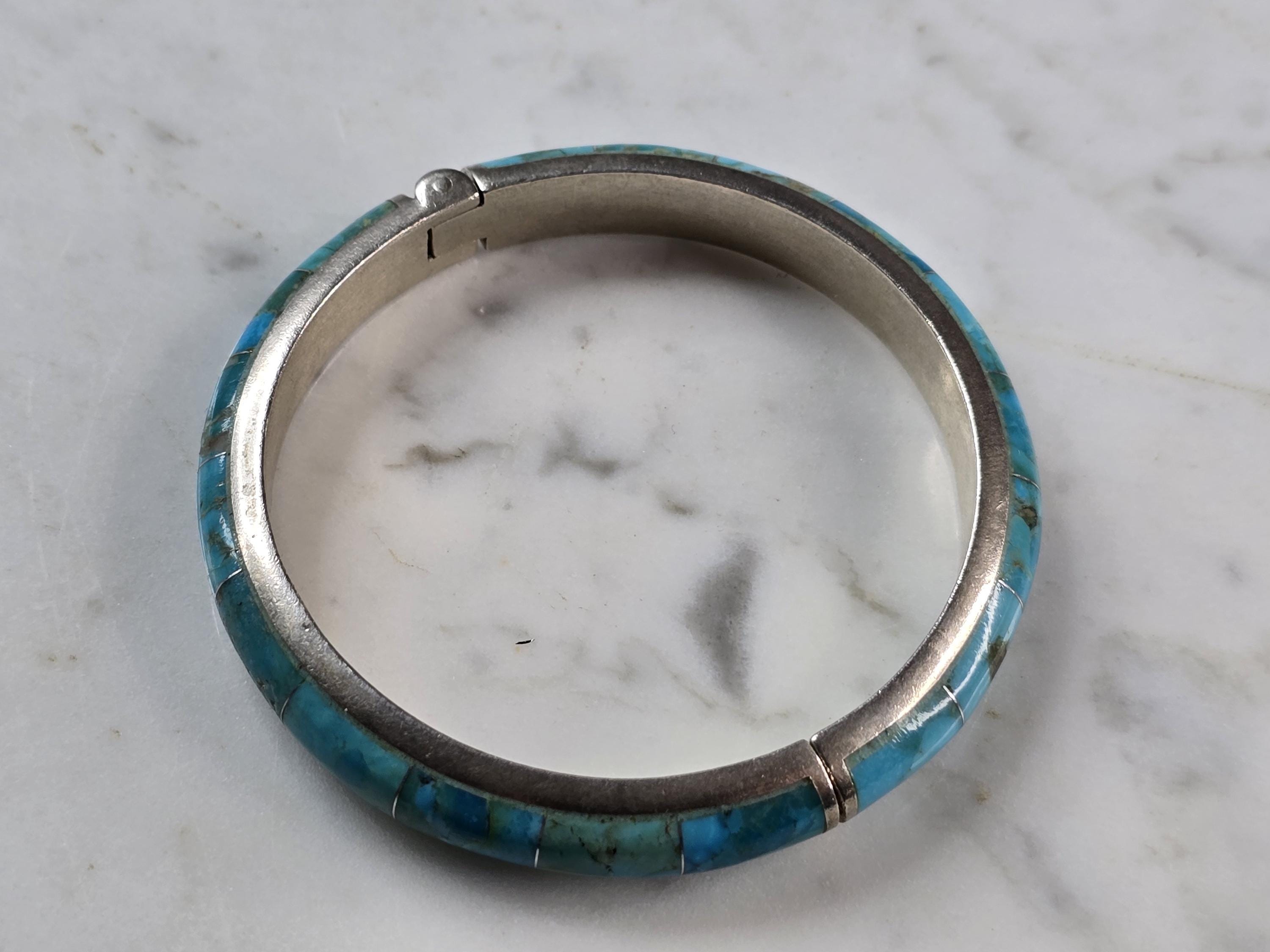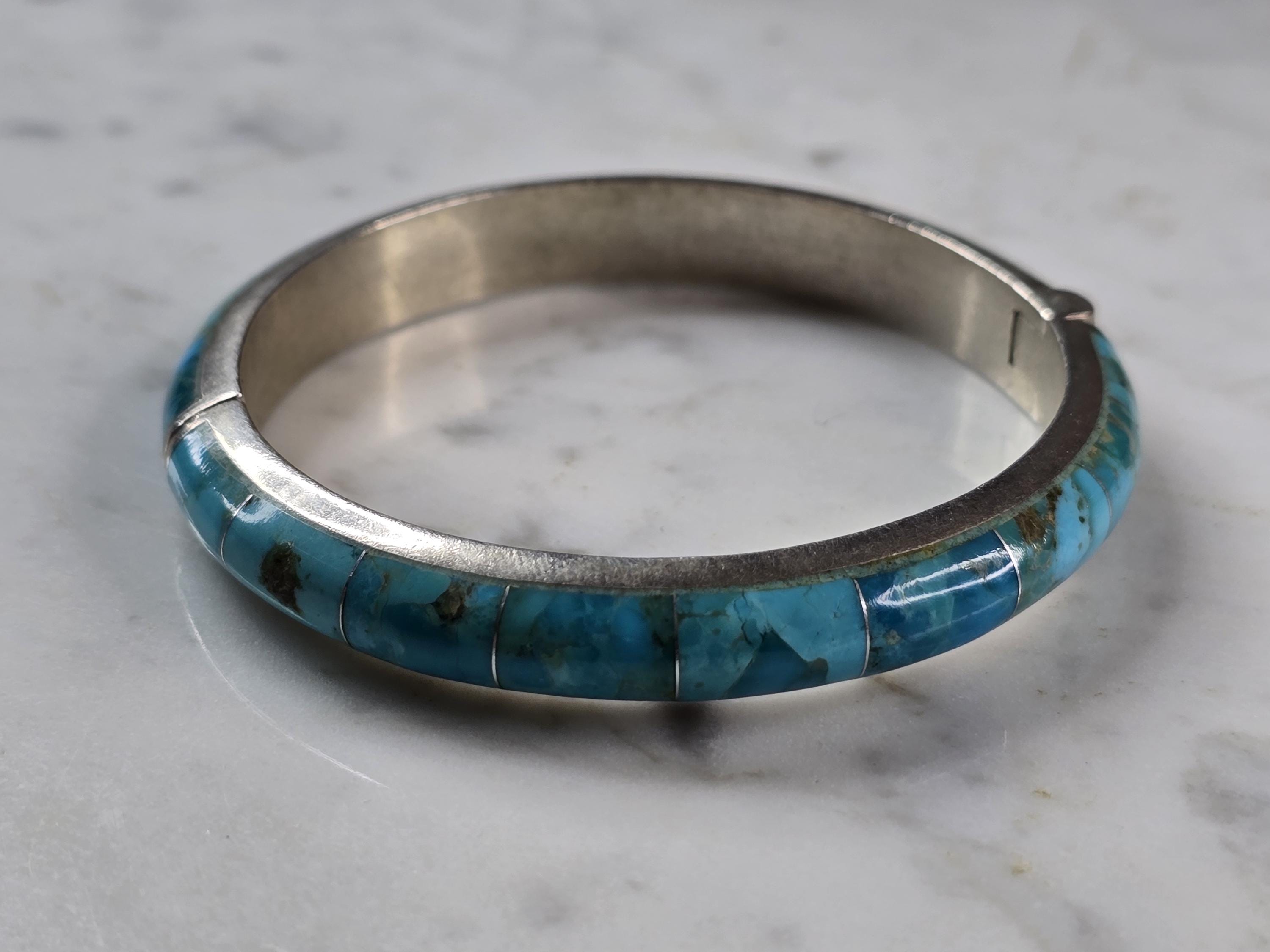 A WOMENS VINTAGE ESTATE STERLING SILVER TURQUOISE BANGLE BRACELET. INSIDE CIRCUMFERENCE OF THE BRACELET MEASURES 7" . THE WIDTH OF THE FACE IS 3/16". BRACELET WEIGHS 35.1g. THIS WOULD MAKE A LOVELY GIFT FOR THAT SOMEONE SPECIAL. ANY QUESTIONS, PLEASE DON'T HESITATE TO ASK. BE SURE TO CHECK OUT SOME OF MY OTHER GREAT ITEMS UP FOR SALE. THANK YOU.