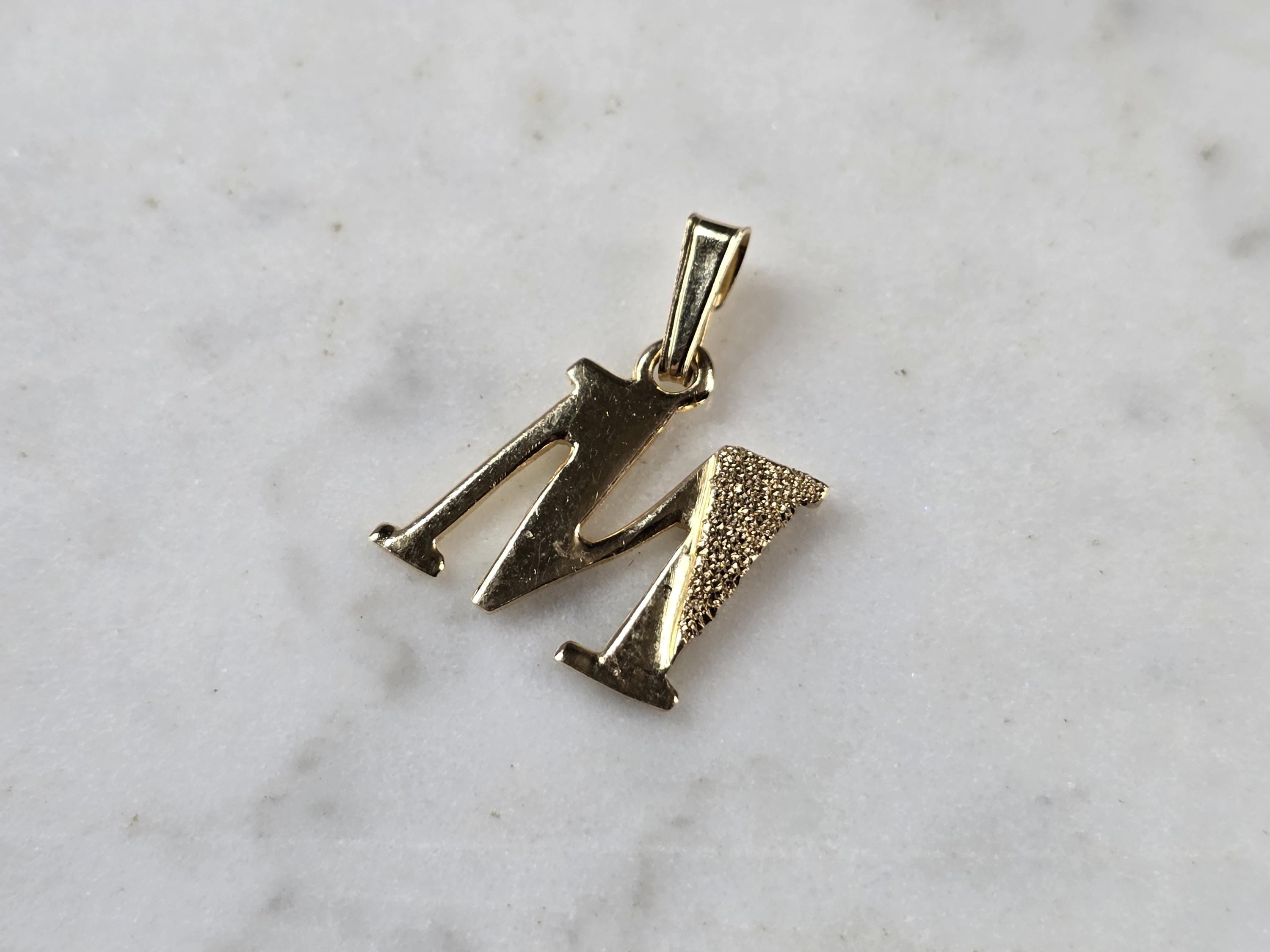 A WOMENS VINTAGE ESTATE 10K YELLOW GOLD "M" PENDANT. PENDANT MEASURES 3/4" LONG BY 1/2" WIDE. TOTAL WEIGHT OF THE PENDANT IS 1.0g. WOULD MAKE A LOVELY GIFT FOR THAT SOMEONE SPECIAL. ANY QUESTIONS PLEASE ASK. BE SURE TO CHECK OUT SOME OF MY OTHER GREAT ITEMS UP FOR SALE. THANK YOU
