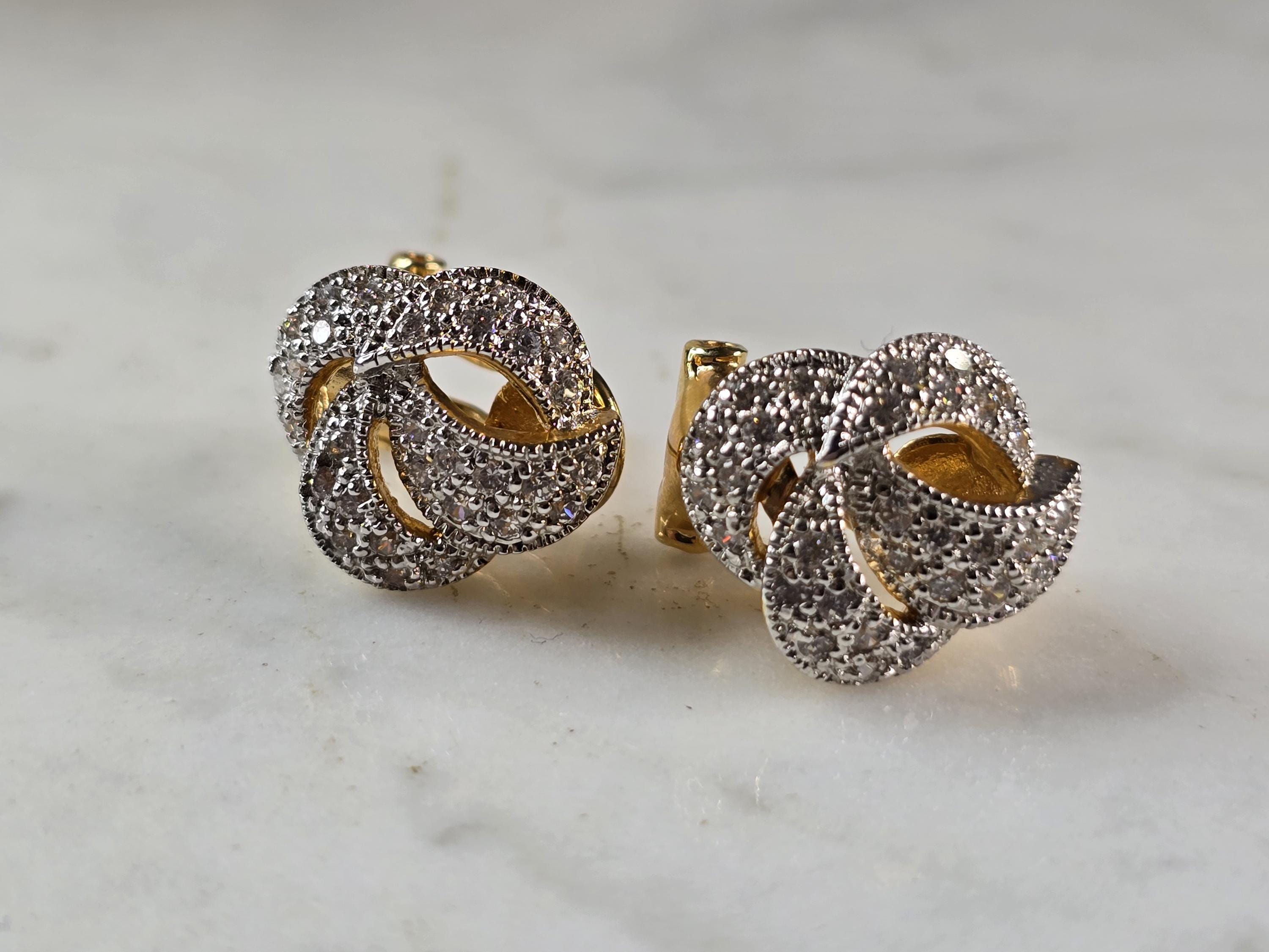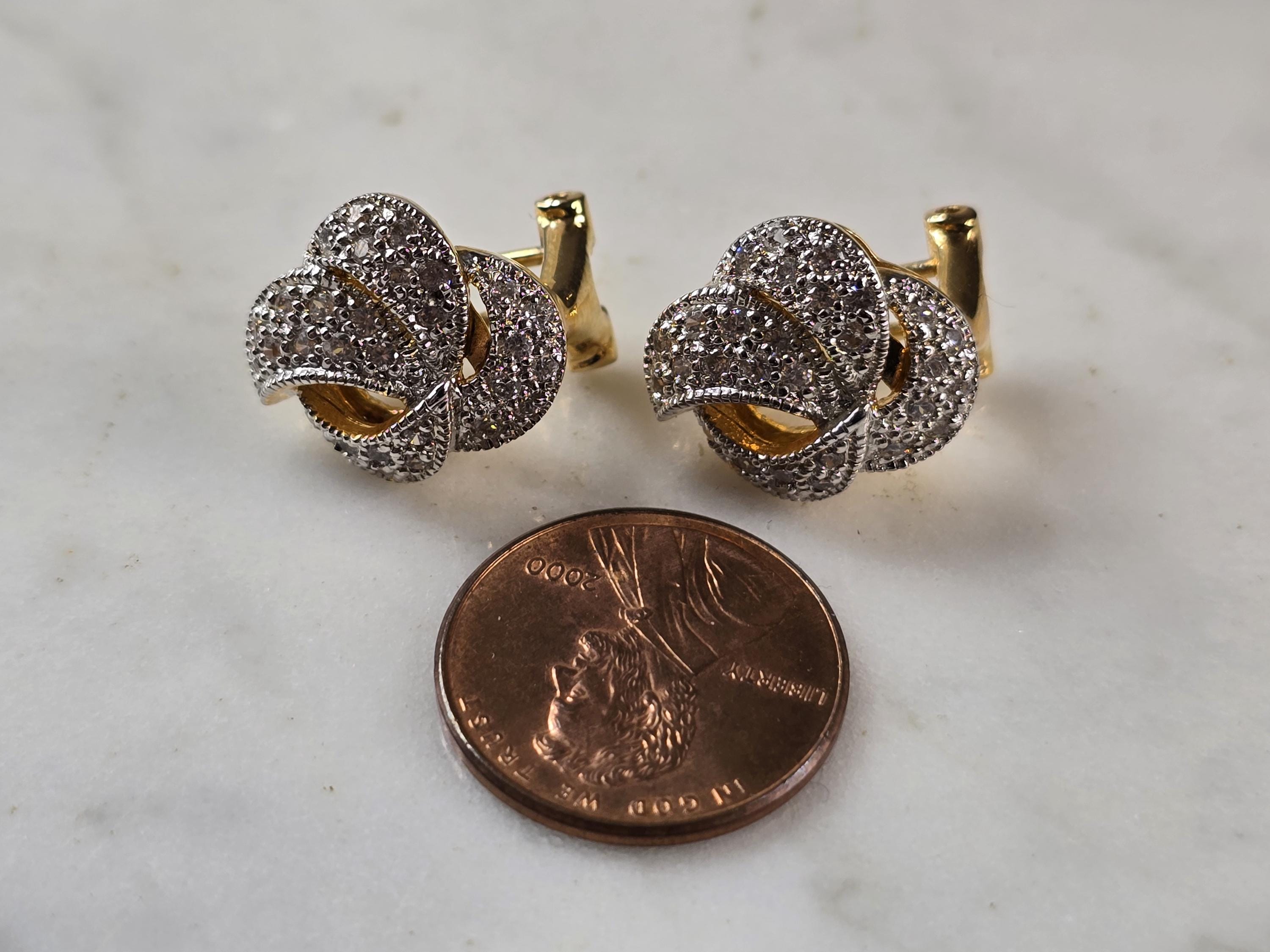 A PAIR OF WOMENS STERLING SILVER GOLD TONE CZ EARRINGS. EARRINGS WEIGH 7.1g AND MEASURES 5/8" BY 5/8". ANY QUESTIONS, PLEASE DO NOT HESITATE TO ASK. BE SURE TO CHECK OUT SOME OF MY OTHER GREAT ITEMS UP FOR SALE. THANK YOU
