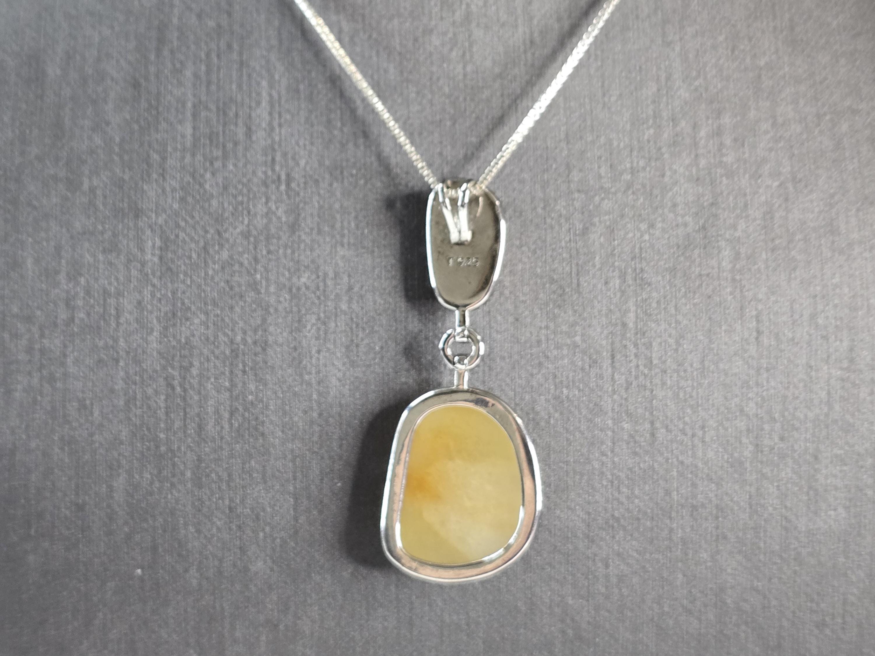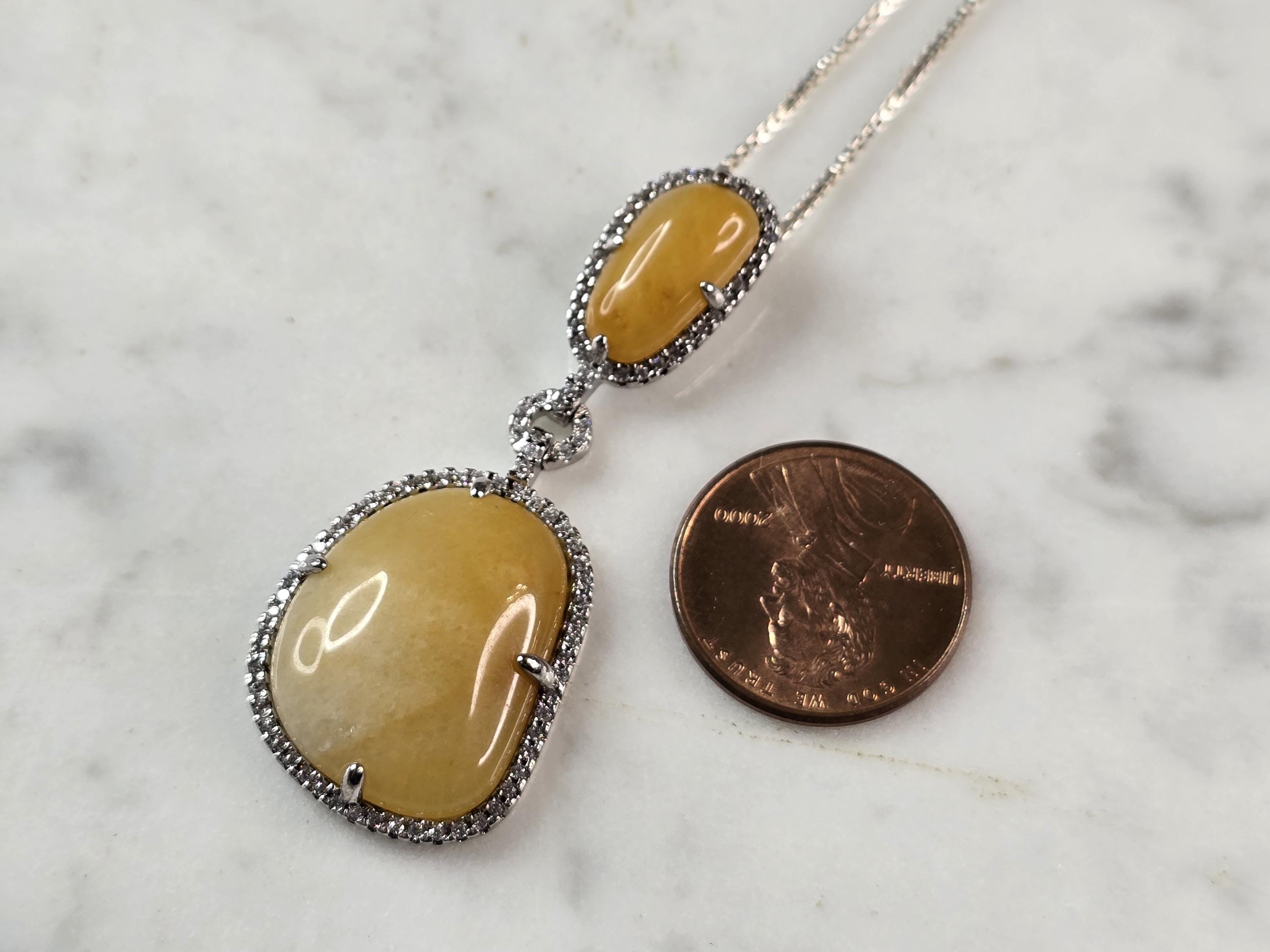 A WOMEN STERLING SILVER NECKLACE WITH WHAT APPEARS TO BE A CALCITE & CZ PENDANT. THE PENDANT MEASURES 2" BY 3/4". THE NECKLACE MEASURES 18" LONG. TOGETHER THEY WEIGH 10.8g. NOT SURE IF THE STONE IS NATURAL OR MAN MADE. THIS WOULD MAKE A LOVELY GIFT FOR THAT SOMEONE SPECIAL. ANY QUESTIONS PLEASE ASK. BE SURE TO CHECK OUT SOME OF MY OTHER GREAT ITEMS UP FOR SALE. THANK YOU